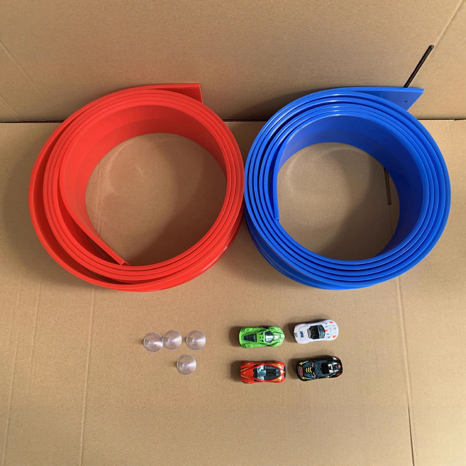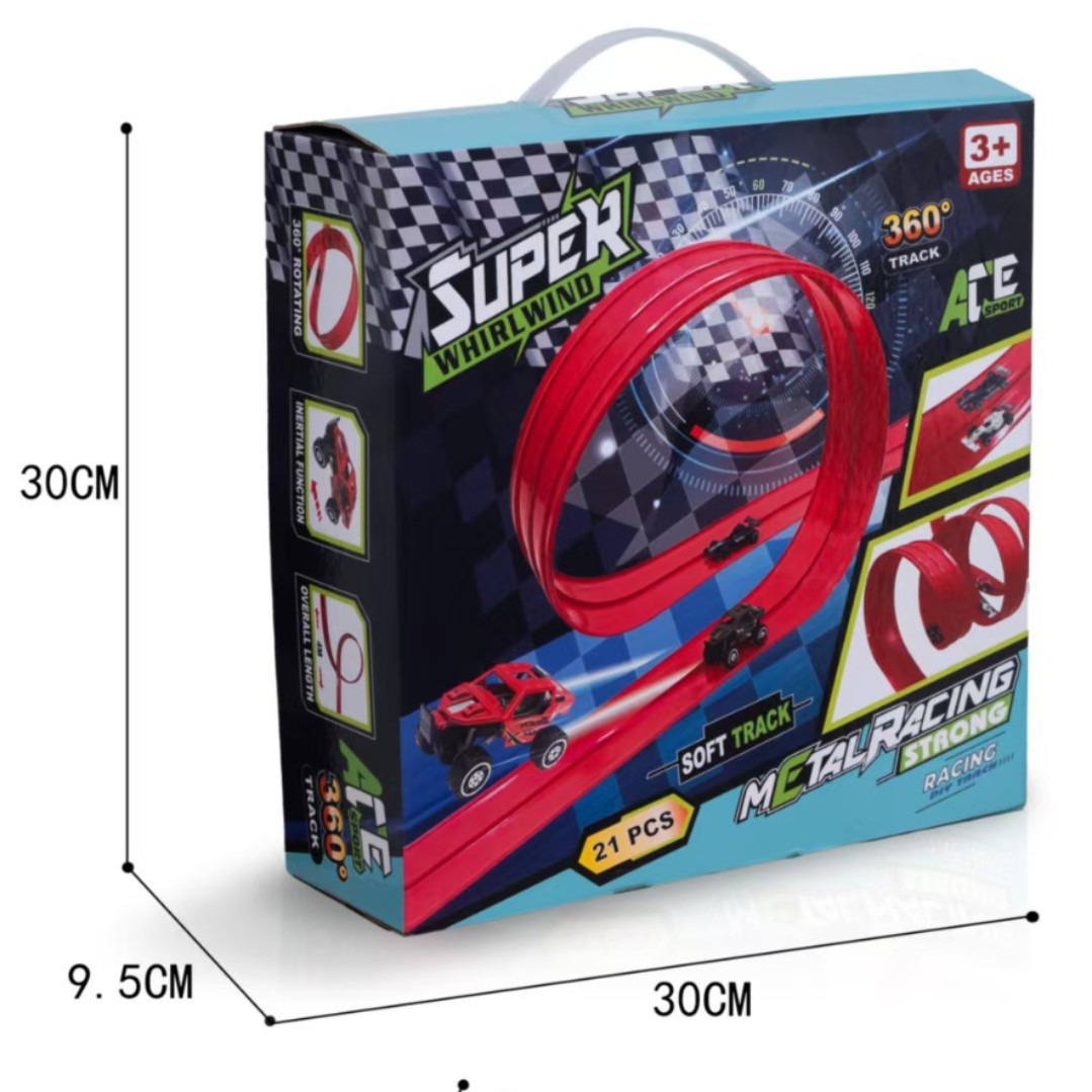 Temu亚马逊跨境儿童轨道益智彩盒拼装玩具DIY赛车红蓝软轨道批发