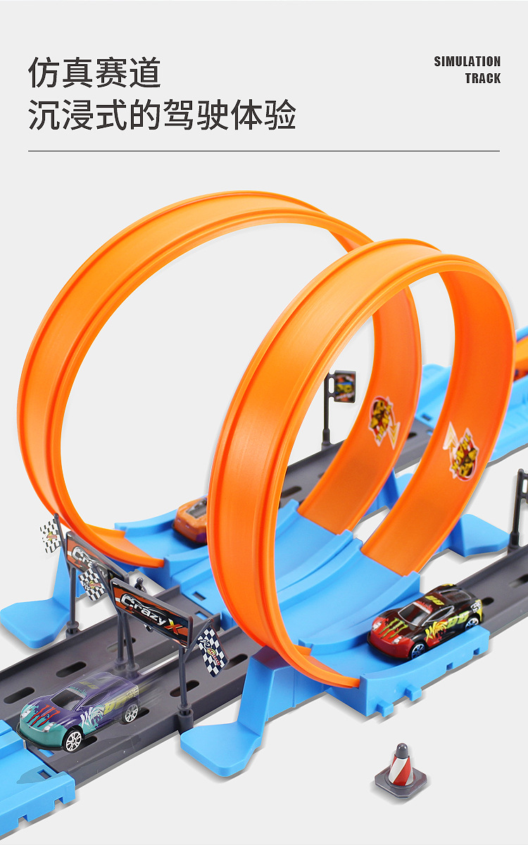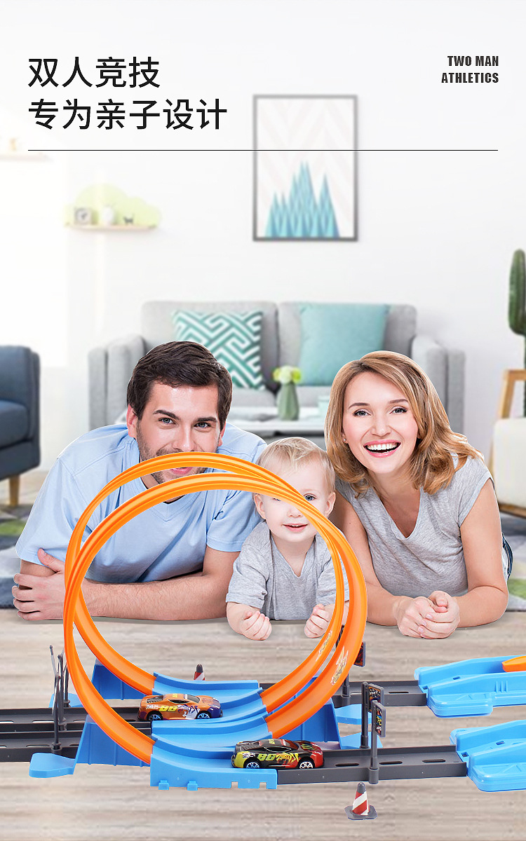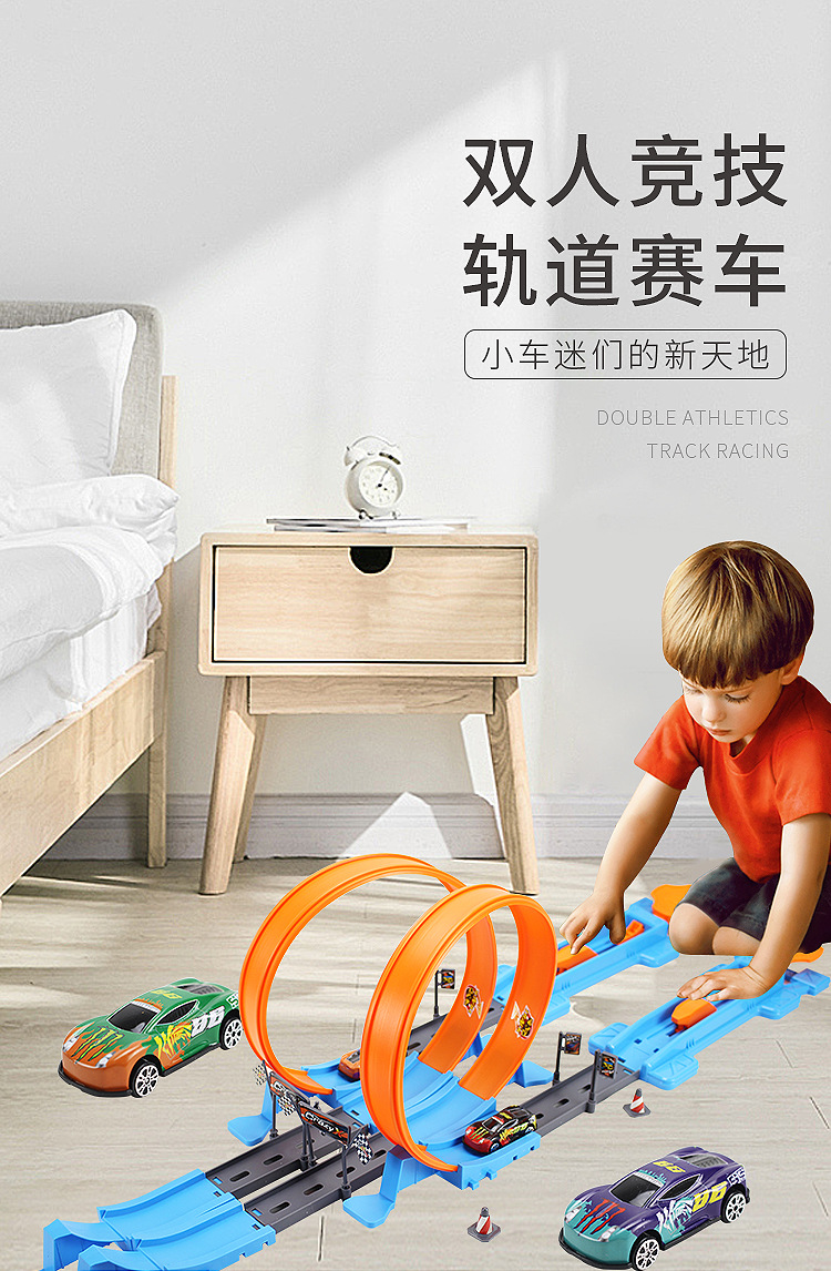 儿童弹射轨道车双人对战赛车回旋赛道惯性合金车小汽车跑车益智
