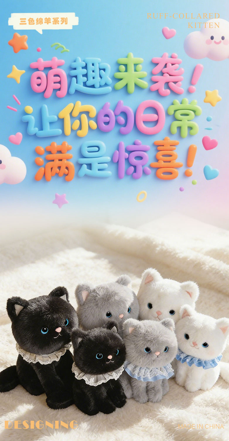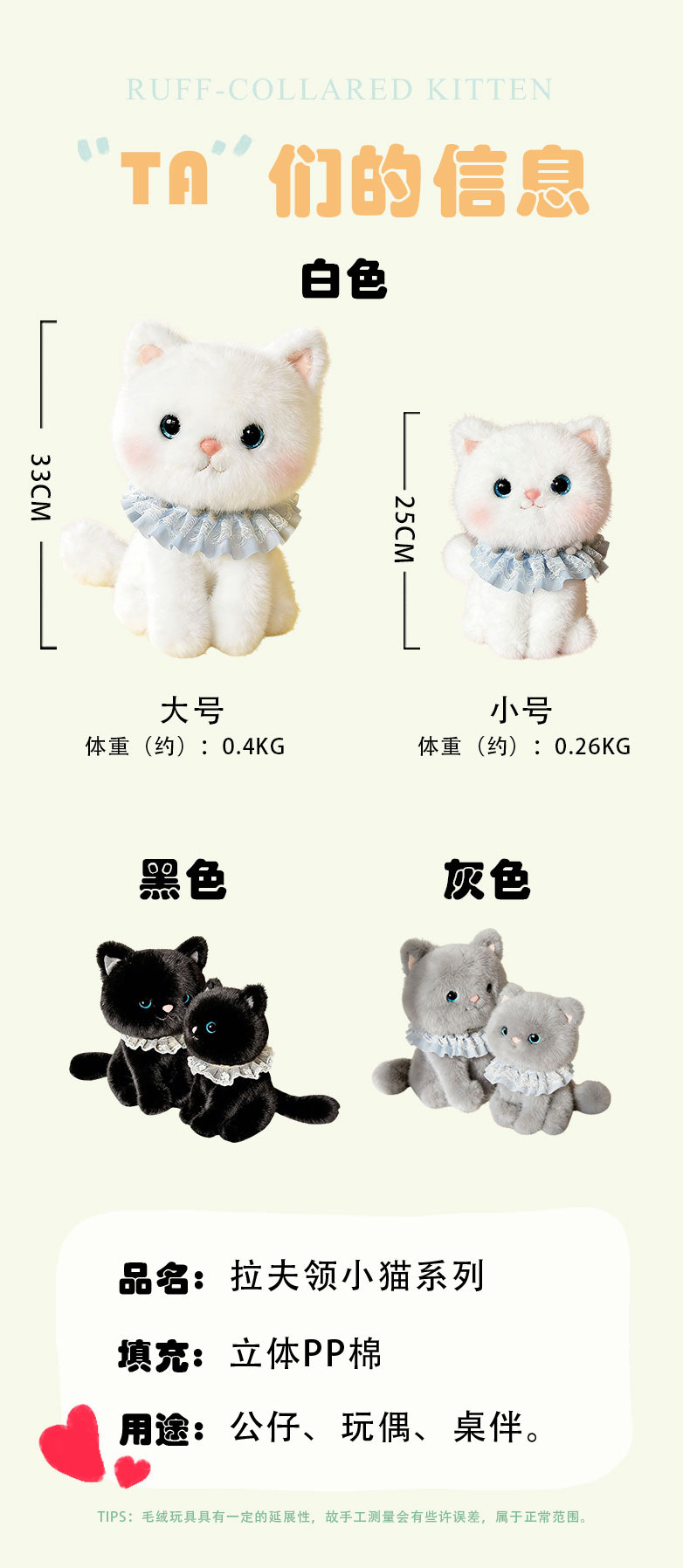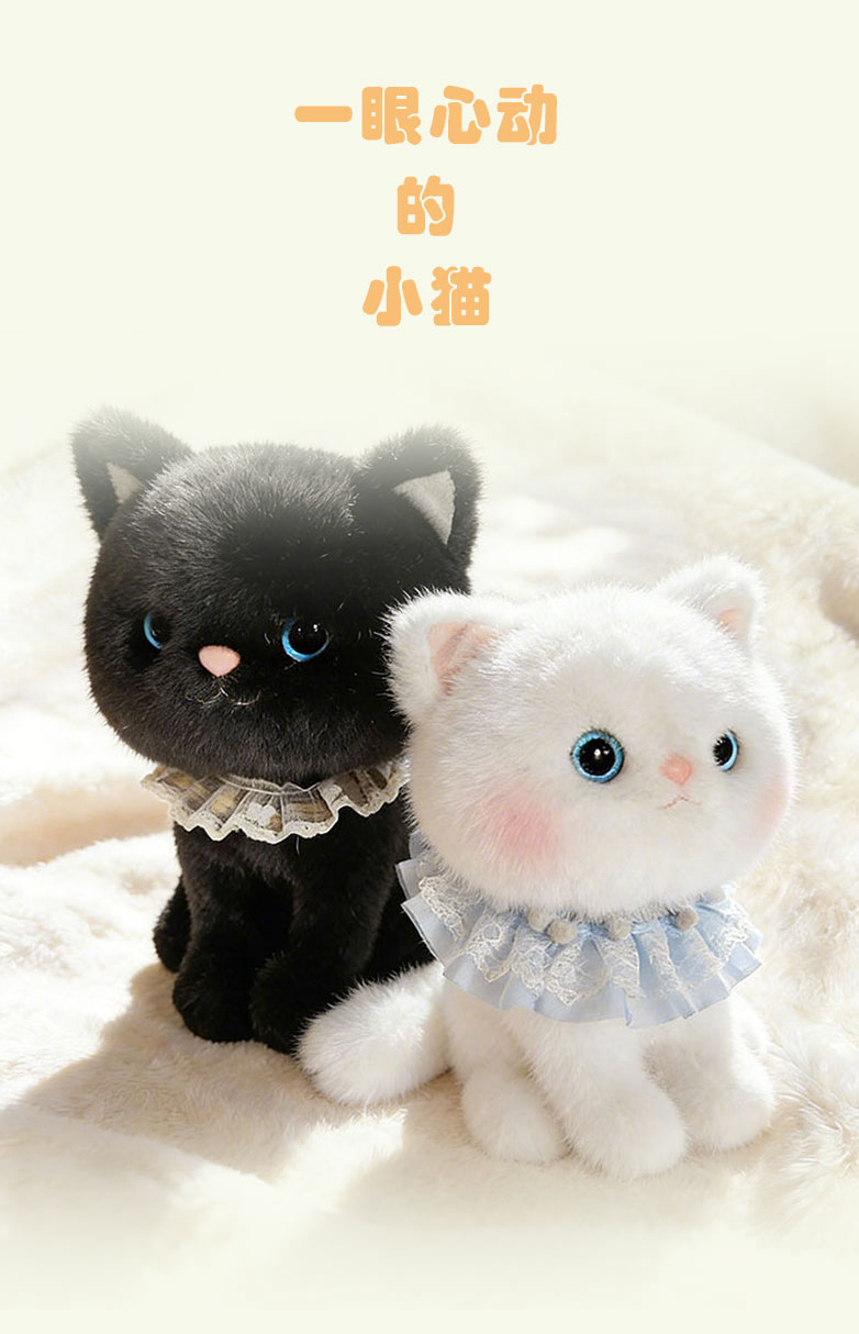 跨境贝拉猫花边款可爱猫咪毛绒玩具小猫玩偶安抚娃娃抱枕生日礼物