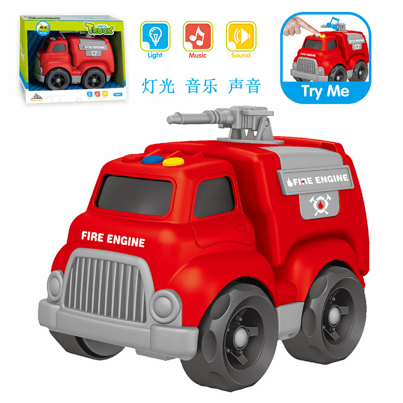Q版儿童滑行工程车吊机救护车消防警车拖车男孩玩具海底礼物车