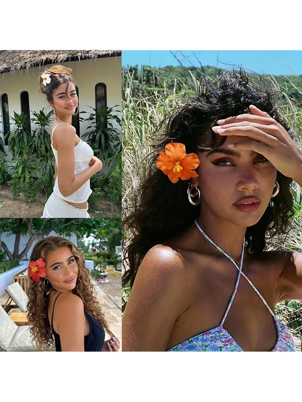 欧美跨境热卖扶桑花发夹夏威夷沙滩度假风泡沫仿真花朵发夹批发