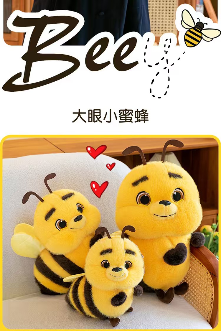 新款大眼小蜜蜂玩偶可爱陪伴公仔毛绒玩具睡觉抱枕儿童礼物批发