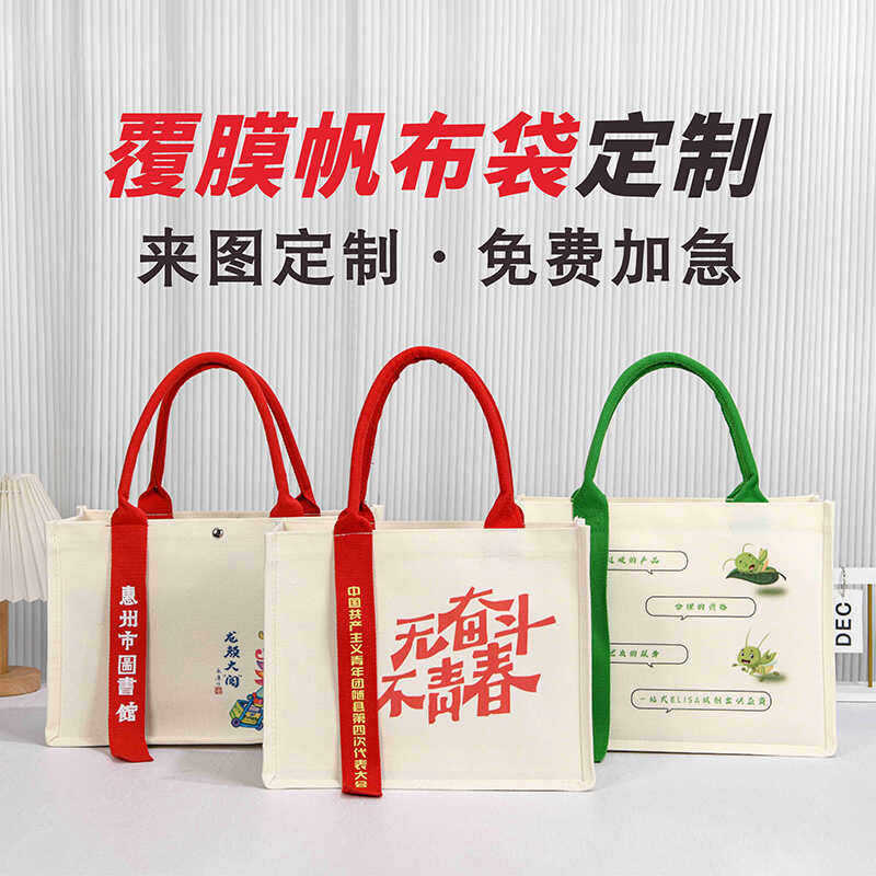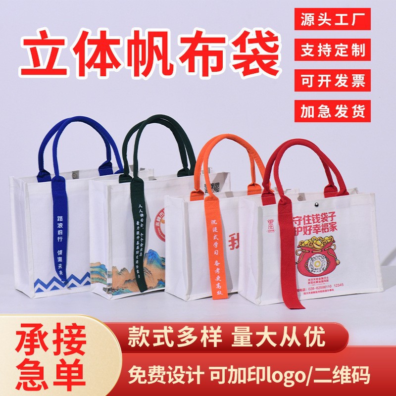 高端收纳加厚立体便携帆布袋定制手提托特加急订做麻布袋logo