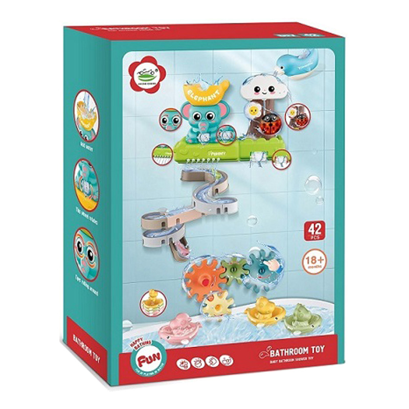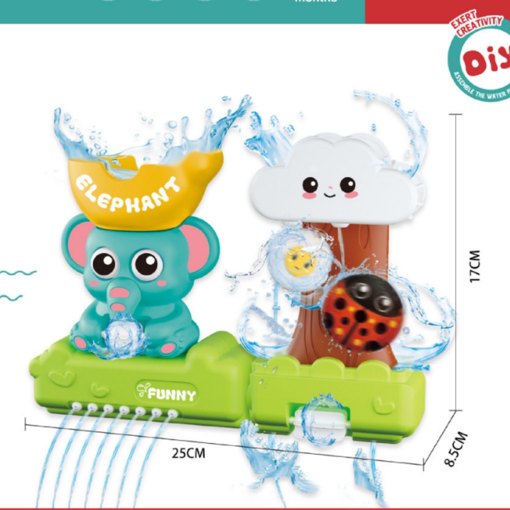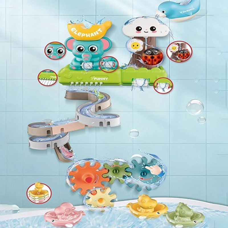 跨境夏天天浴室玩具益智大象丛林戏水轨道齿轮戏水套装牛花洒玩具