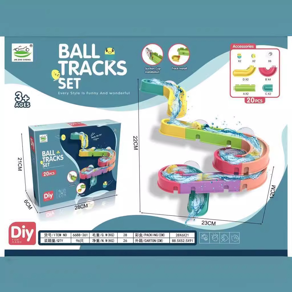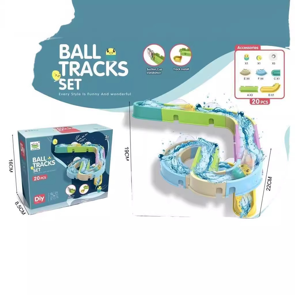 儿童洗澡玩具亚马逊爆款DIY拼装浴室戏水滚珠轨道转转乐滚珠游戏