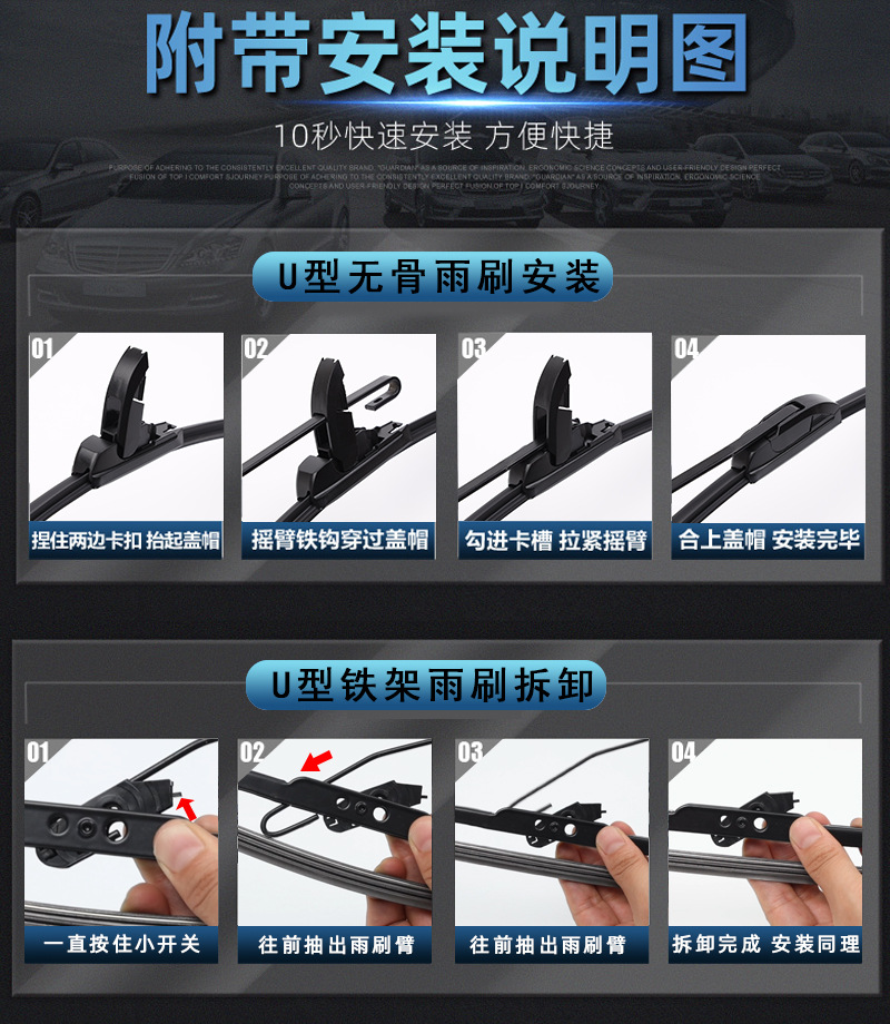 跨境代发雨刮器适用于本田CRV雨刷无骨通用AU多功能双层6条刮水片