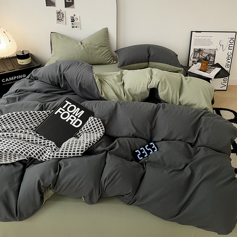 纯色四件套床单被套被罩学生宿舍单人床上用品三件套批发外贸跨境