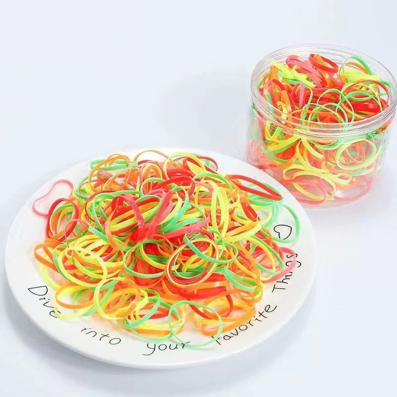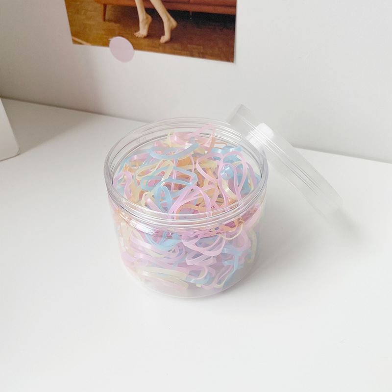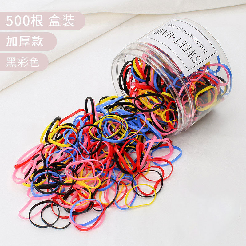 新年款盒装黑色大圆瓶彩色高弹力发圈强拉不断儿童一次性小皮筋