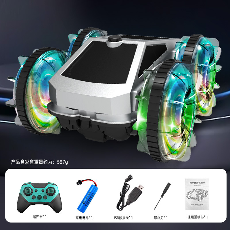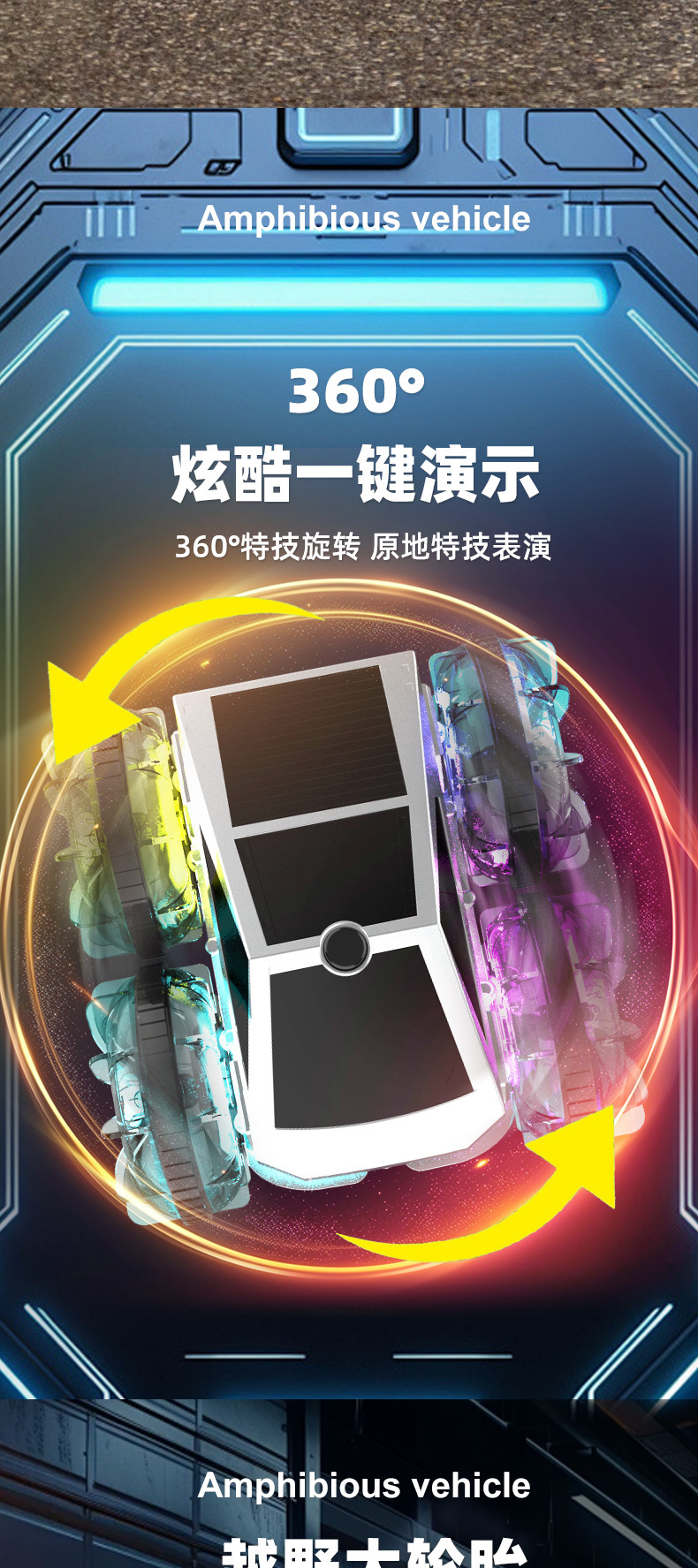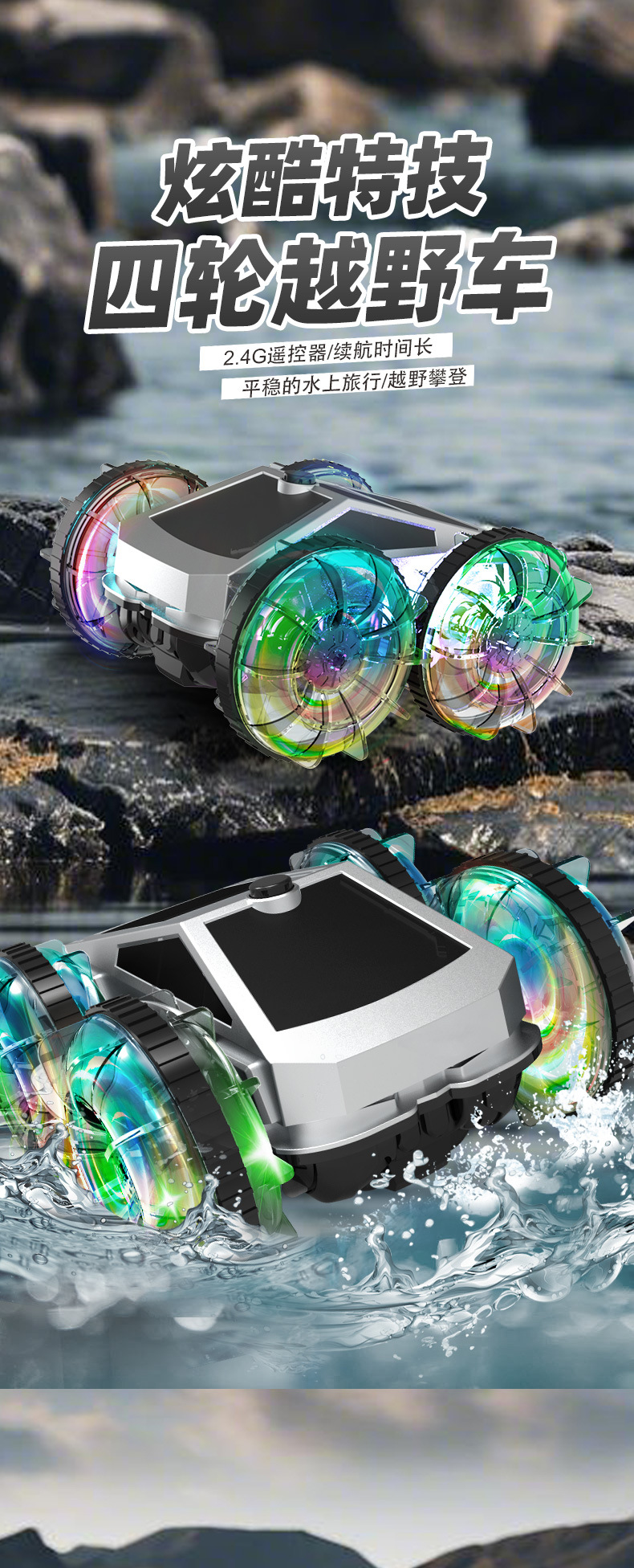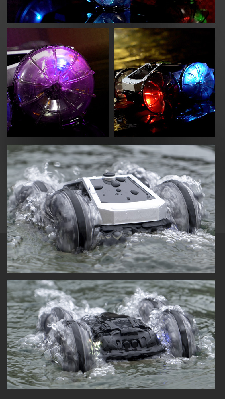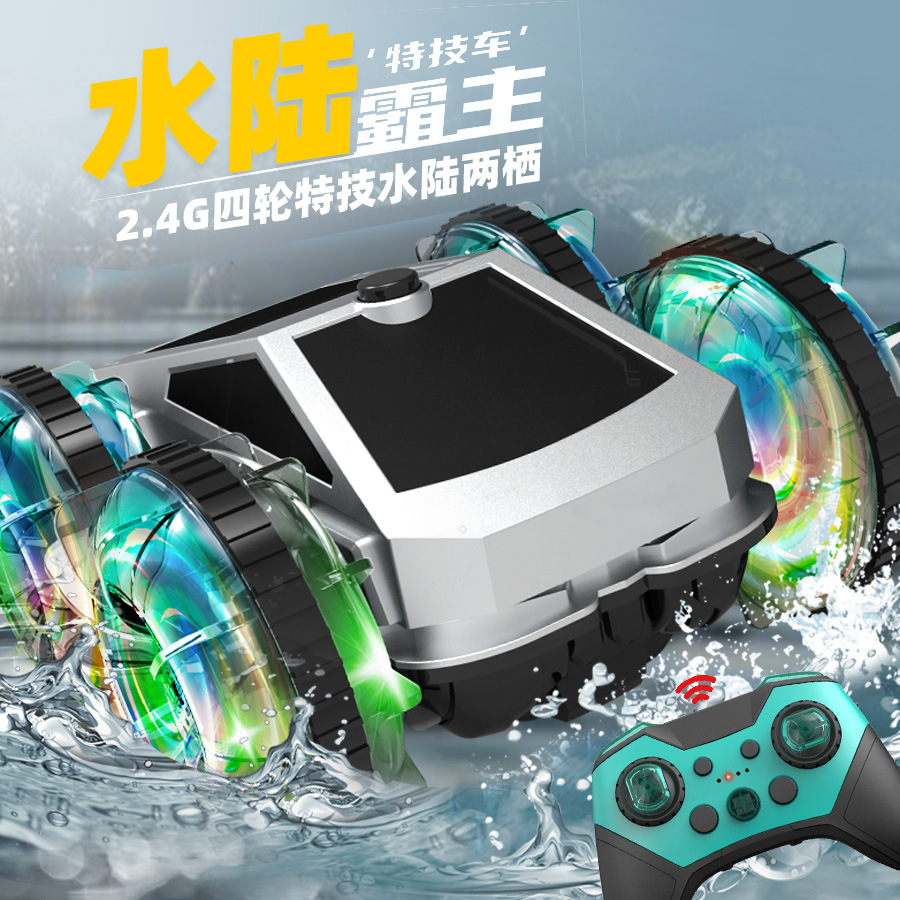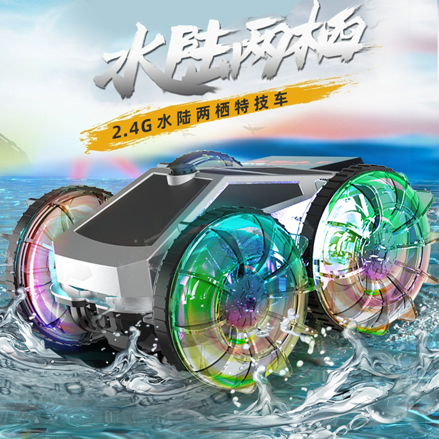 跨境亚马逊2.4G水陆两栖特技车电动旋转炫彩灯光轮遥控车儿童玩具