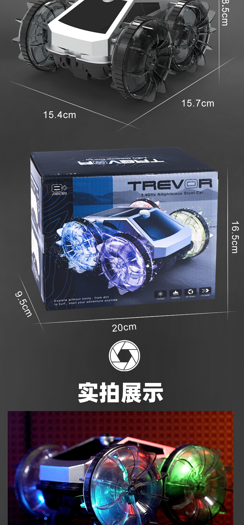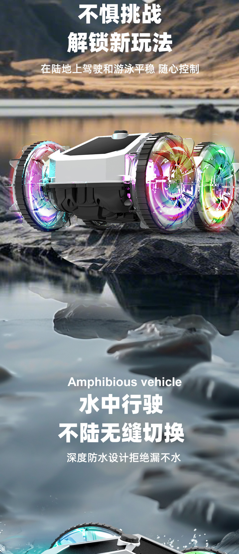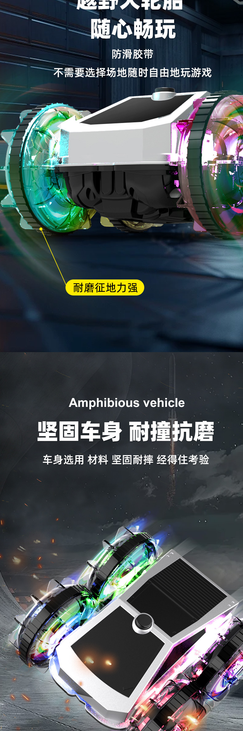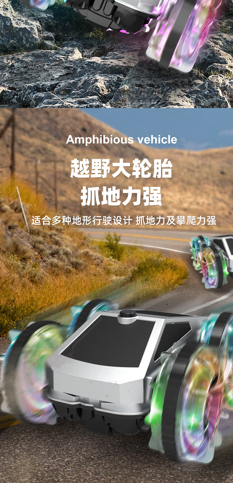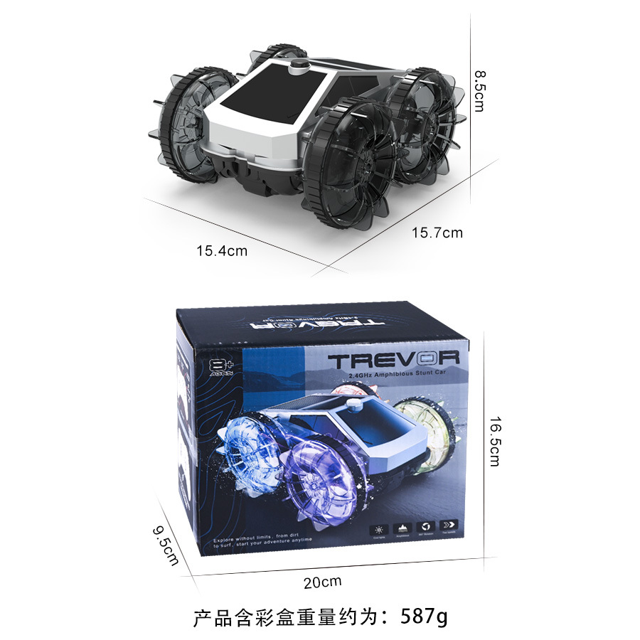 跨境亚马逊2.4G水陆两栖特技车电动旋转炫彩灯光轮遥控车儿童玩具