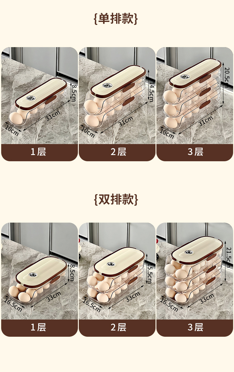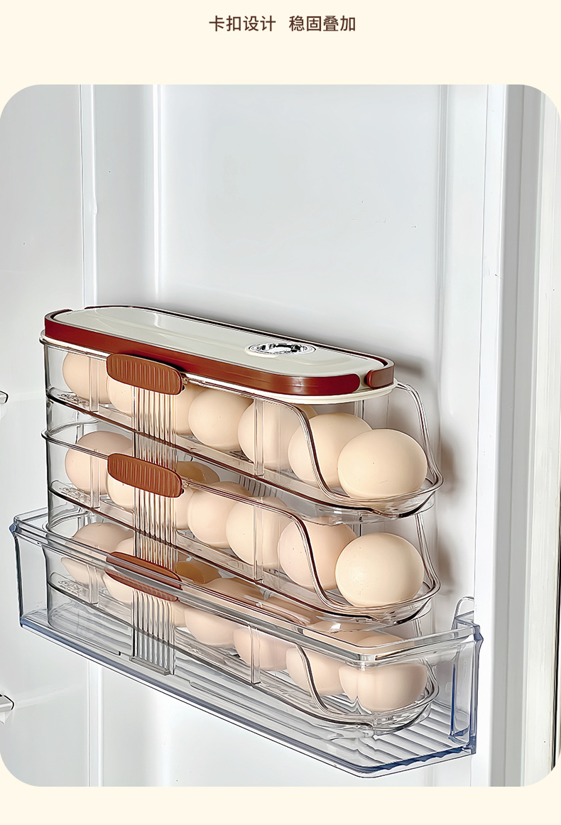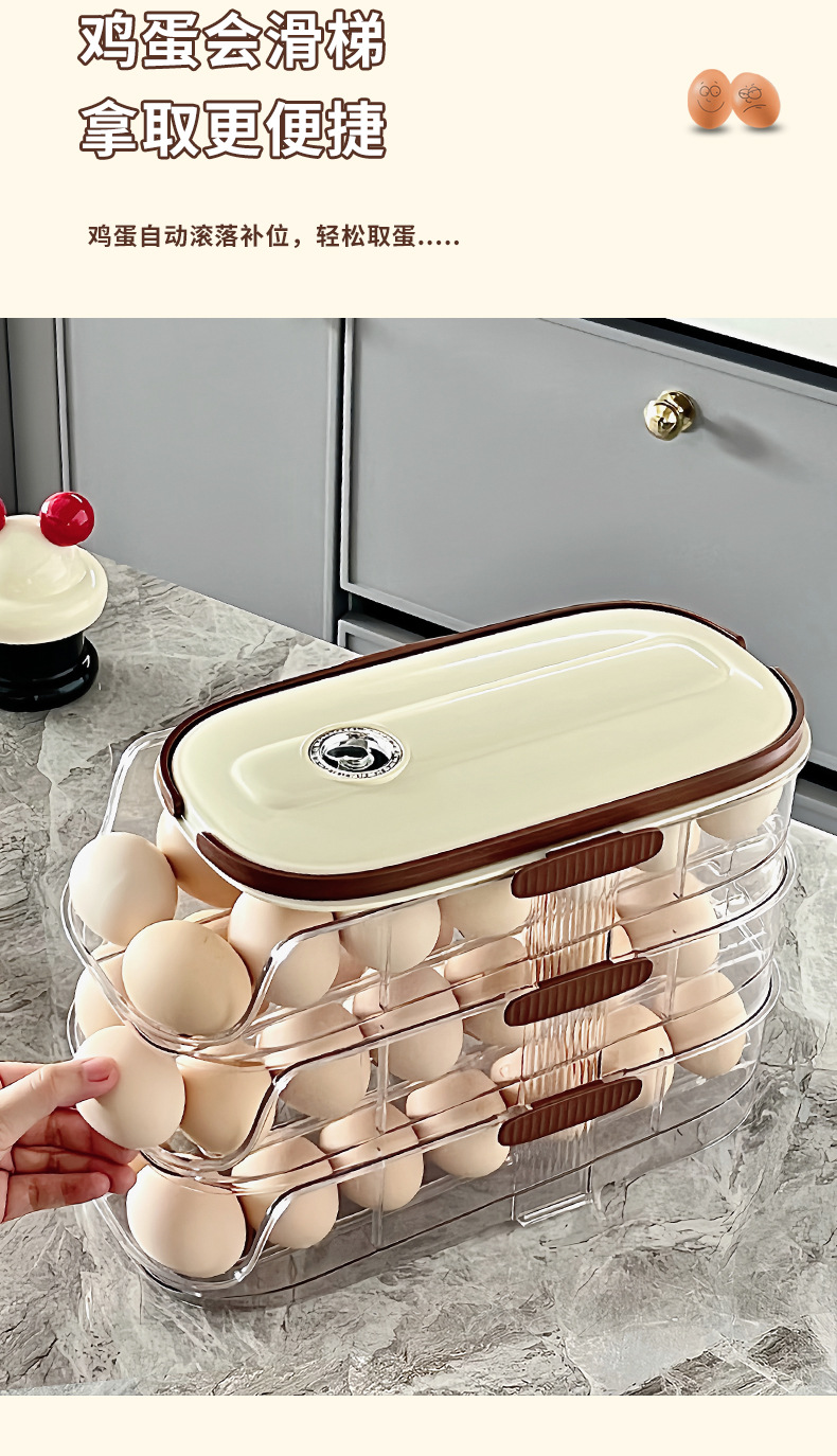滚动鸡蛋收纳盒冰箱侧门防摔鸡蛋盒蛋托分配器家用厨房收纳鸡蛋架