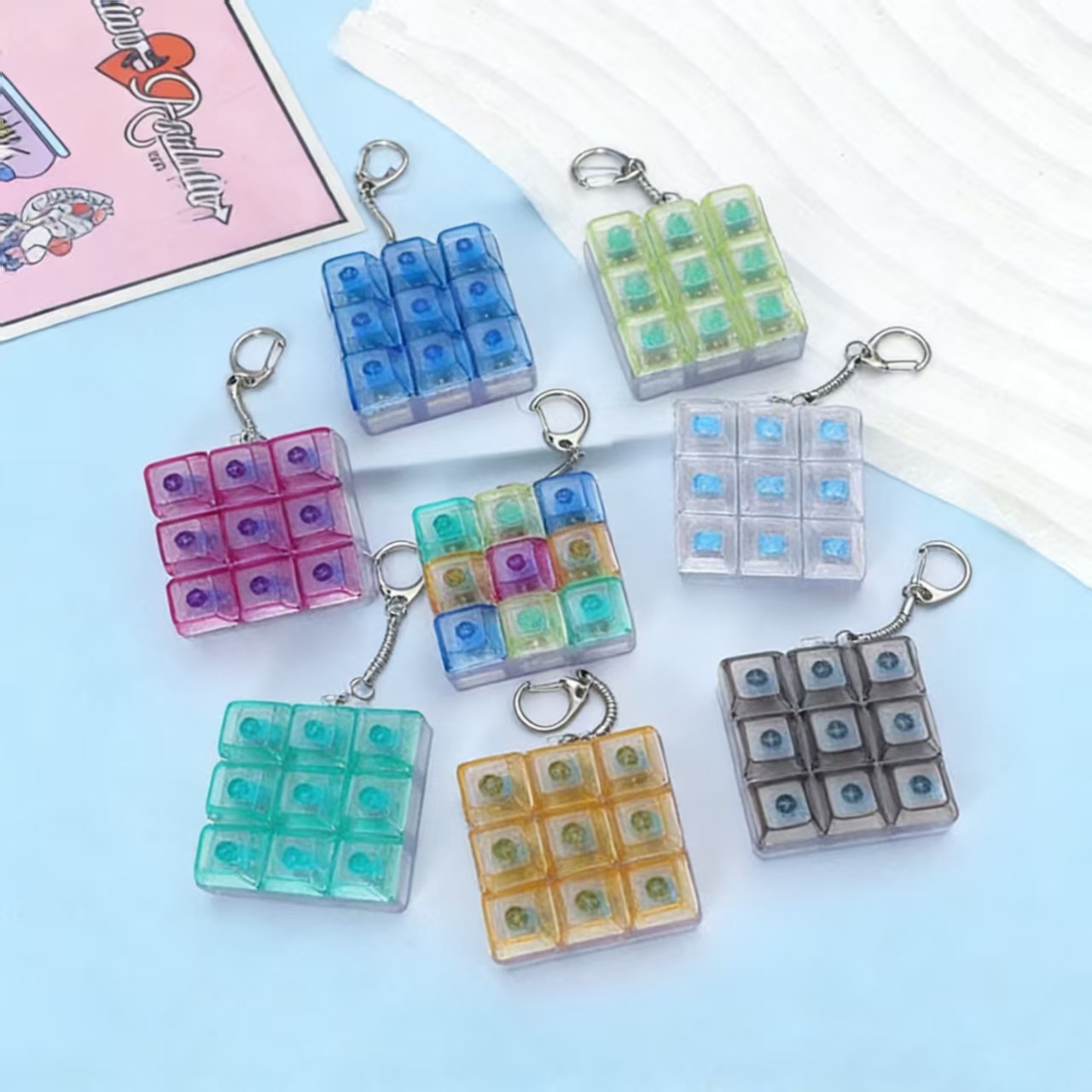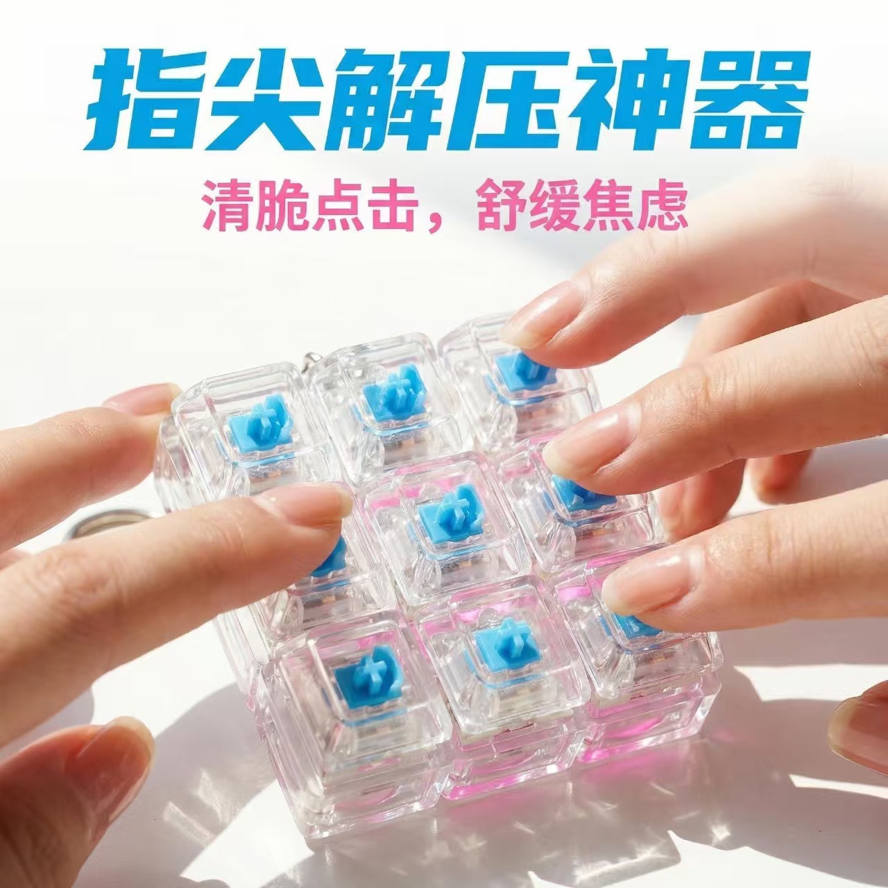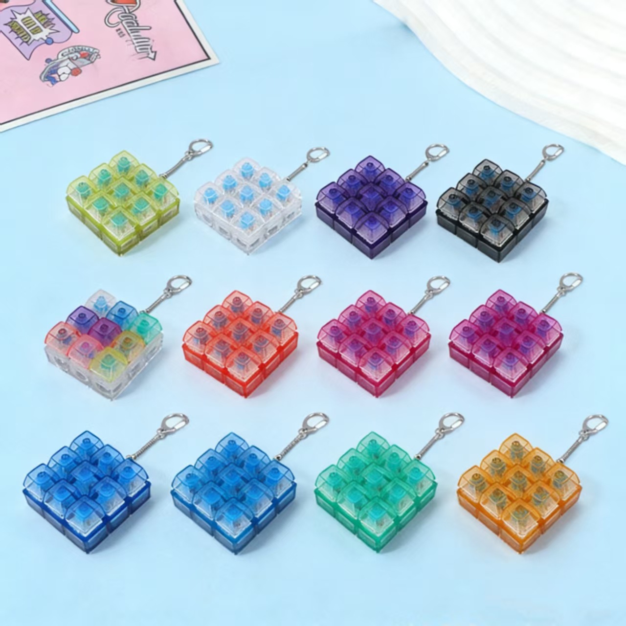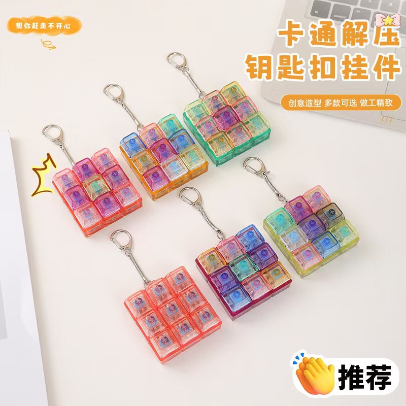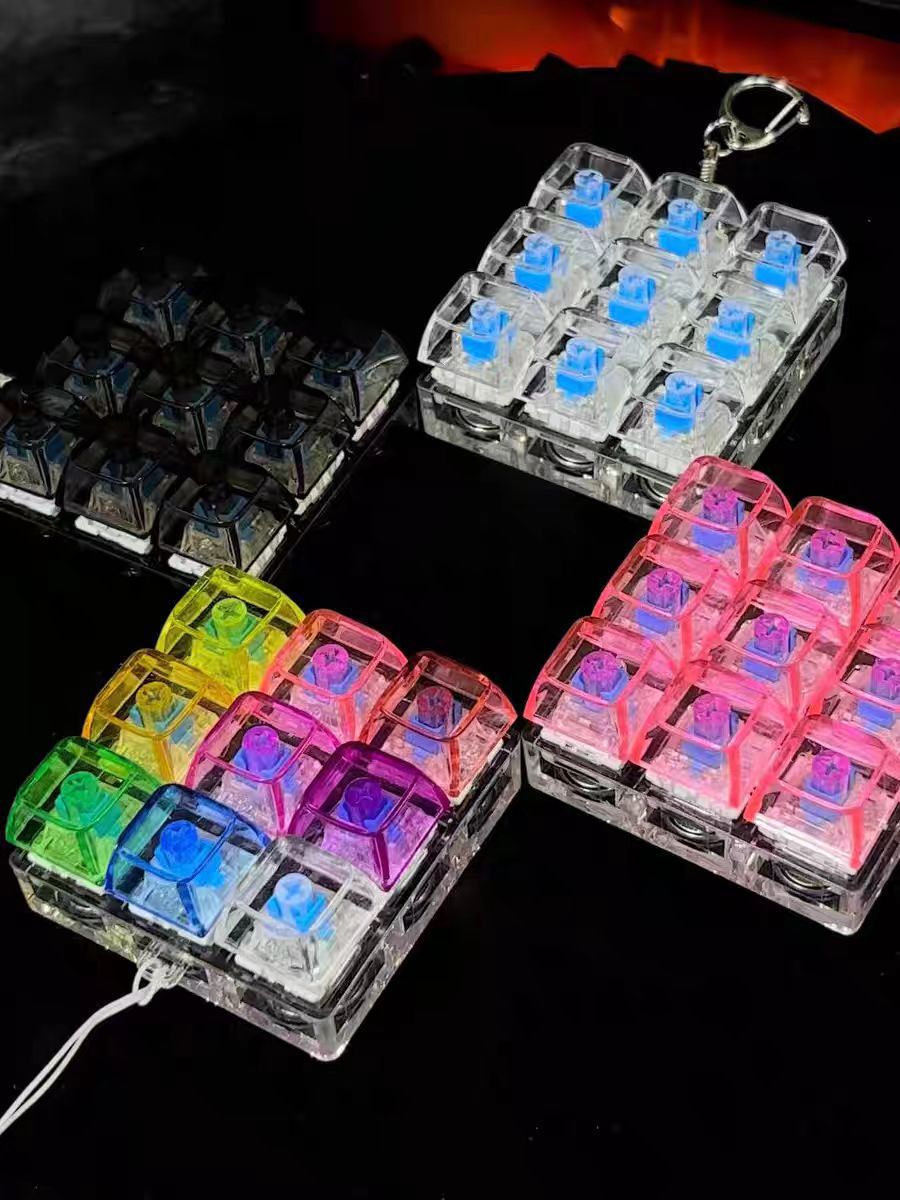 9键解压发光七彩高透玩具俄罗斯方块按键3*3机械键盘跨境爆款挂件
