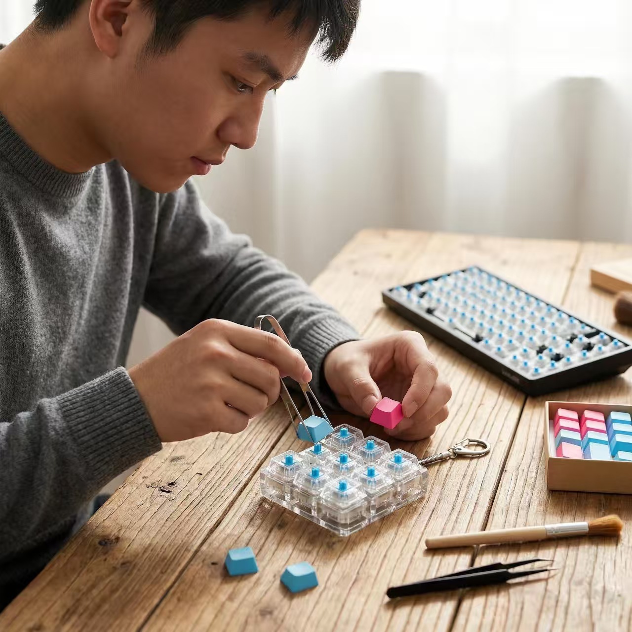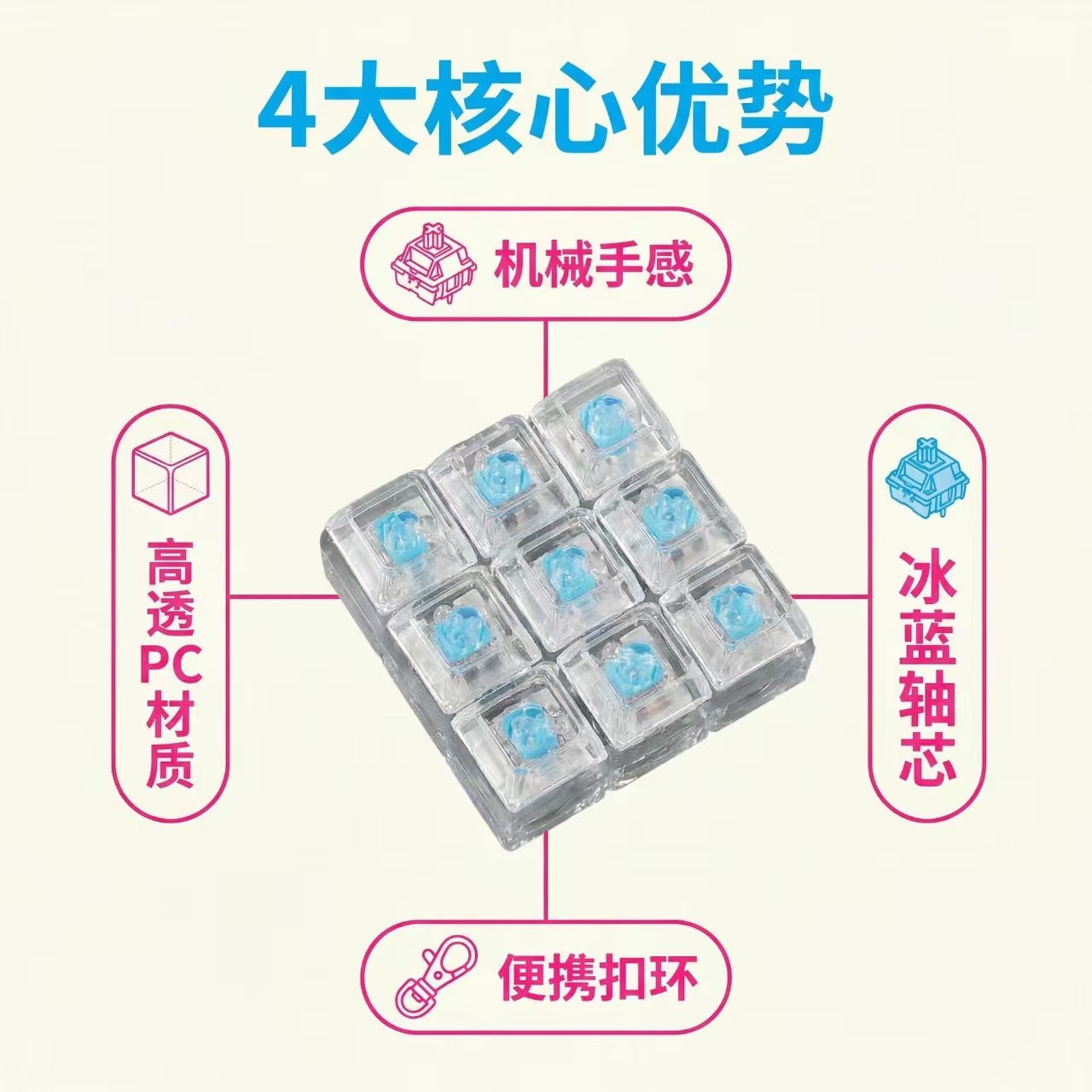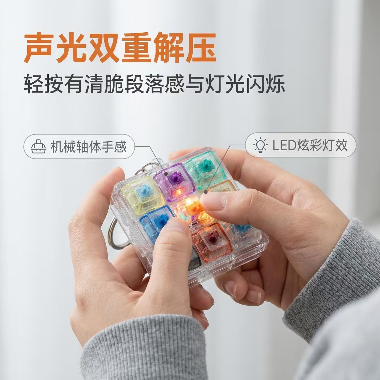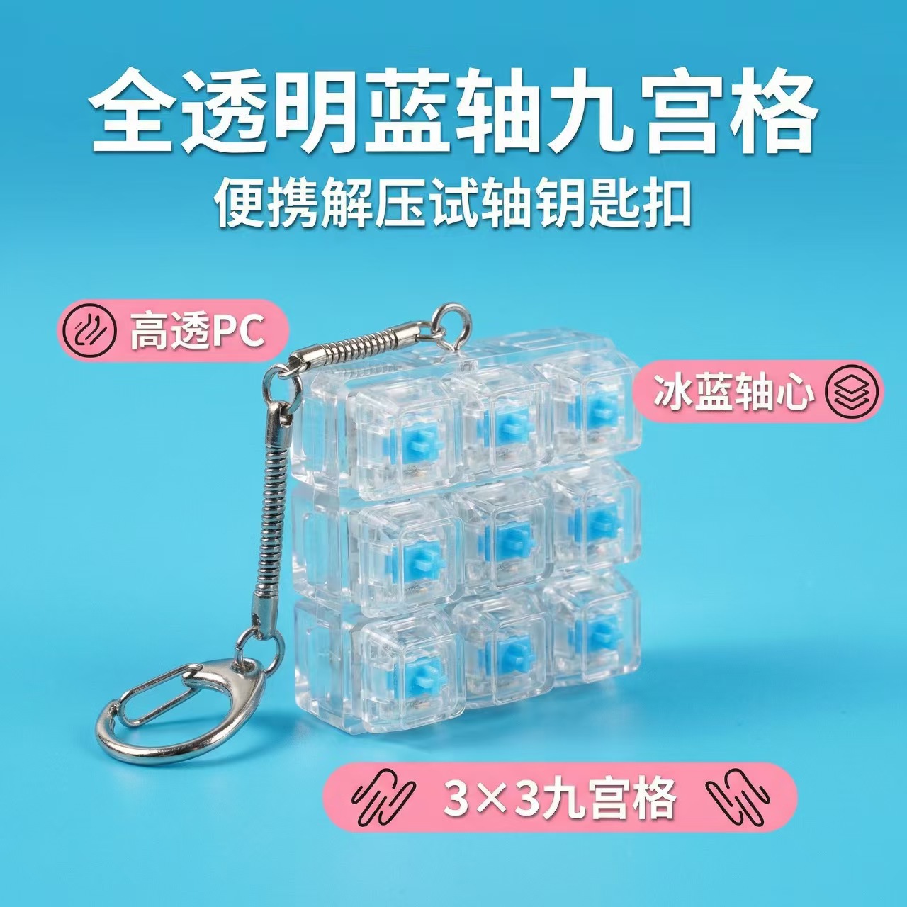 9键解压发光七彩高透玩具俄罗斯方块按键3*3机械键盘跨境爆款挂件