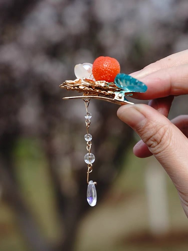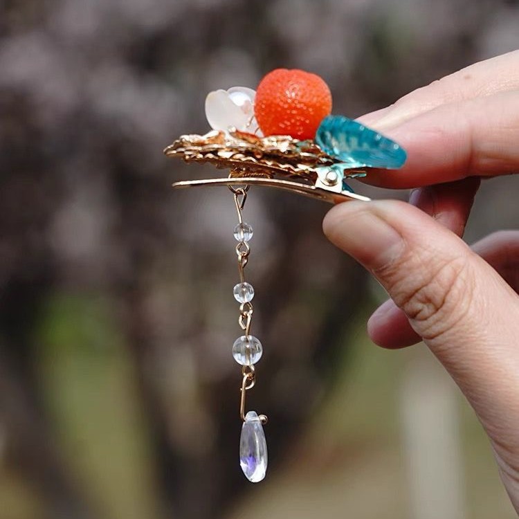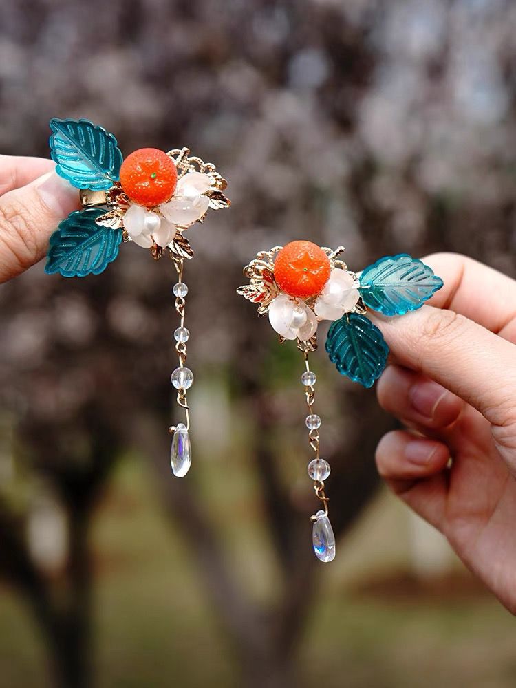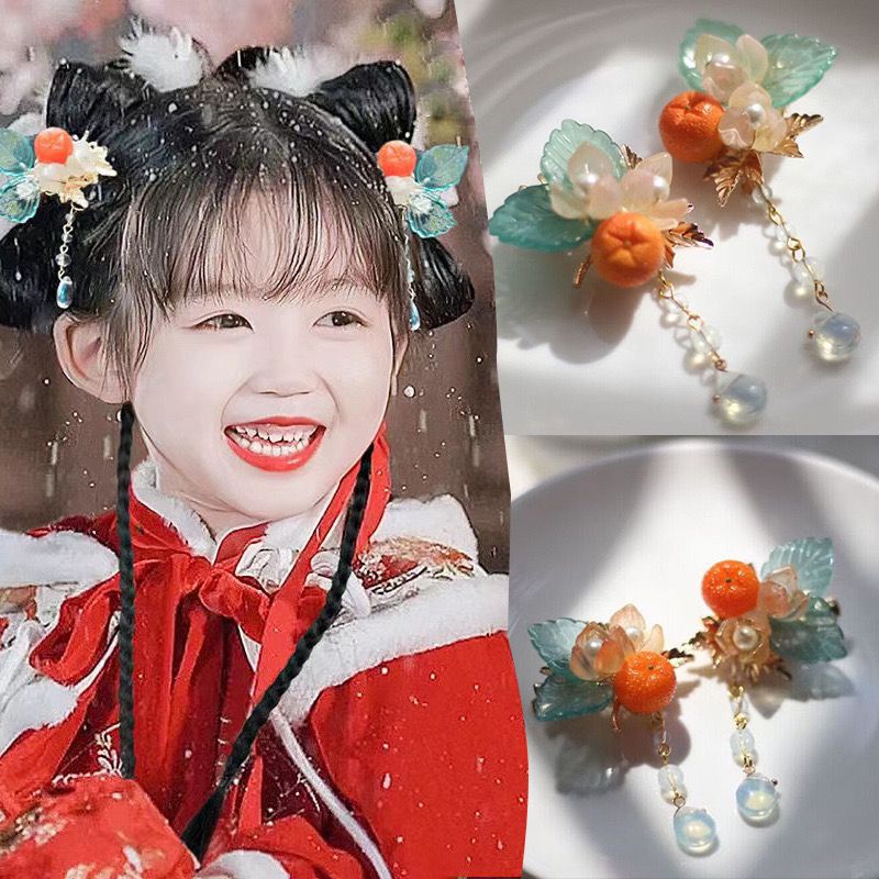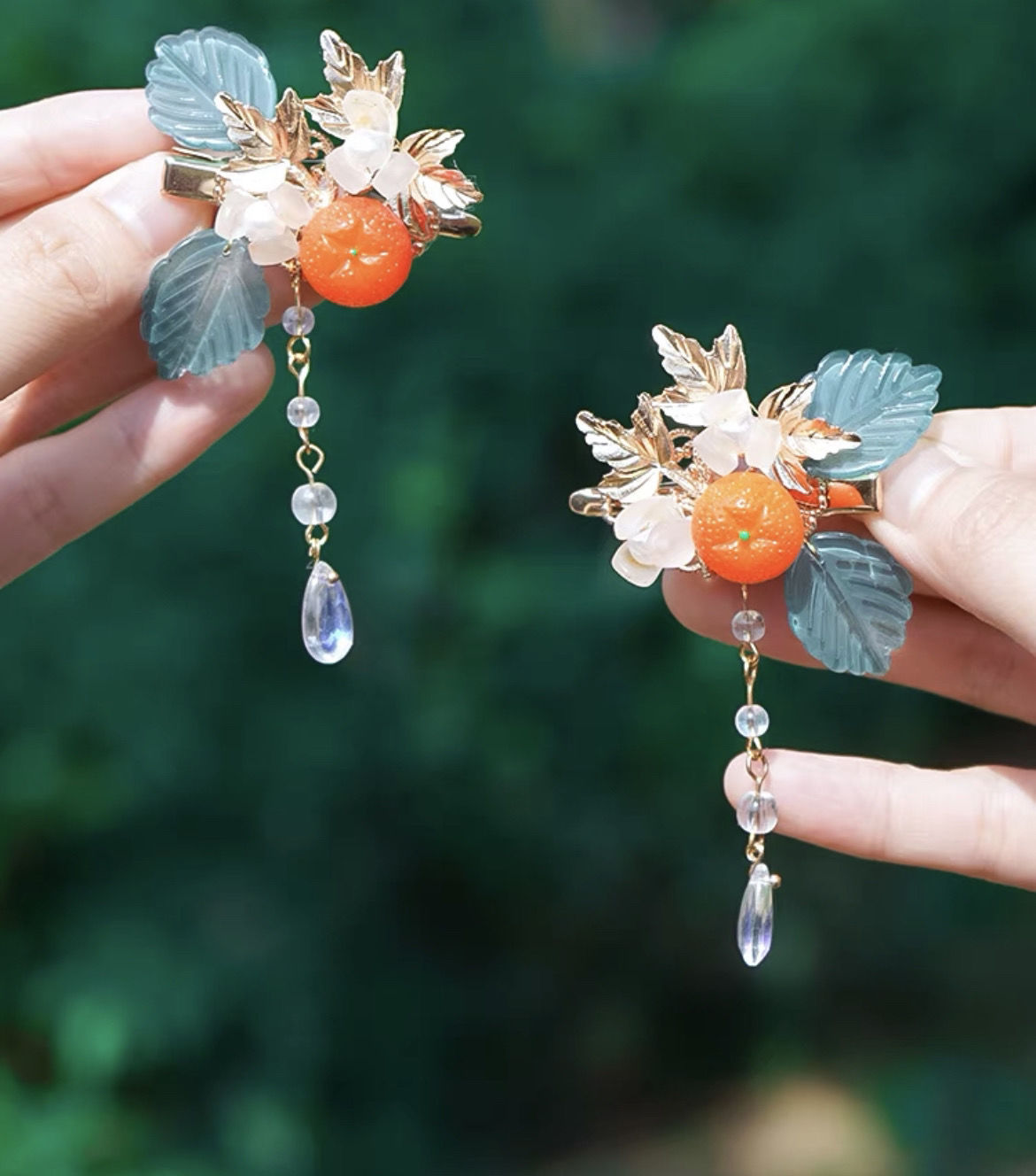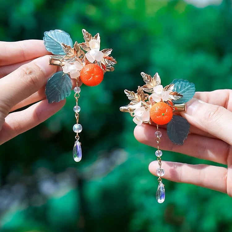 汉服头饰发夹小清新对夹古风流苏夹子简约日常可爱橘子橙色头饰