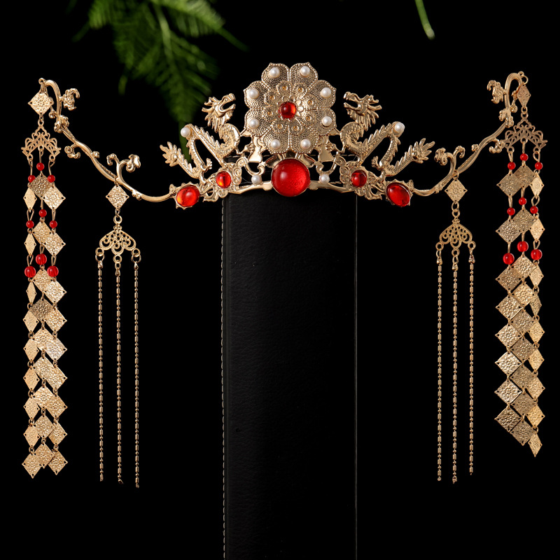 儿童汉服发冠头饰古代唐风明制流苏古风仙气发饰女童演出古装配饰