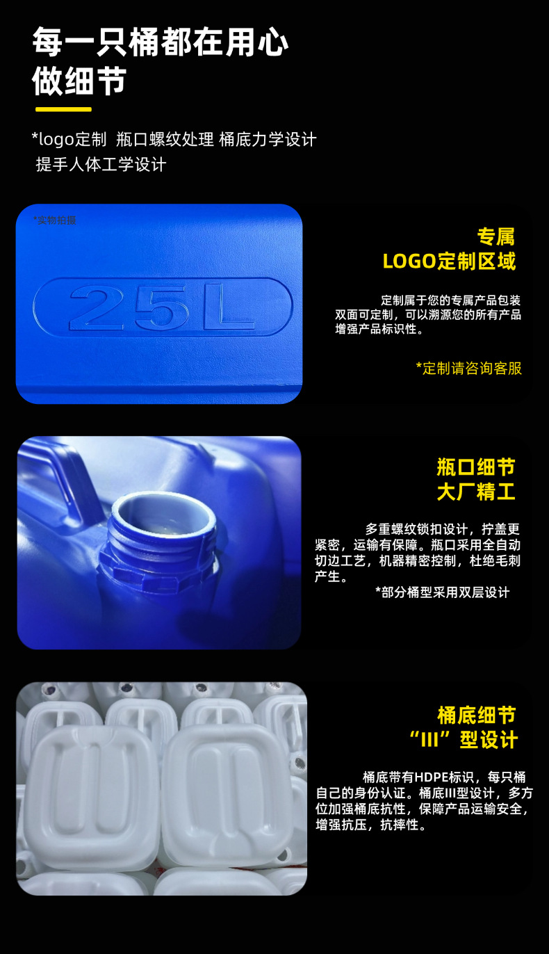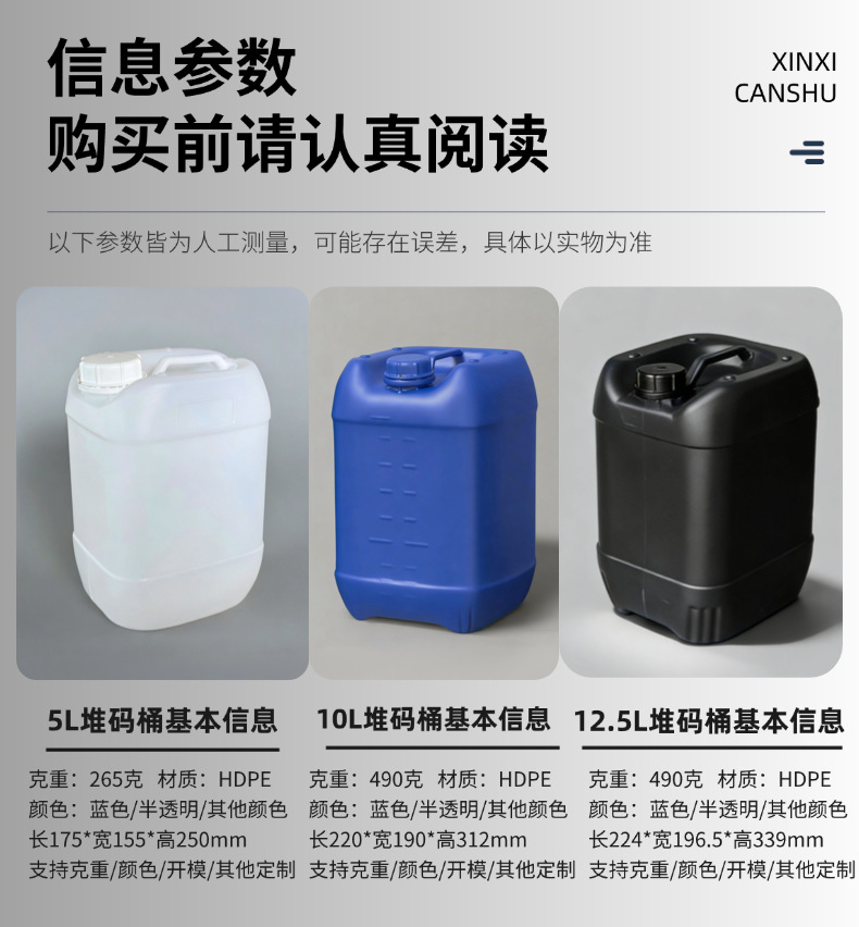 加厚25l塑料桶10公斤化工桶食品级方形20升堆码桶30kg密封废液桶