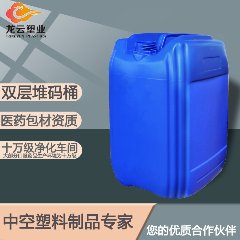 批发25升蓝色白色食品级塑料桶25kg耐腐蚀耐摔溶剂包装化工堆码桶