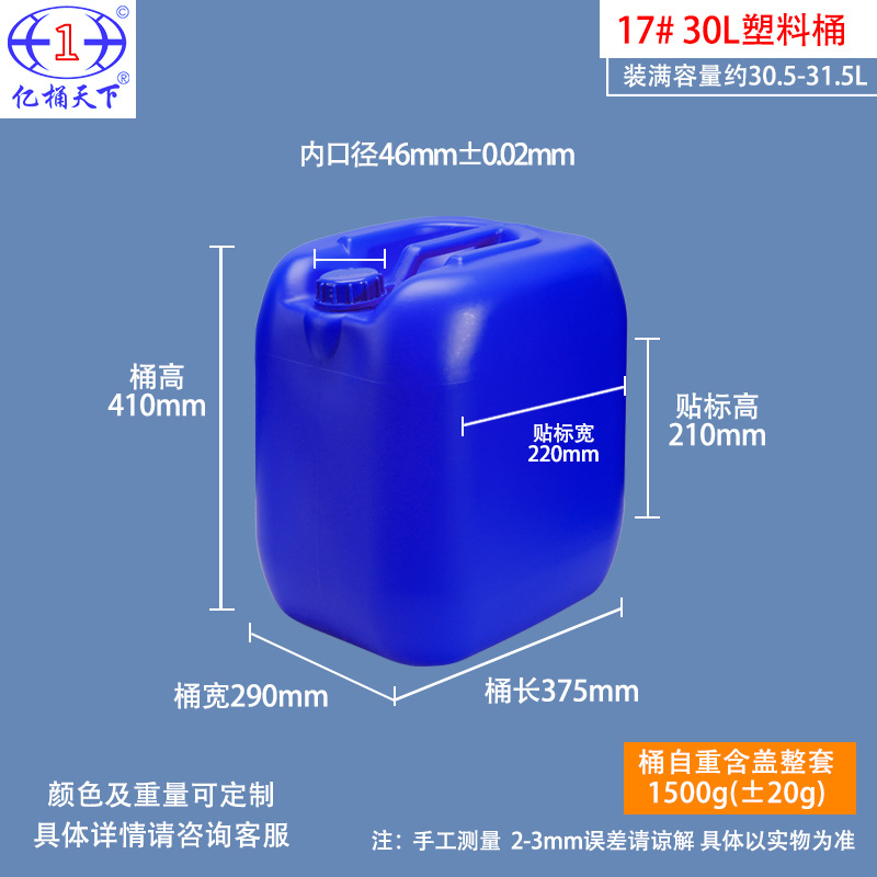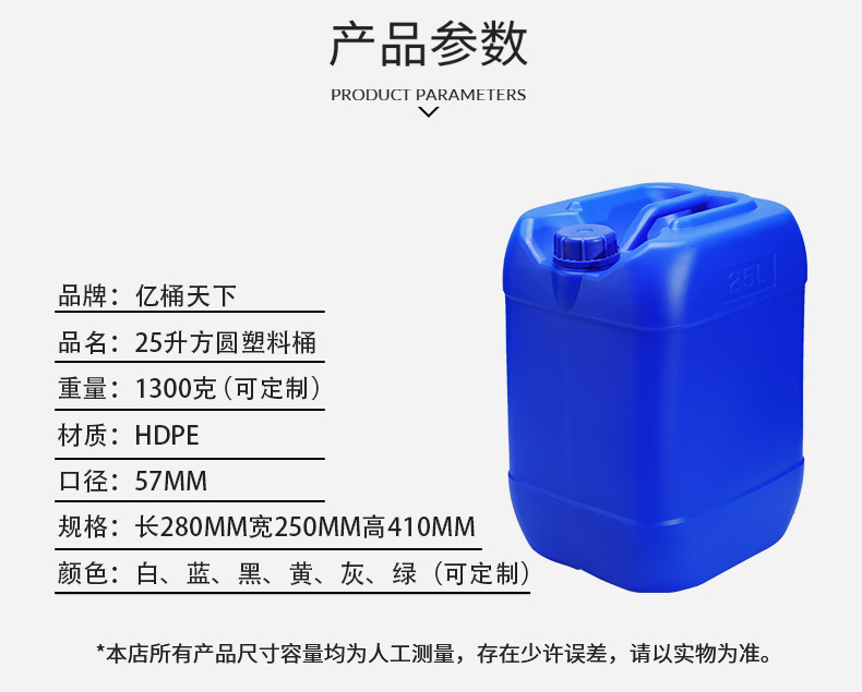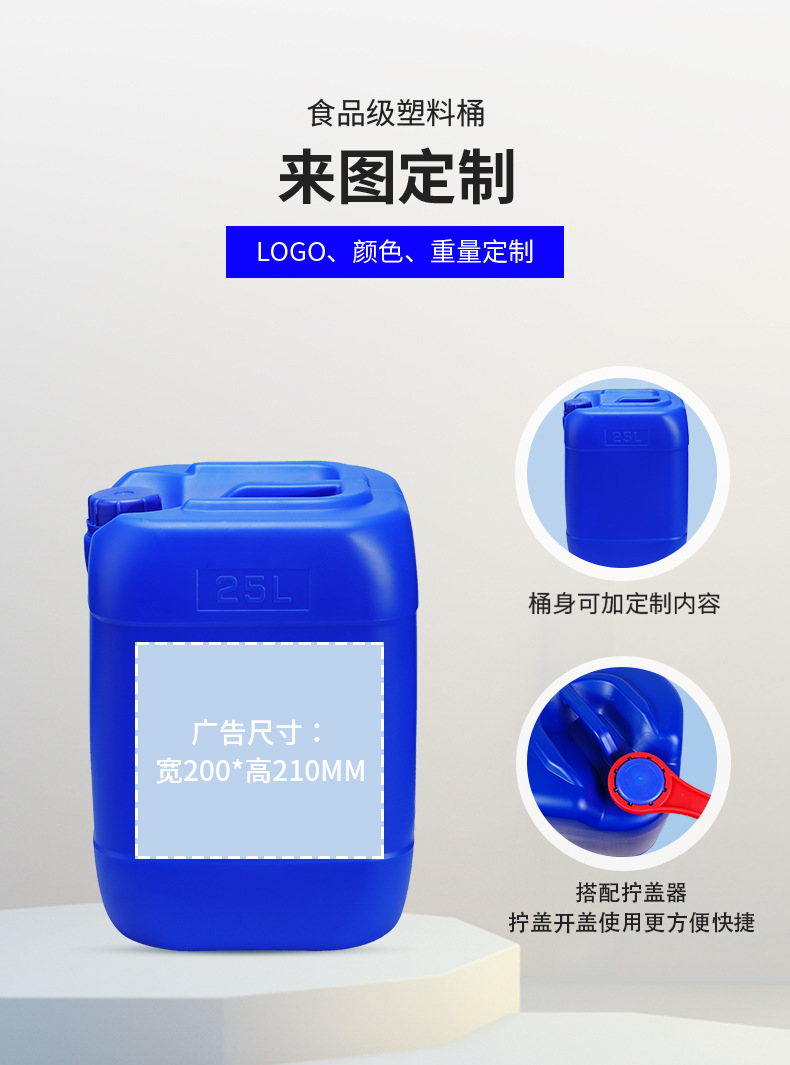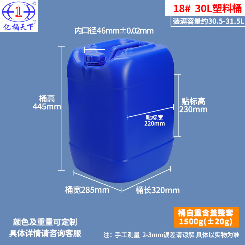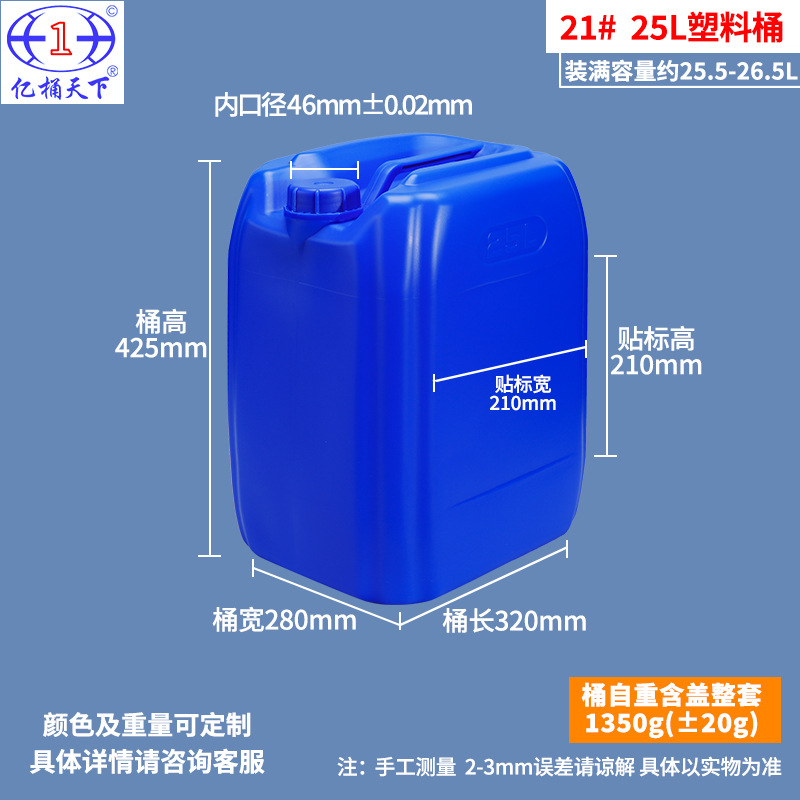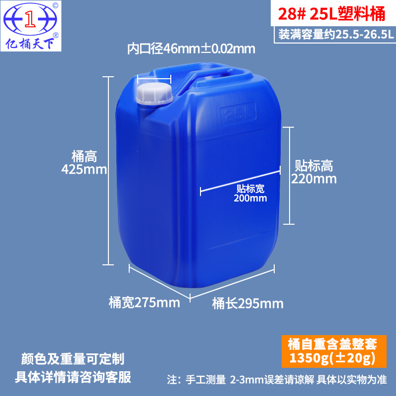 亿桶天下化工塑料桶25升加厚堆码桶30kg方桶食品级20升废液化工桶