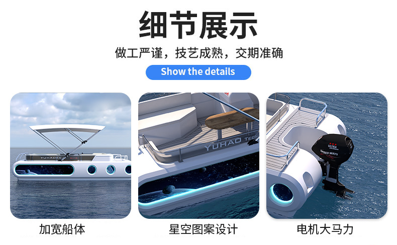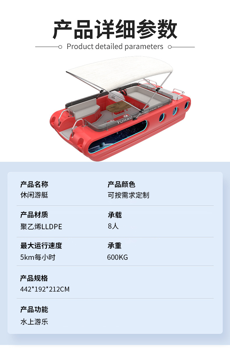 水上休闲娱乐电动游艇加厚材质水上观光游艇亲子游玩水上电动游艇