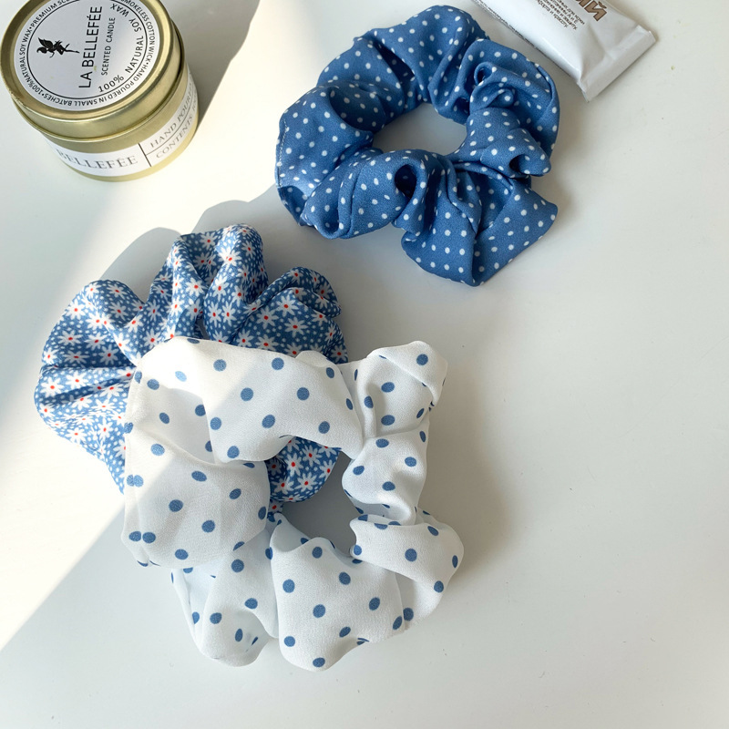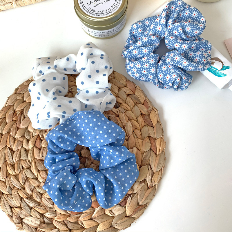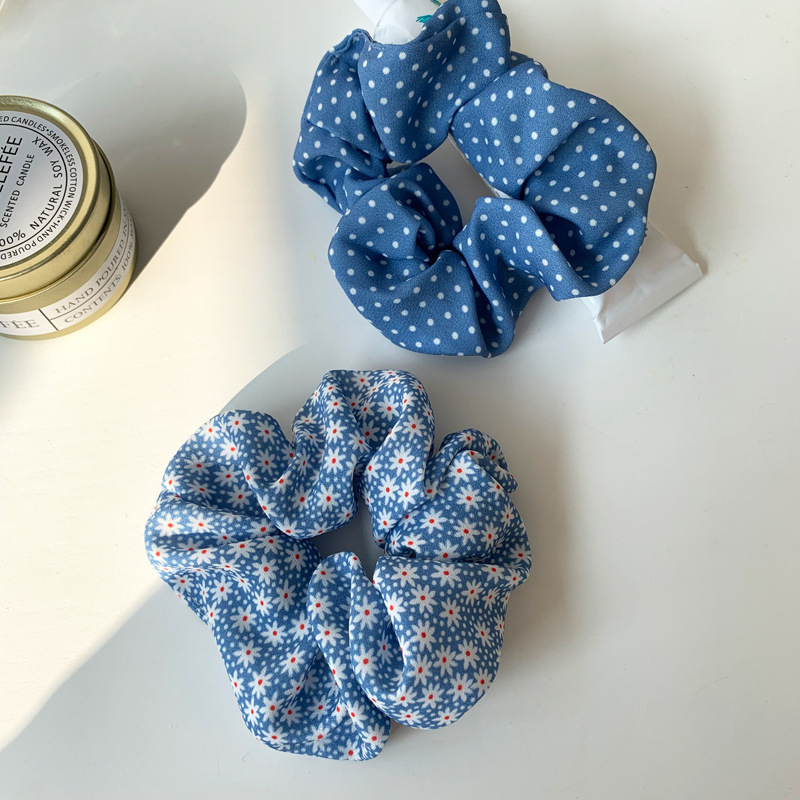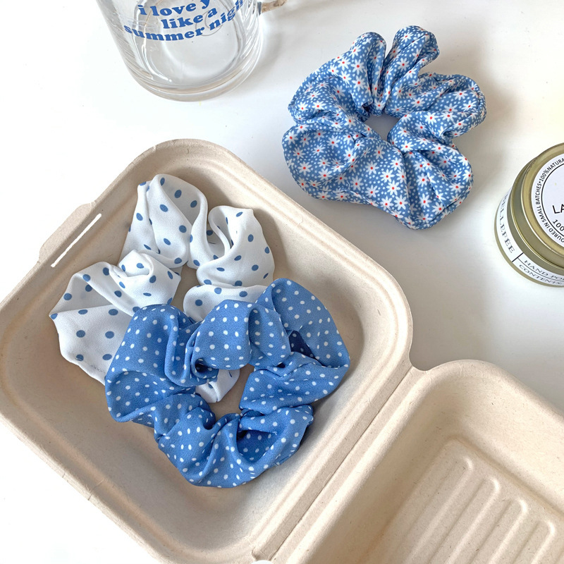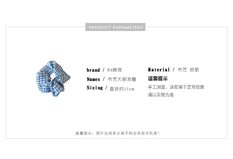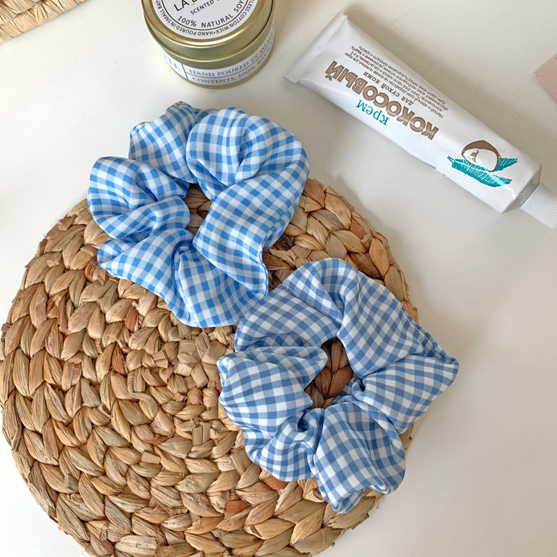 大肠圈发圈大海蓝色系发绳韩国简约格子扎头发头绳肥肠发饰女