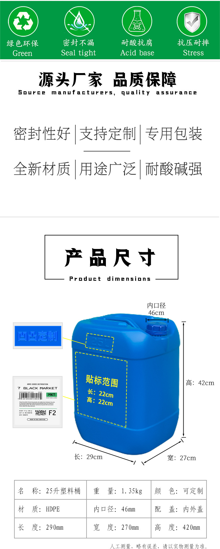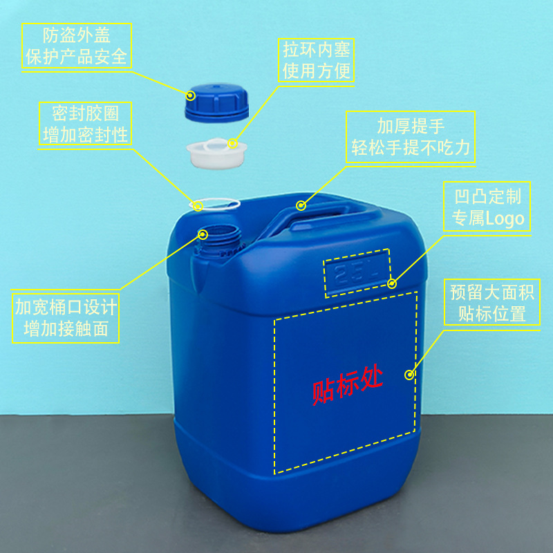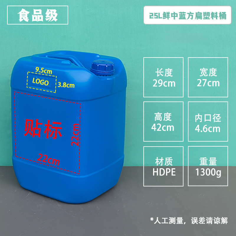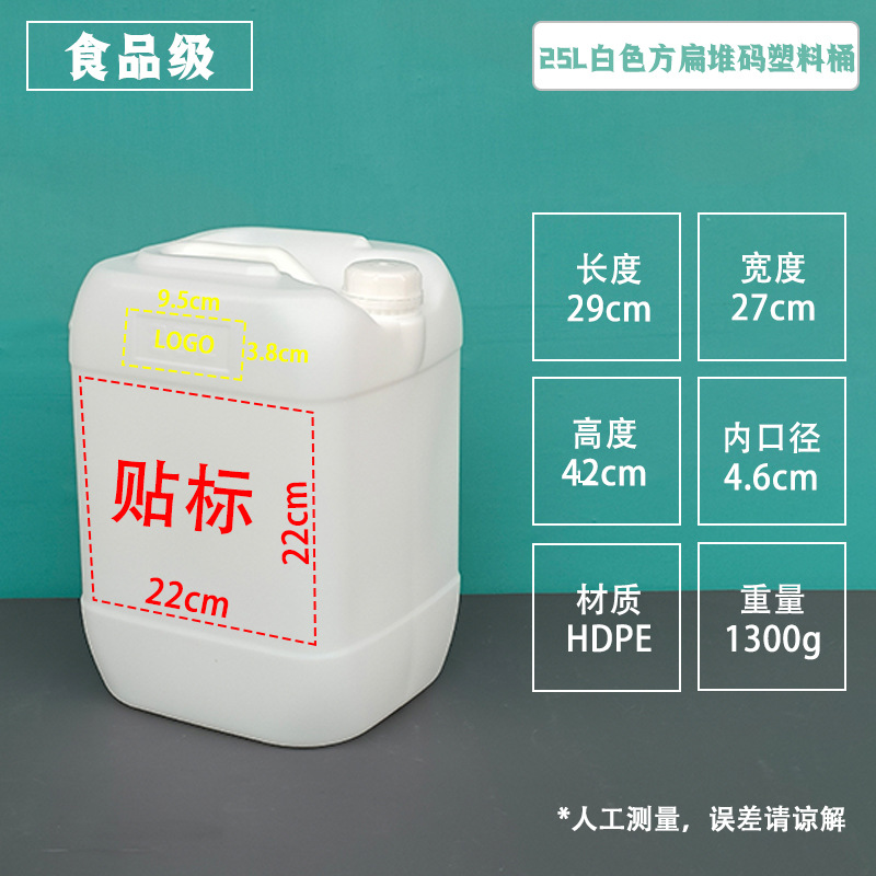 25升方形食品级塑料桶 小口密封包装塑胶堆码桶 25公斤工业化工桶