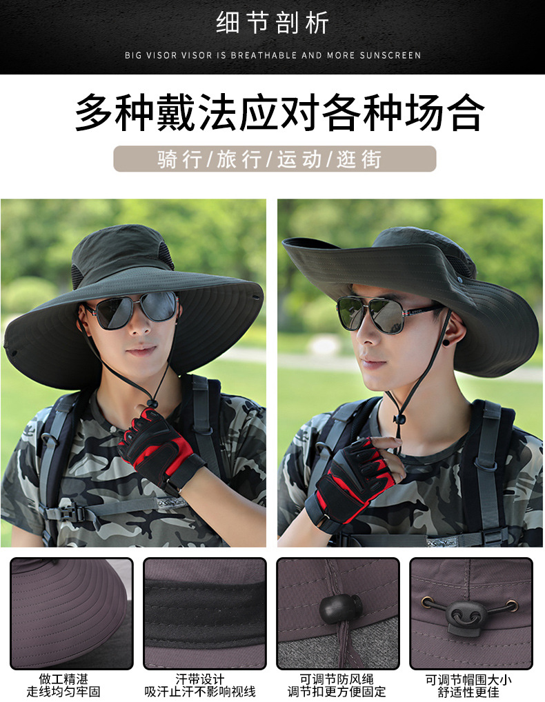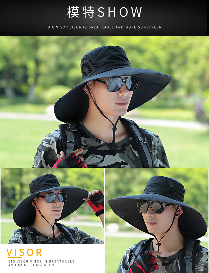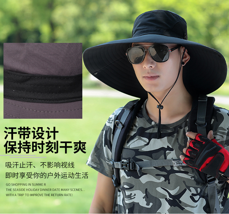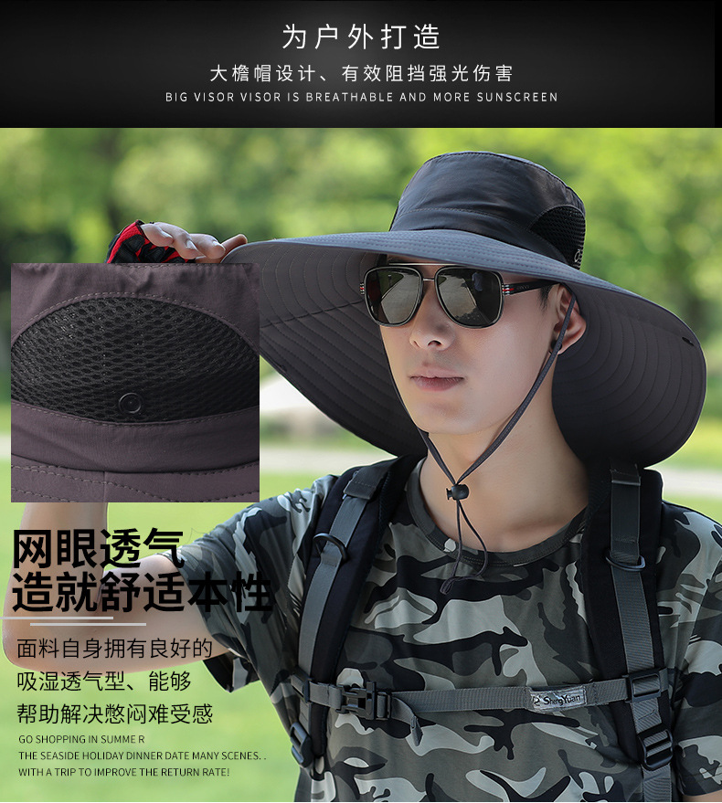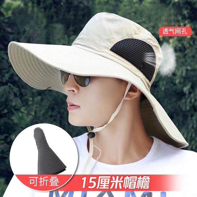 太阳帽户外草帽凉遮阳帽钓鱼防晒帽子男士夏季防晒面罩遮脸渔夫帽