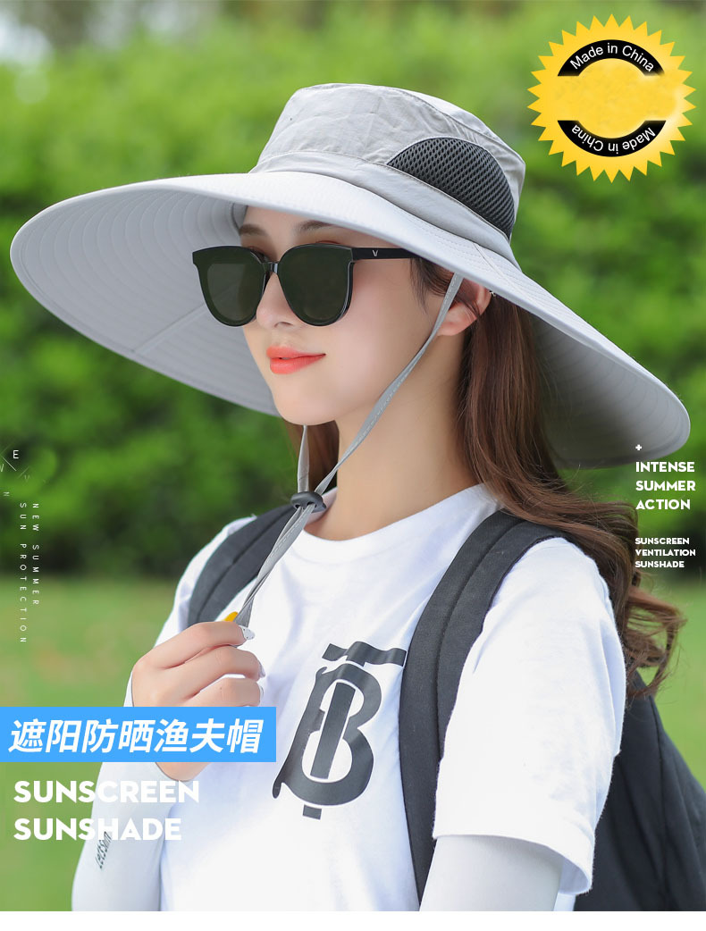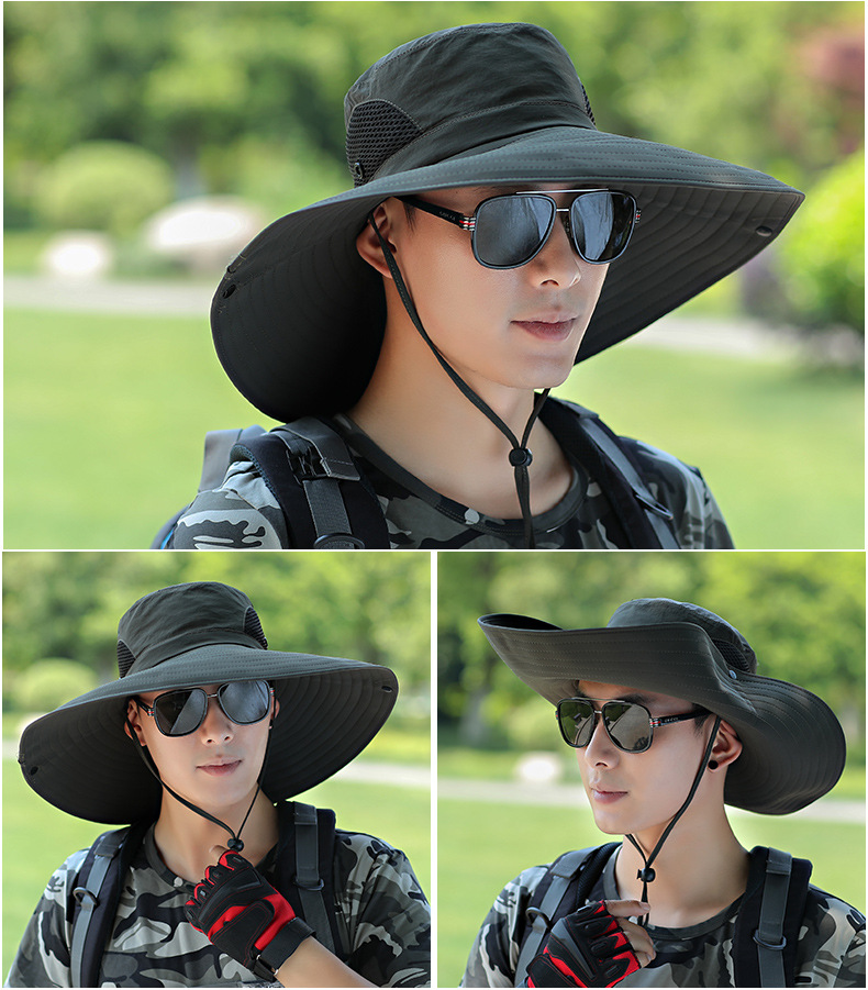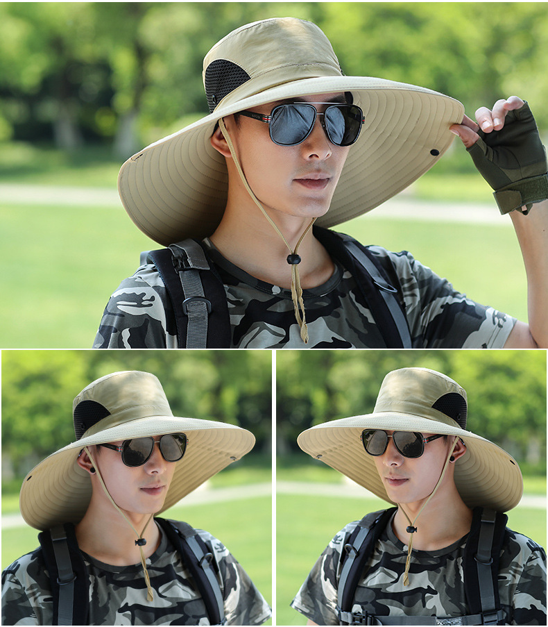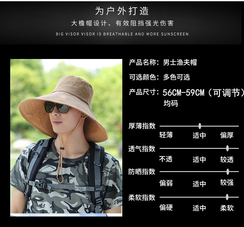 太阳帽户外草帽凉遮阳帽钓鱼防晒帽子男士夏季防晒面罩遮脸渔夫帽