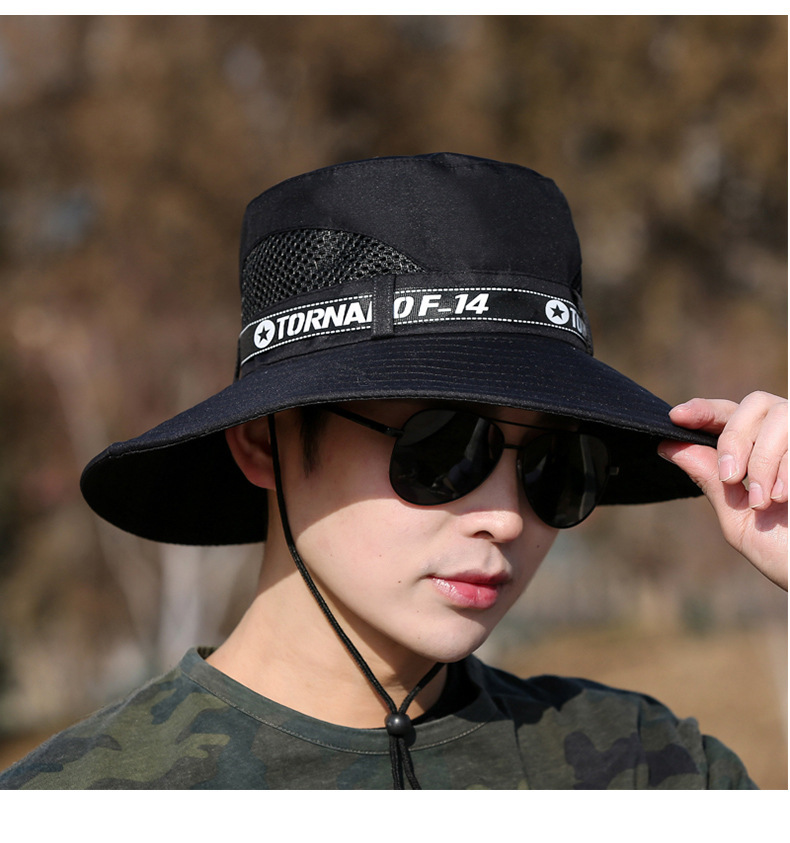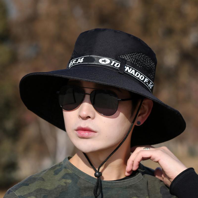 太阳帽钓鱼帽子透气夏季渔夫帽户外圆边帽男旅游夏遮阳骑行登山