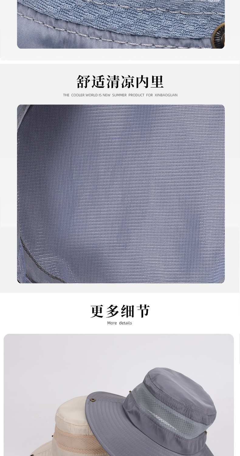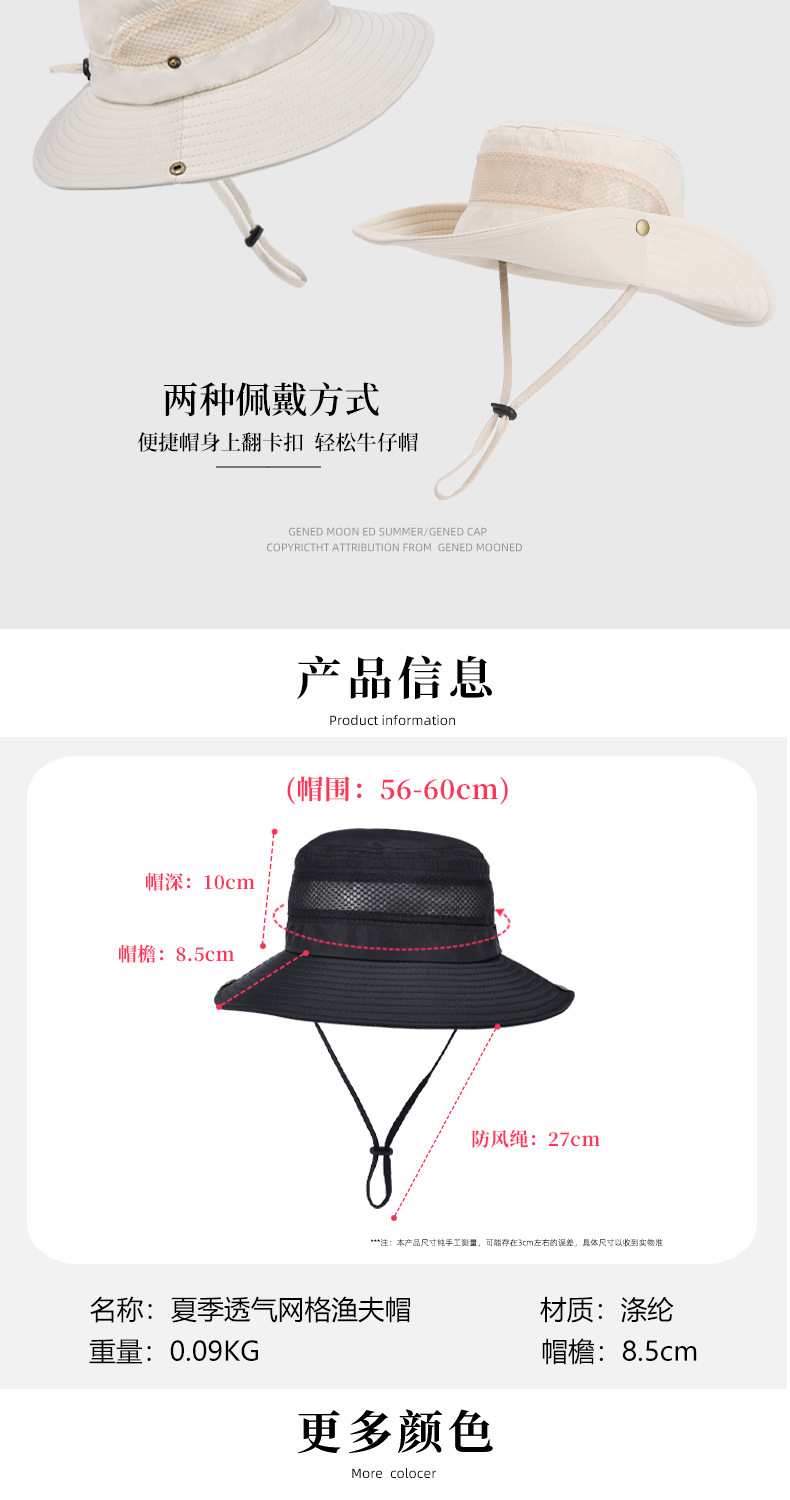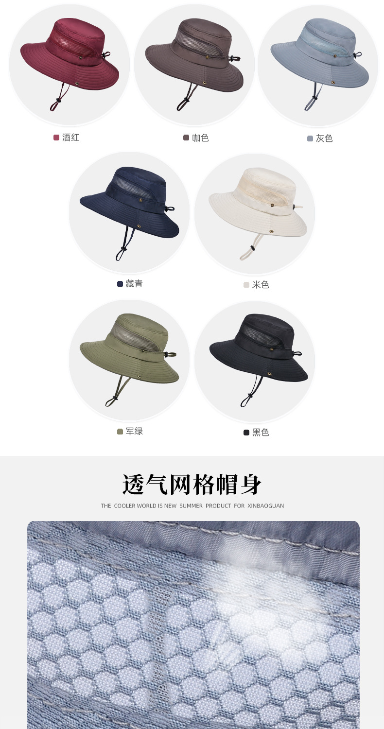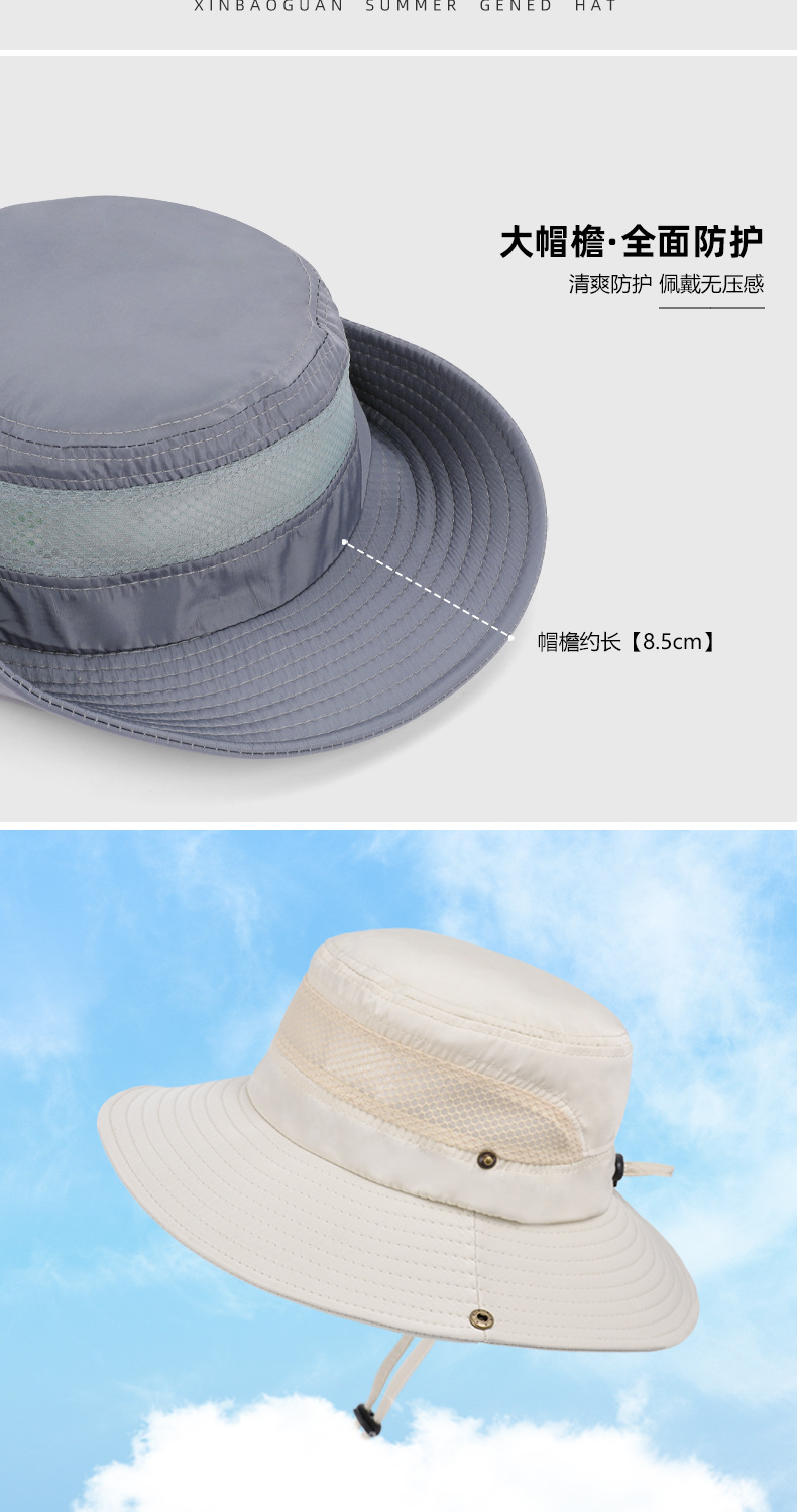 夏季防晒遮阳渔夫帽子男女骑车帽户外钓鱼登山大檐网格透气太阳帽