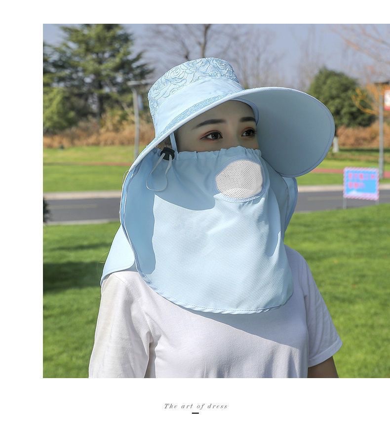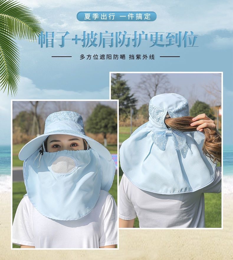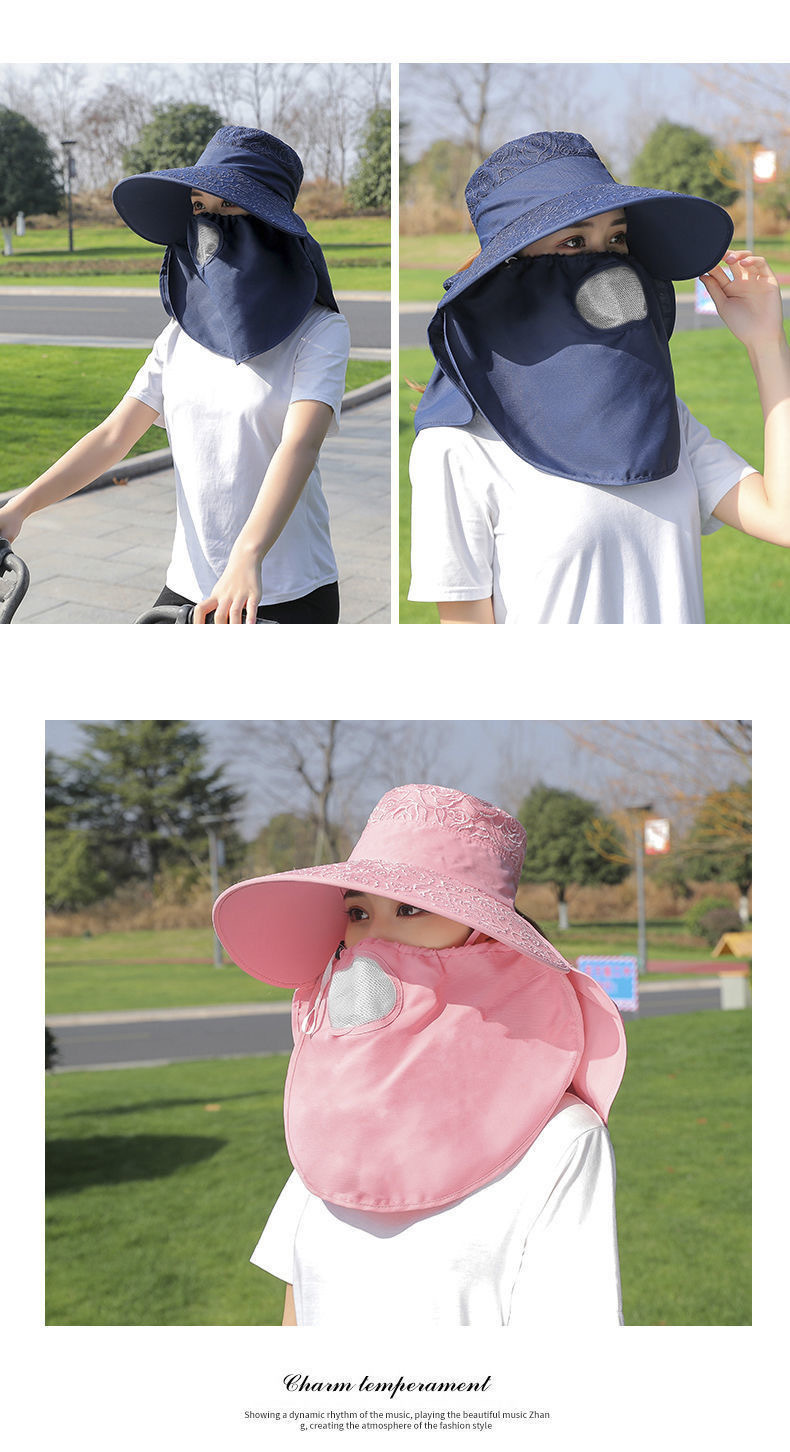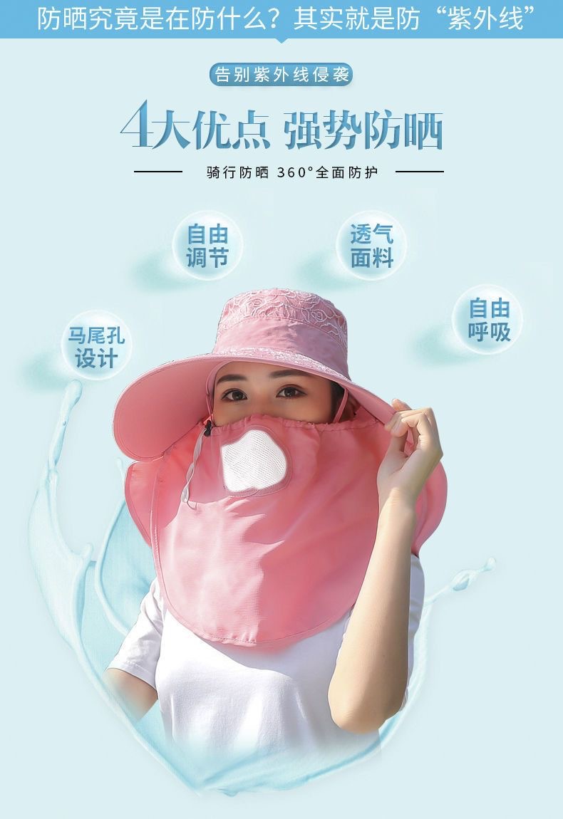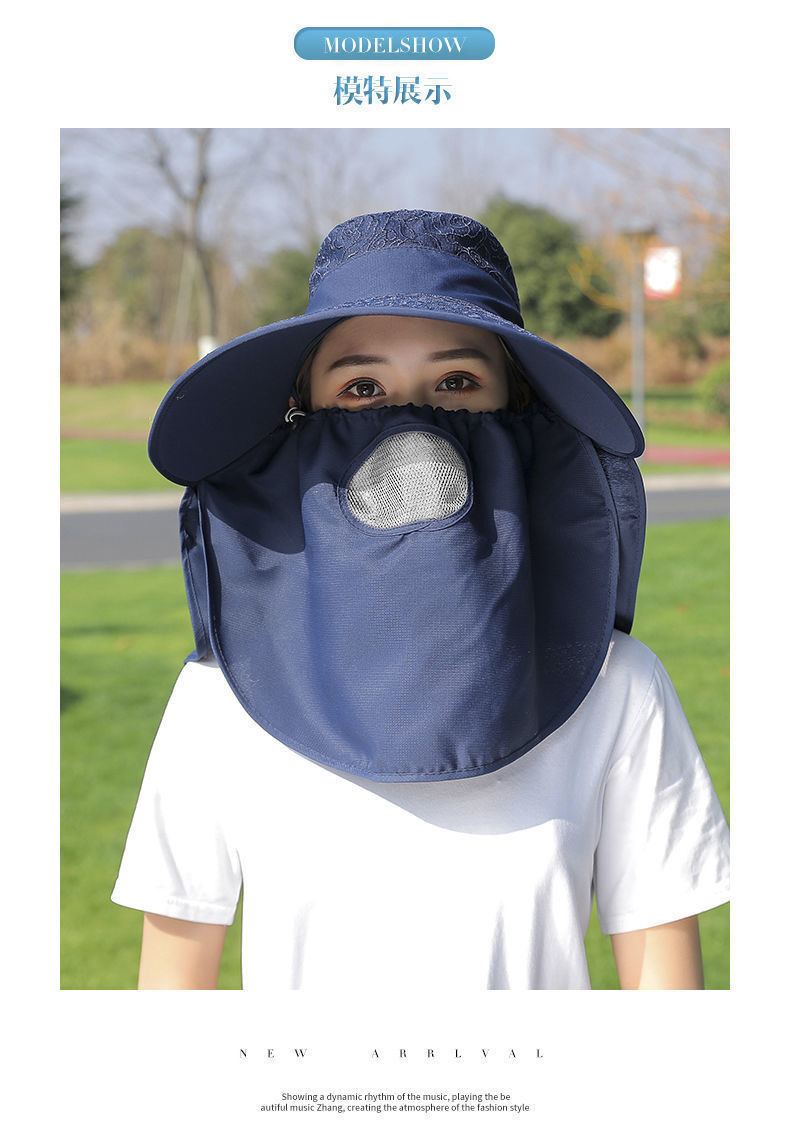 帽子女防晒帽防紫外线大檐透气全遮脸口罩太阳帽采茶干活遮阳帽