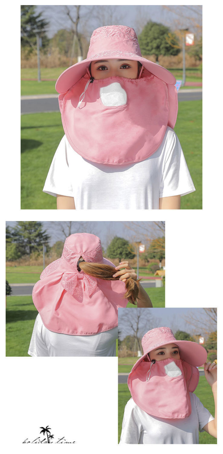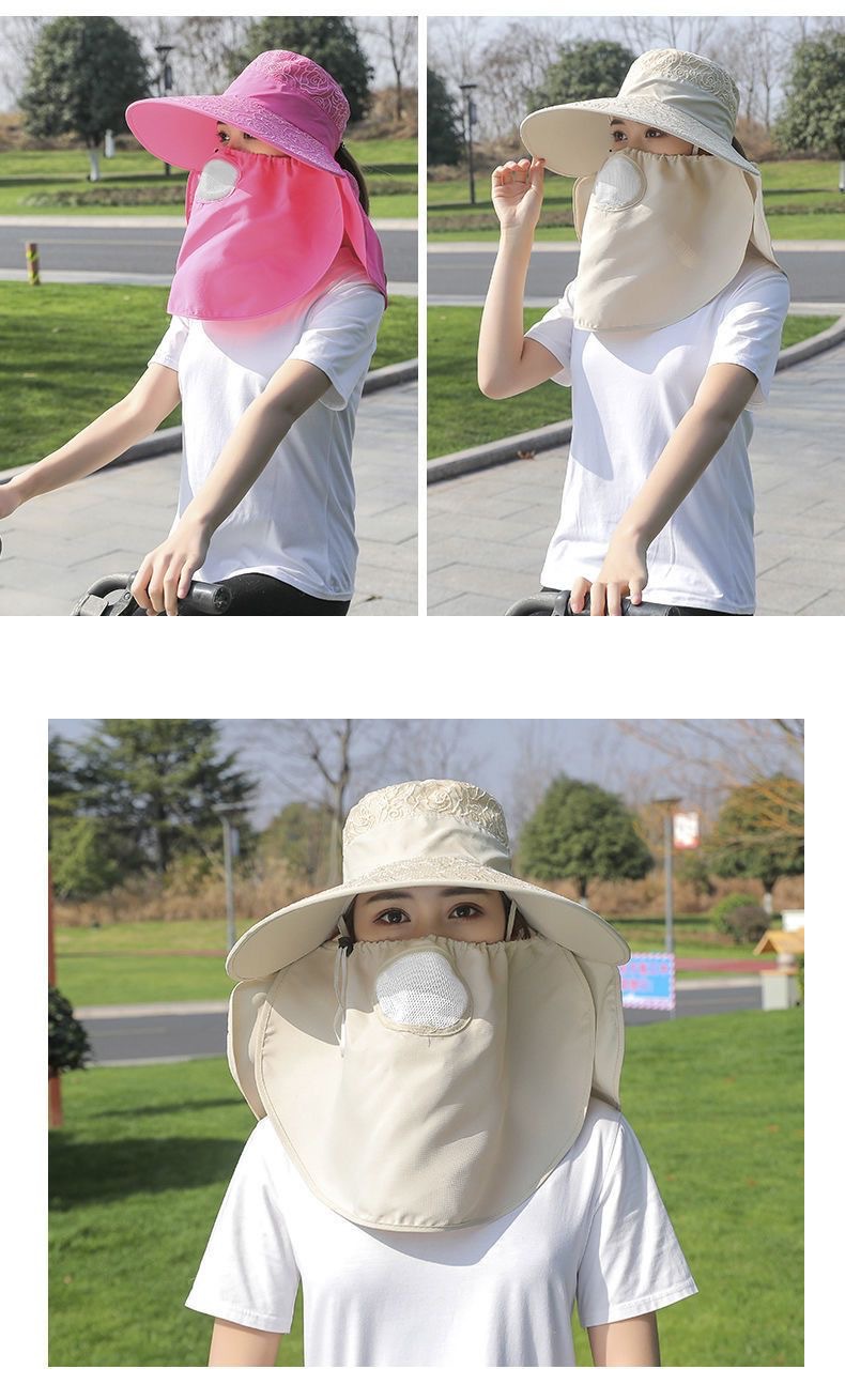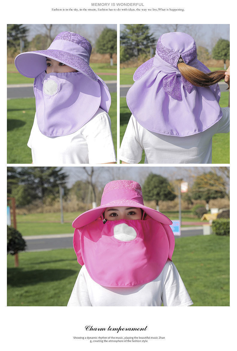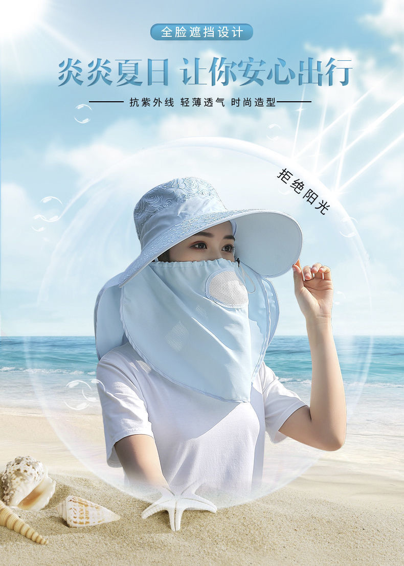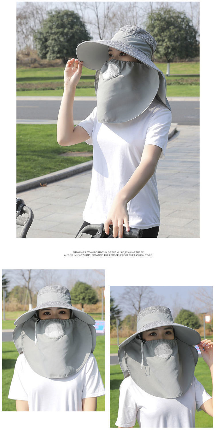 帽子女防晒帽防紫外线大檐透气全遮脸口罩太阳帽采茶干活遮阳帽