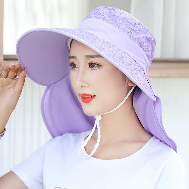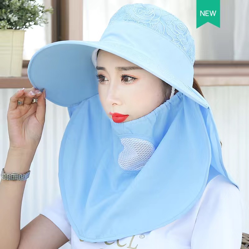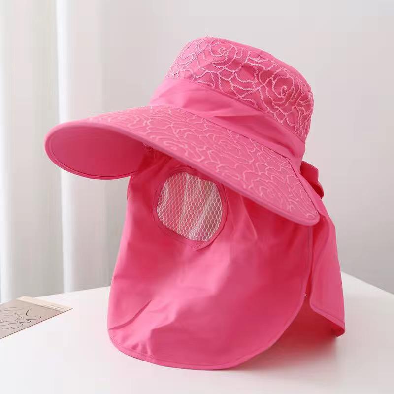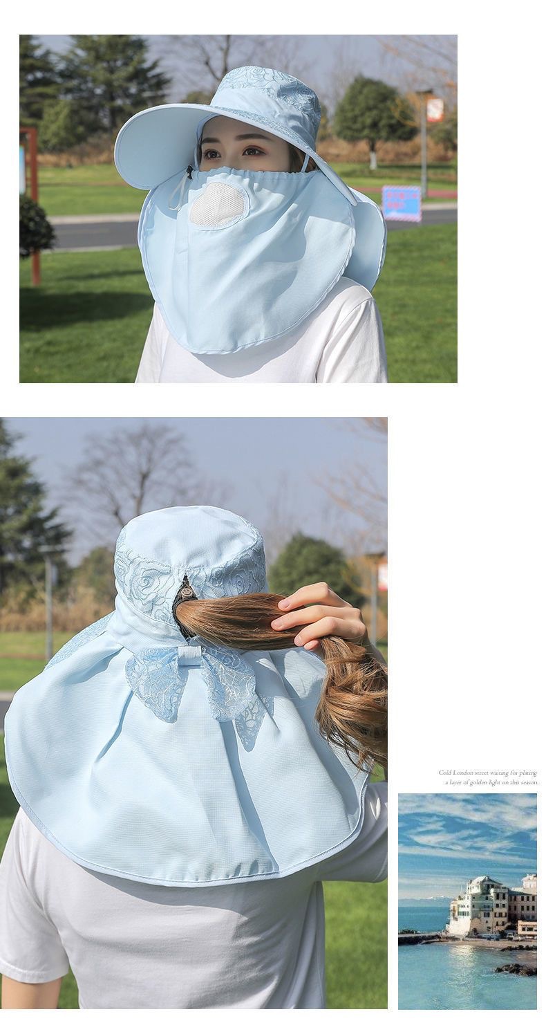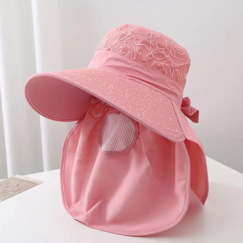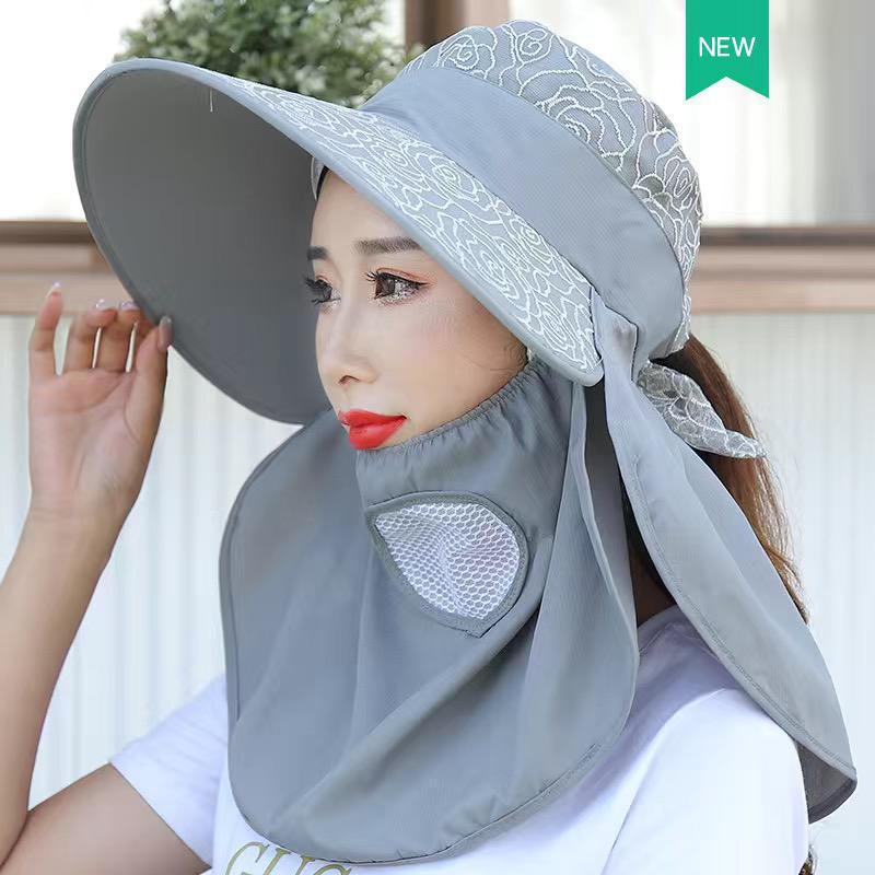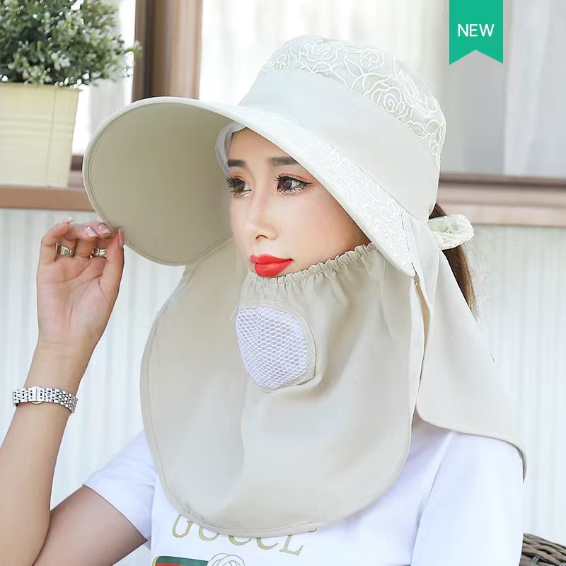 帽子女防晒帽防紫外线大檐透气全遮脸口罩太阳帽采茶干活遮阳帽