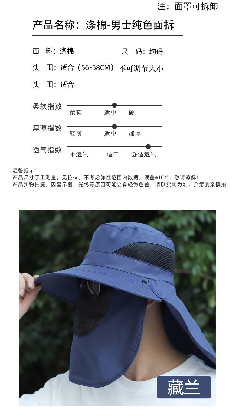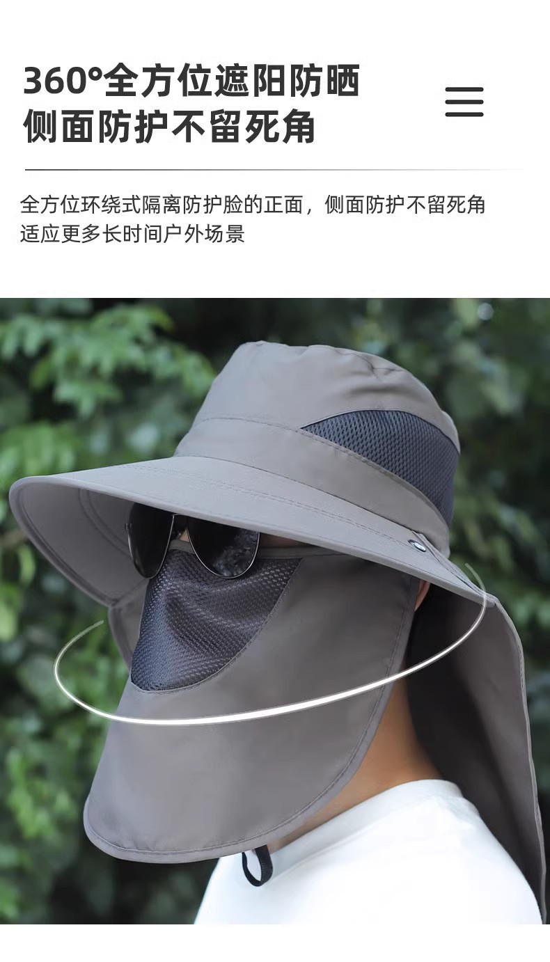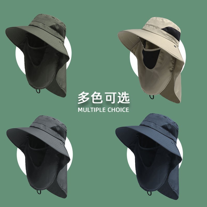 防晒帽子男士夏季渔夫帽太阳帽户外防晒面罩遮脸钓鱼帽洋气垂钓