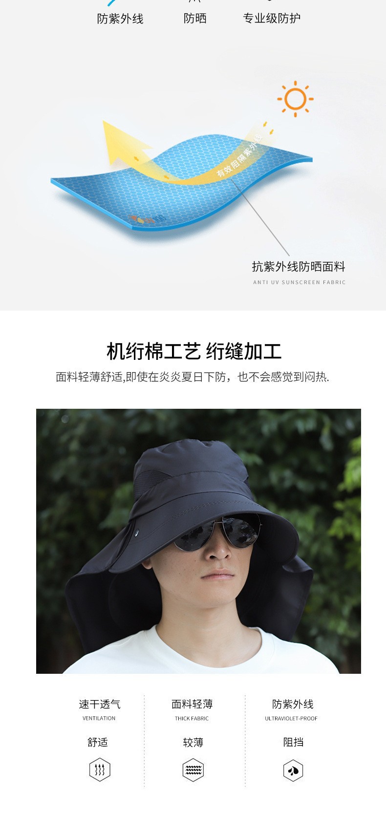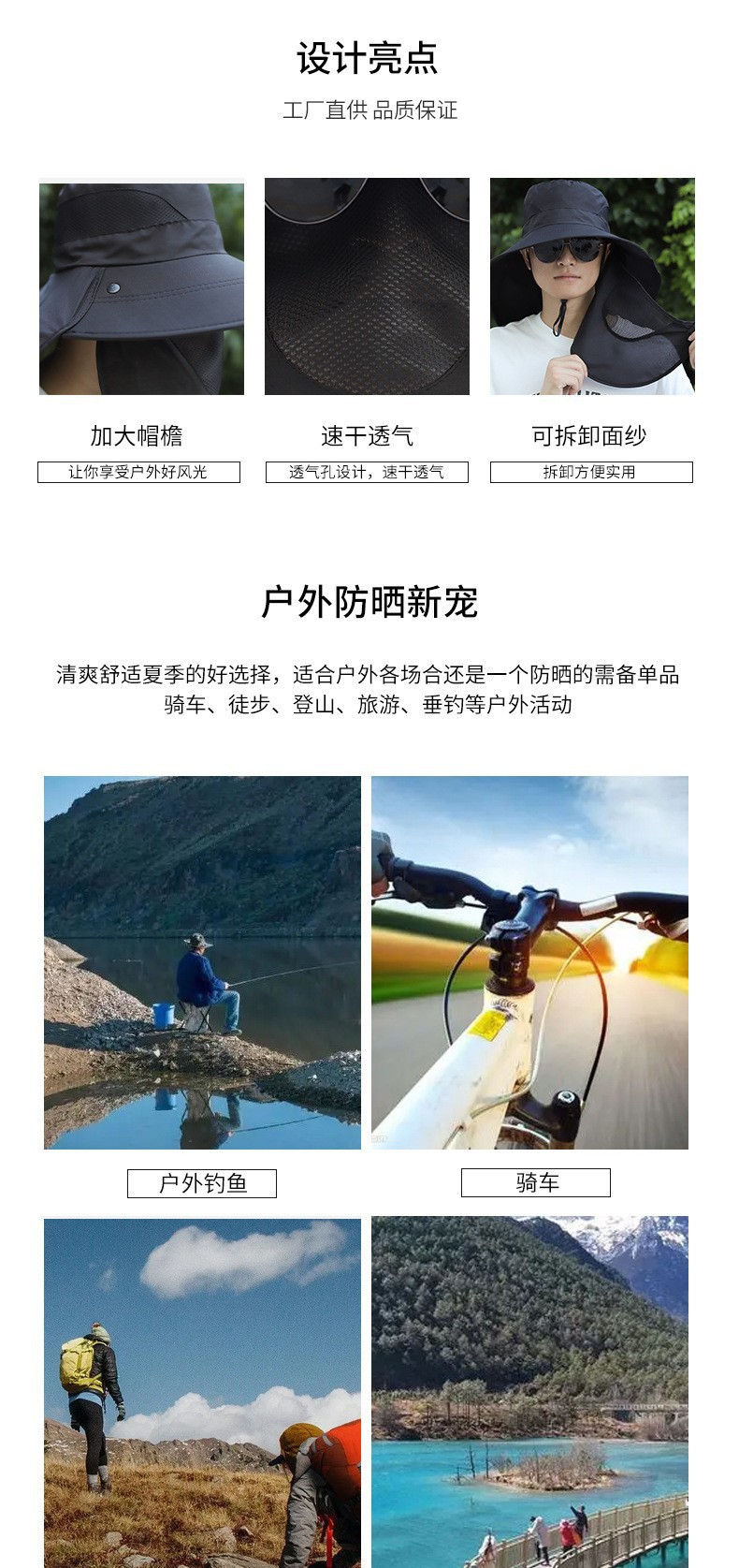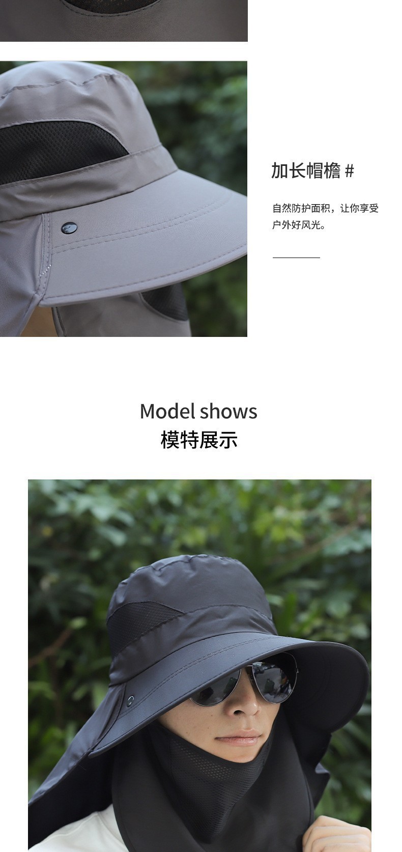 防晒帽子男士夏季渔夫帽太阳帽户外防晒面罩遮脸钓鱼帽洋气垂钓