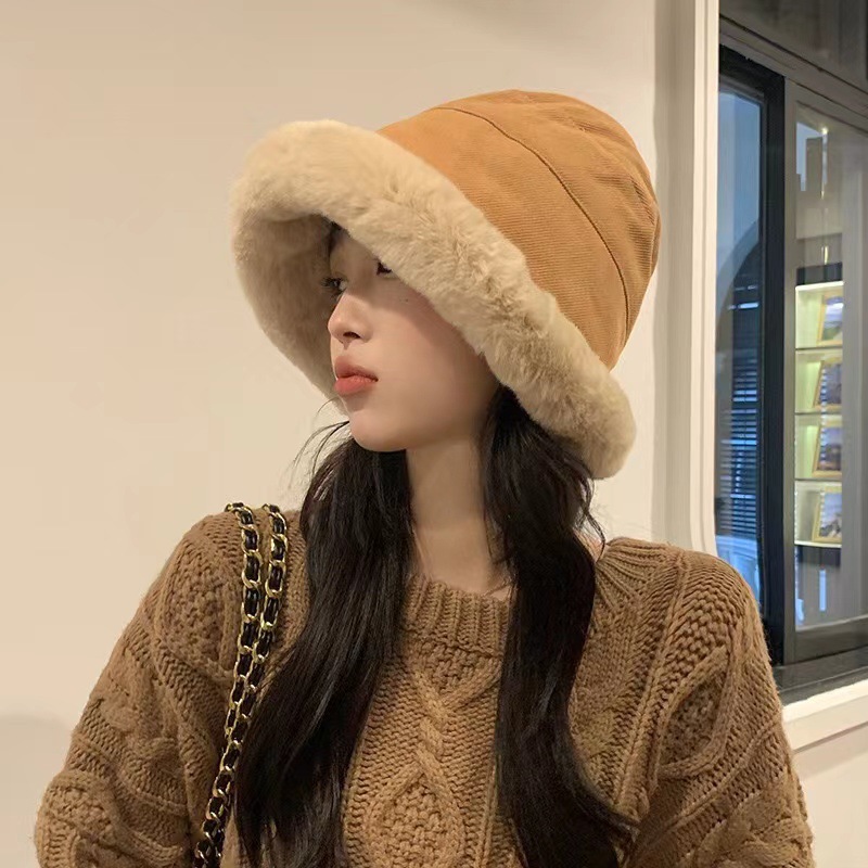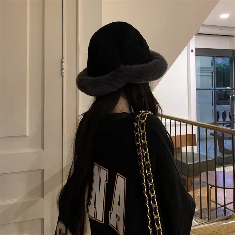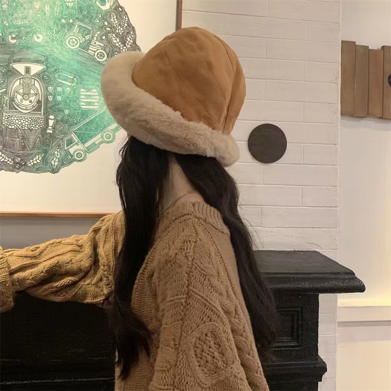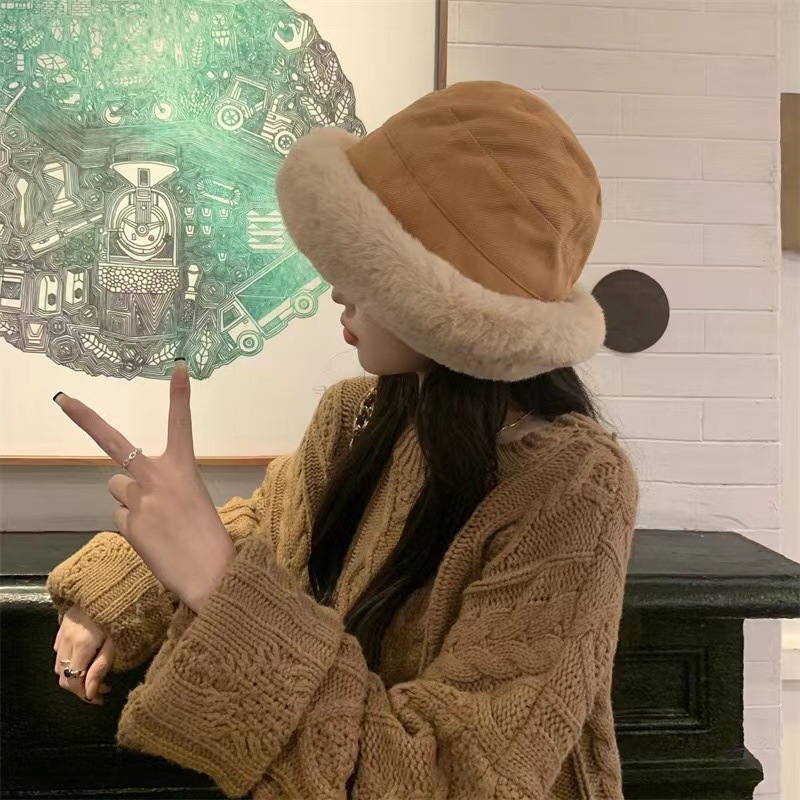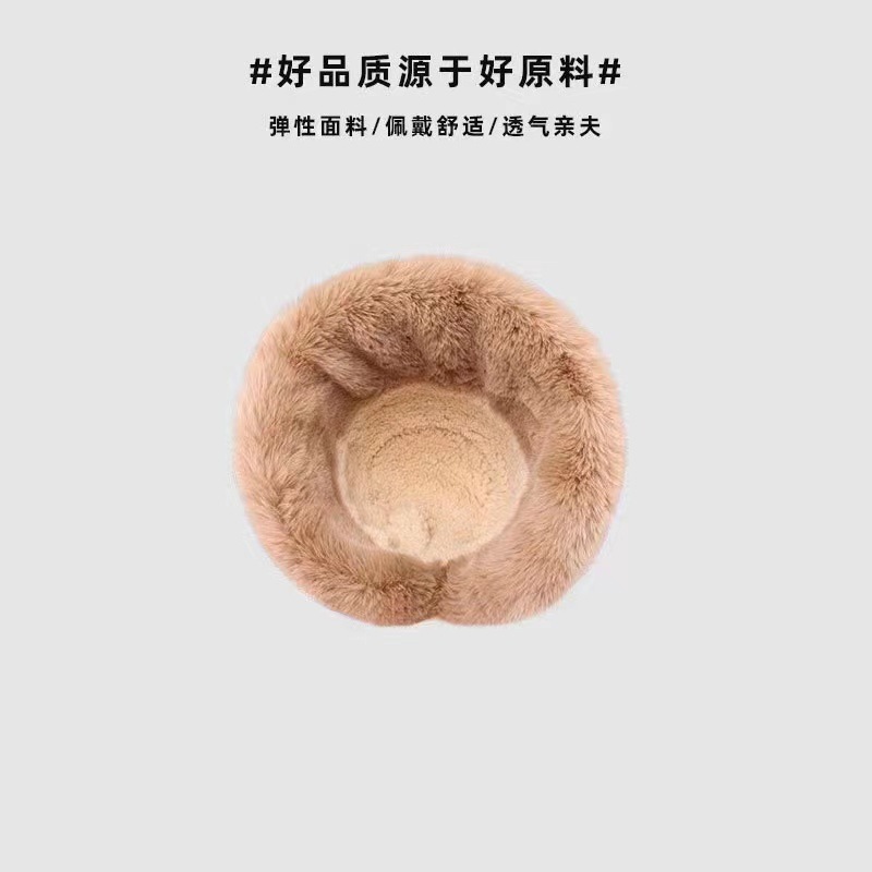 毛绒渔夫帽秋冬加厚保暖女防寒防风护耳盆帽冬天卷边子女款
