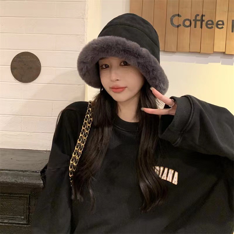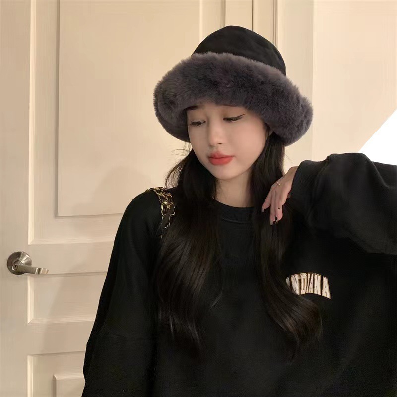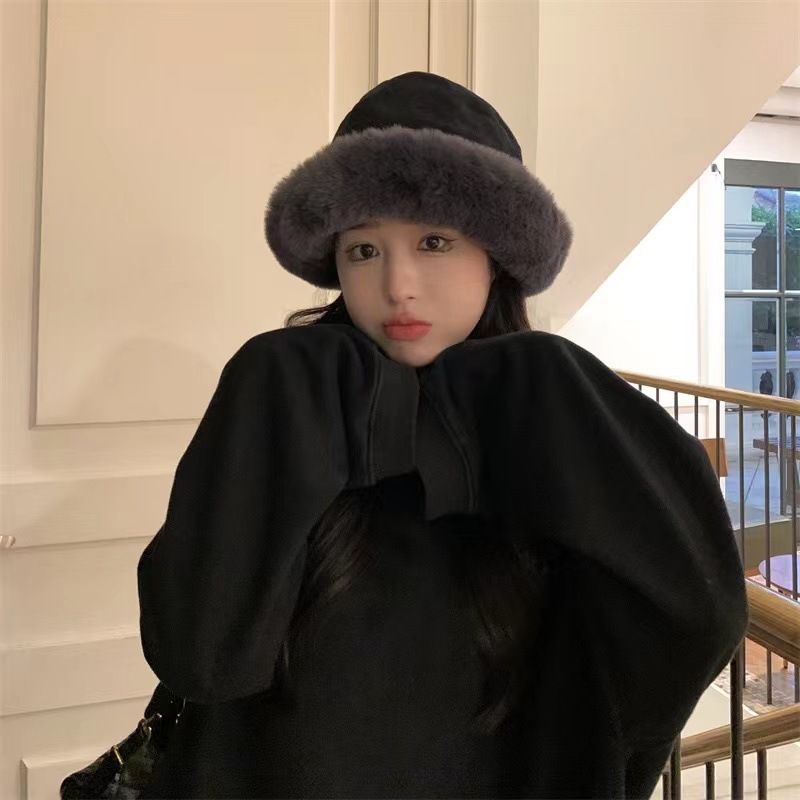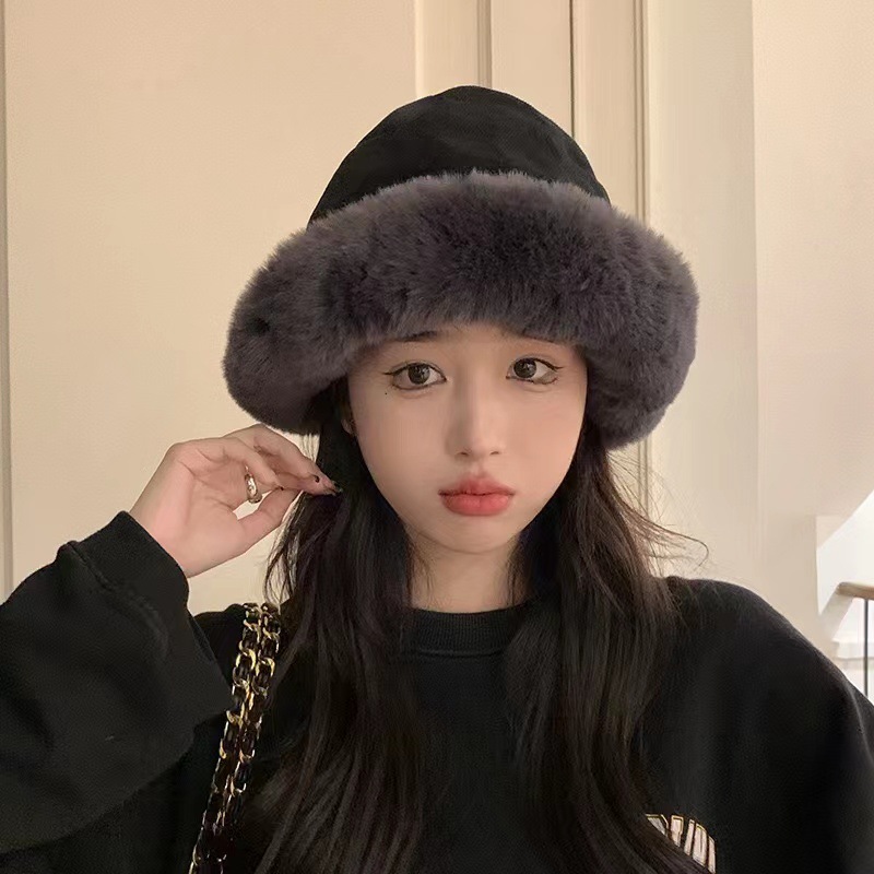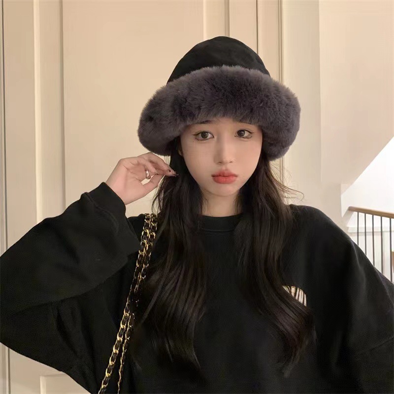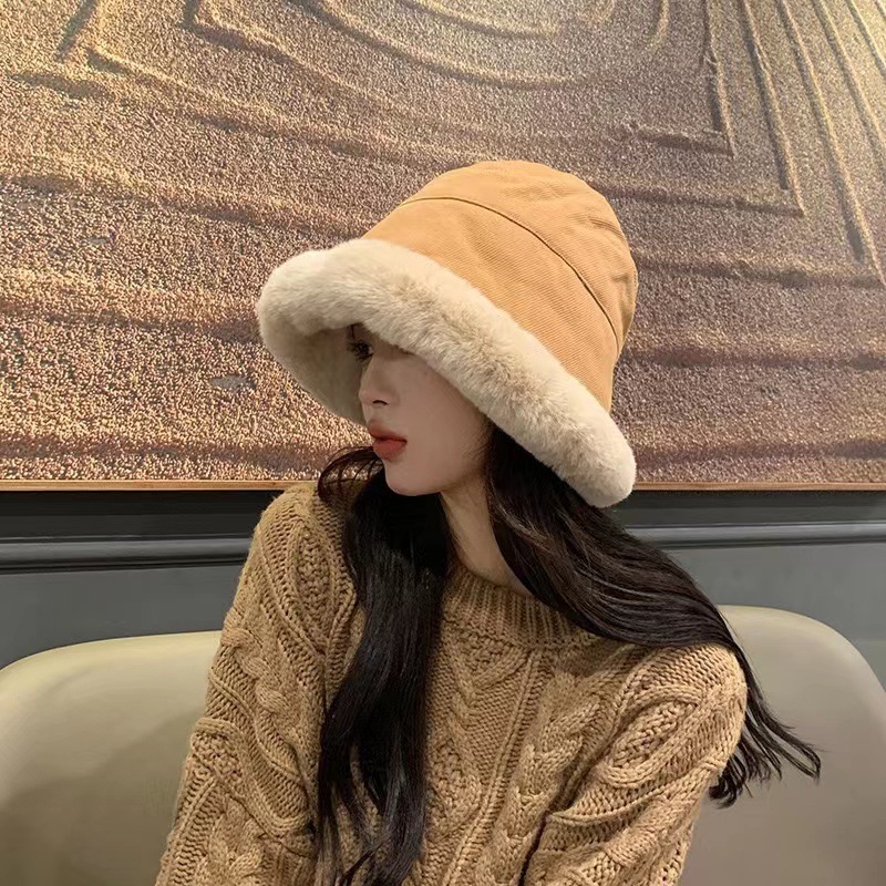 毛绒渔夫帽秋冬加厚保暖女防寒防风护耳盆帽冬天卷边子女款