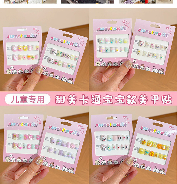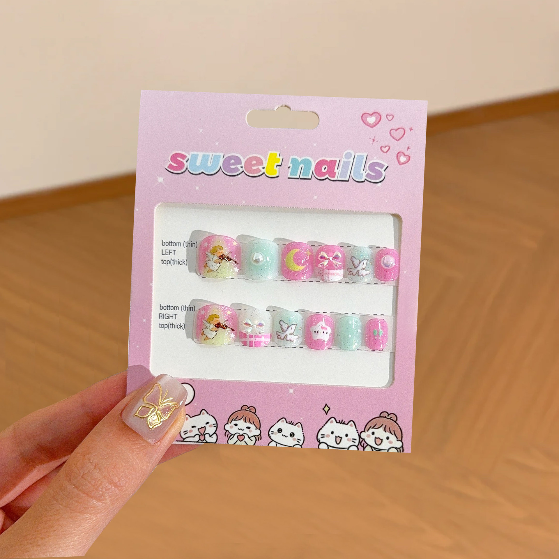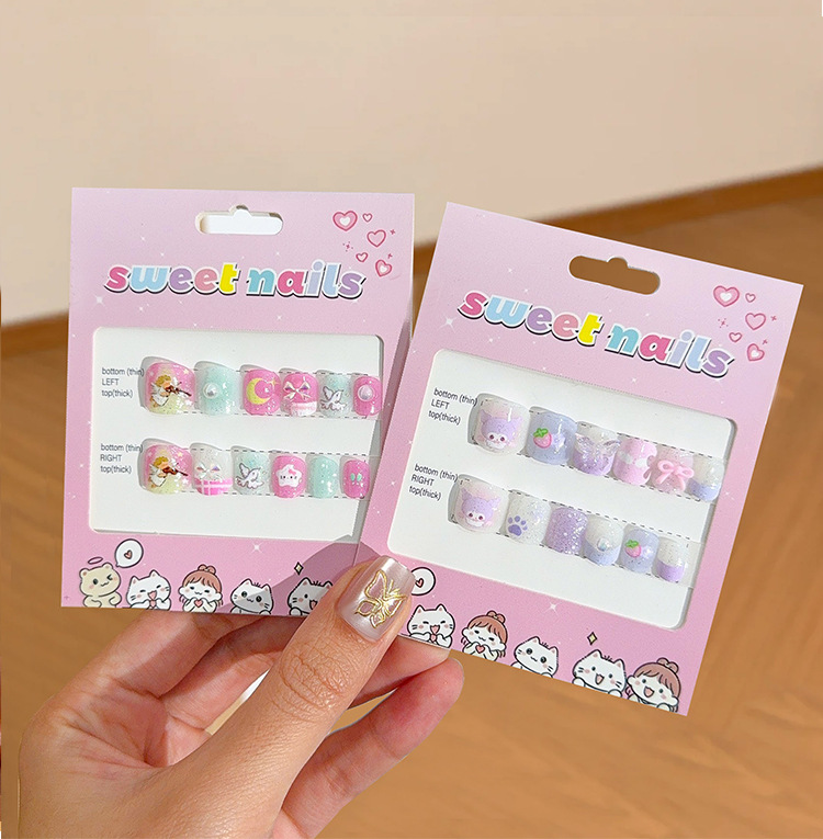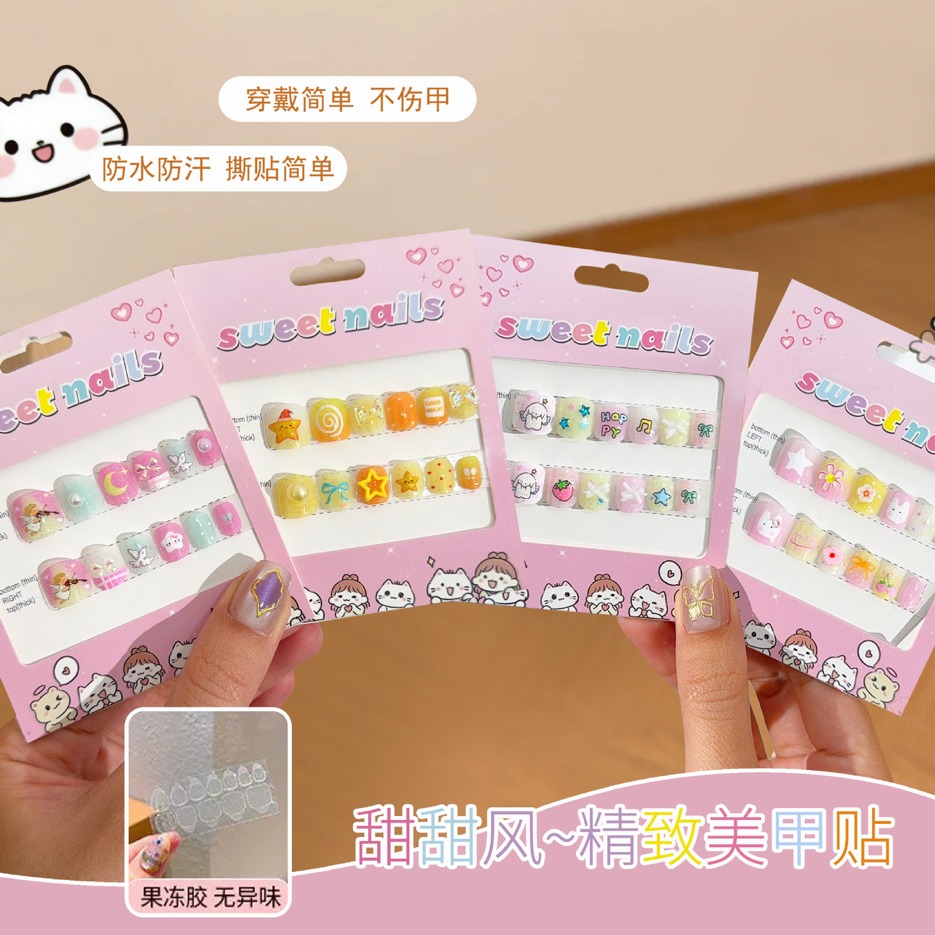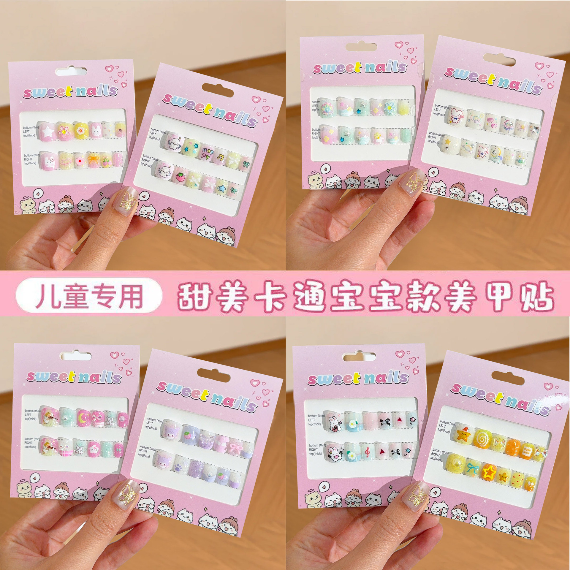 可爱卡通美甲贴片儿童美甲鎏金葱粉穿戴甲贴片卡通手工点钻甲