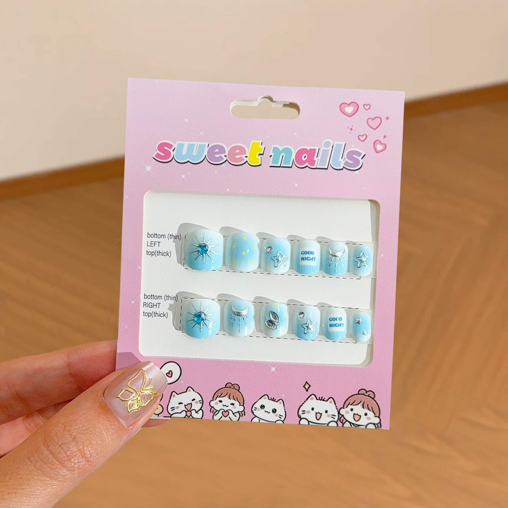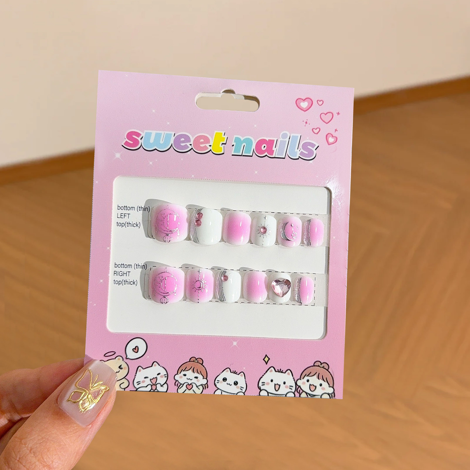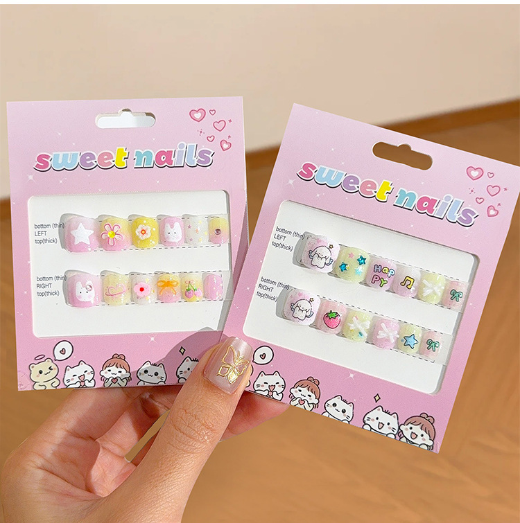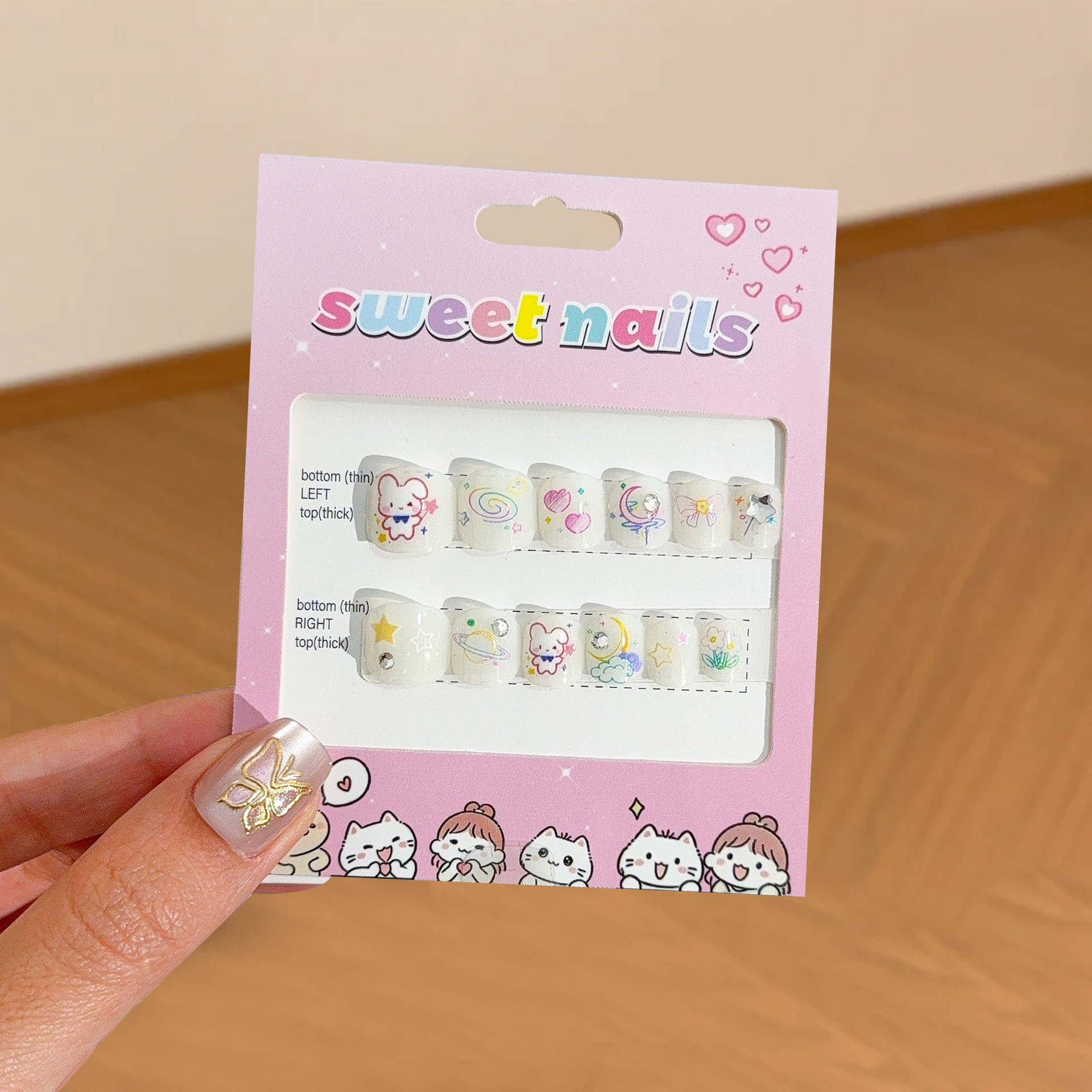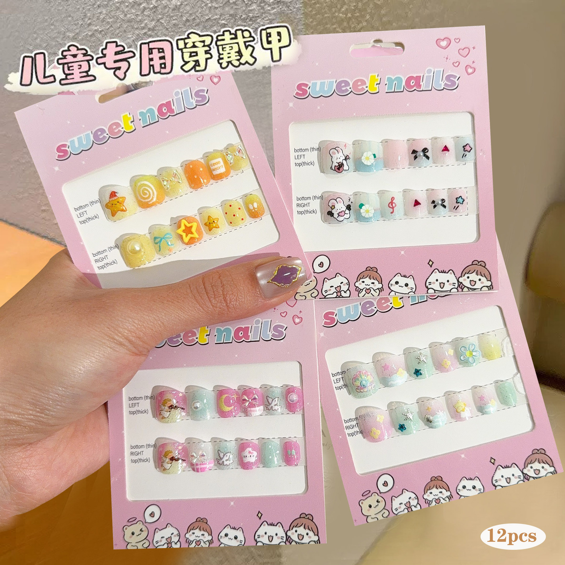 可爱卡通美甲贴片儿童美甲鎏金葱粉穿戴甲贴片卡通手工点钻甲
