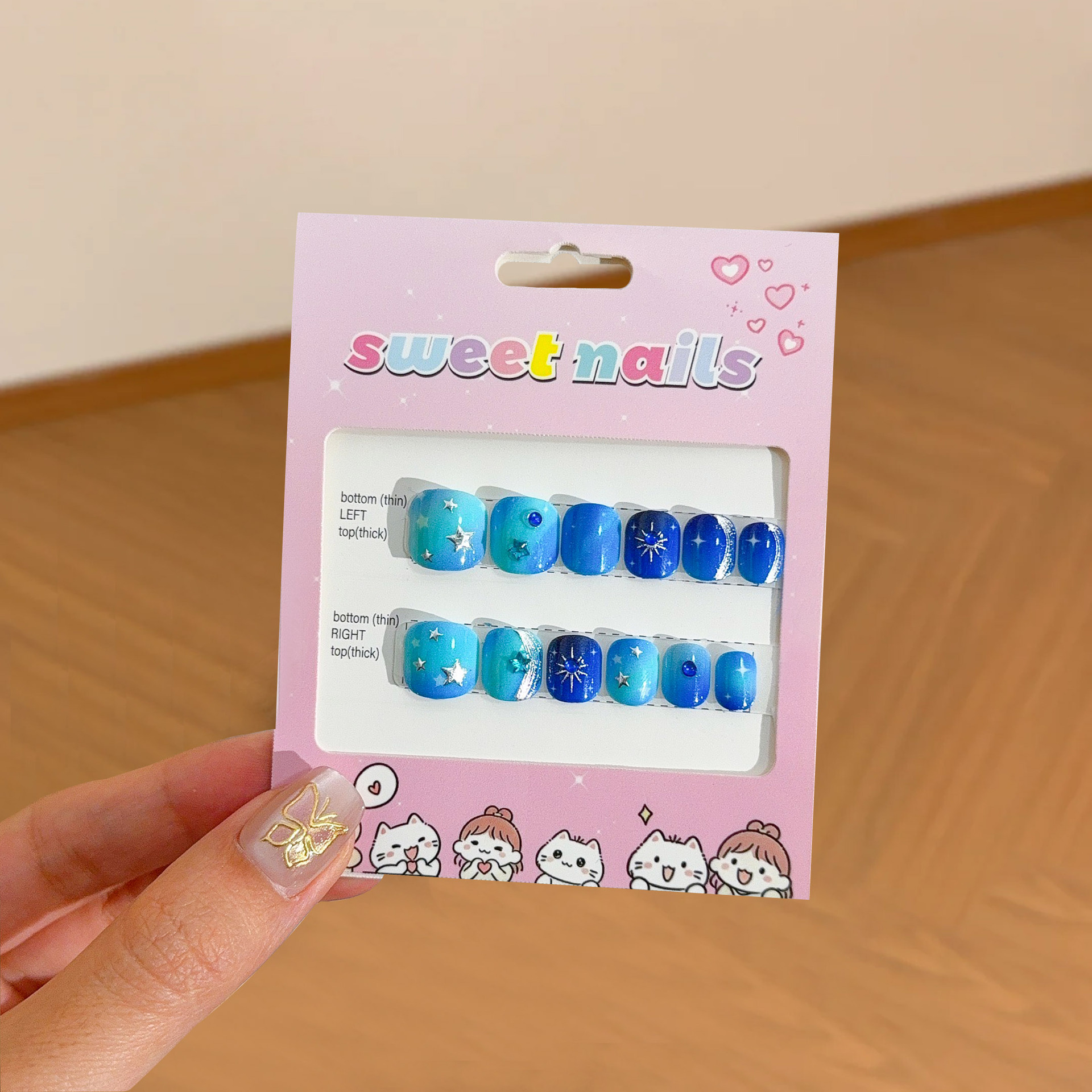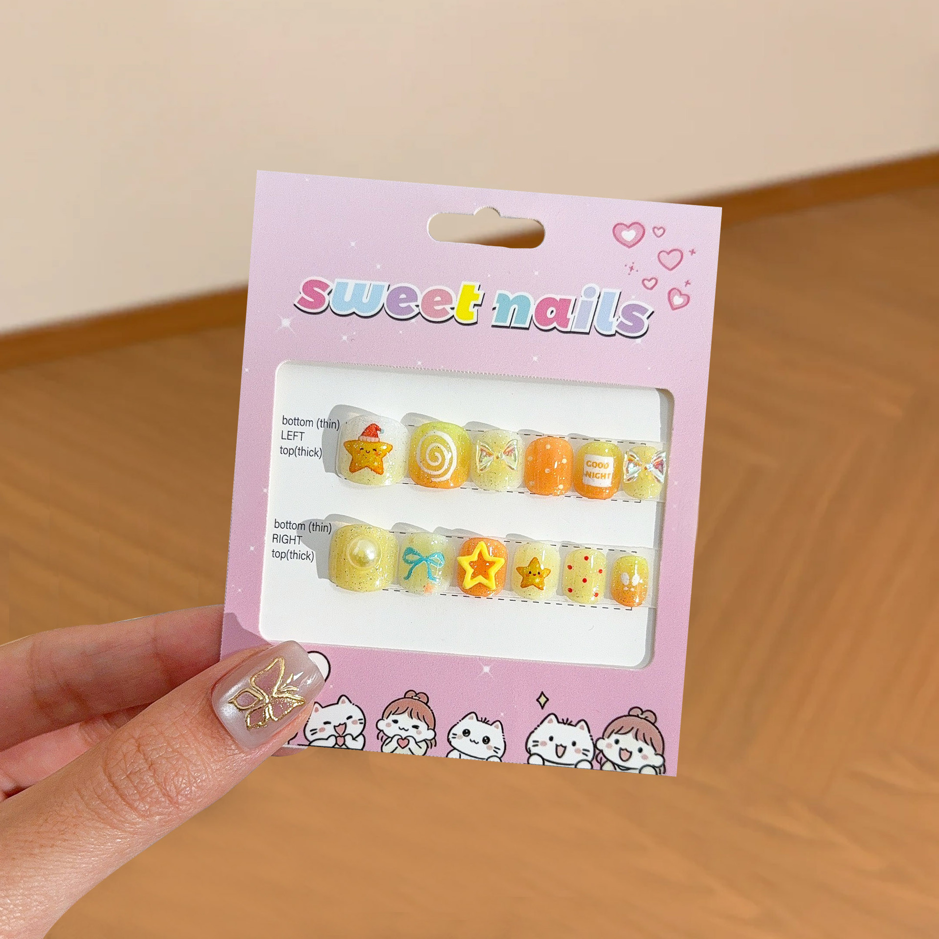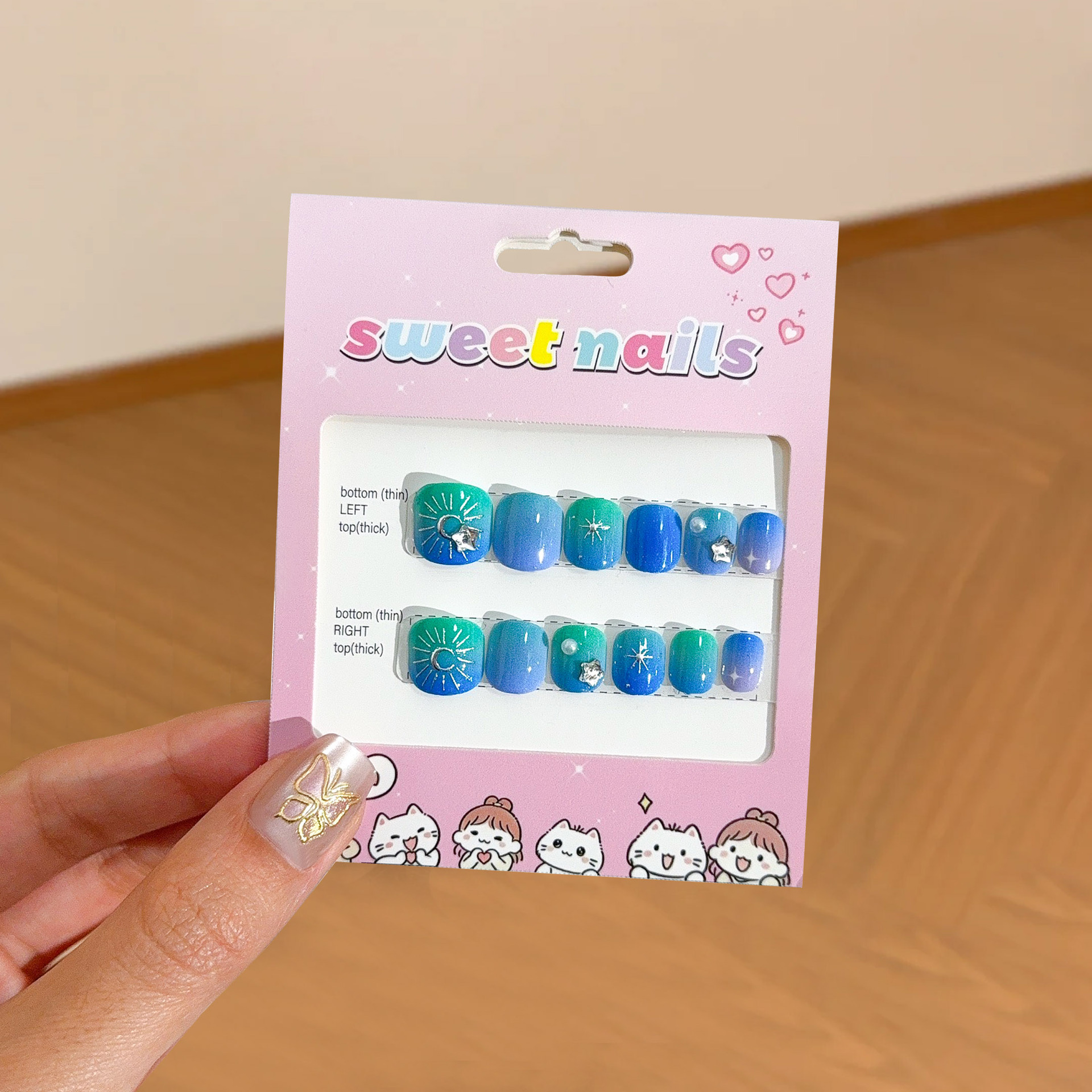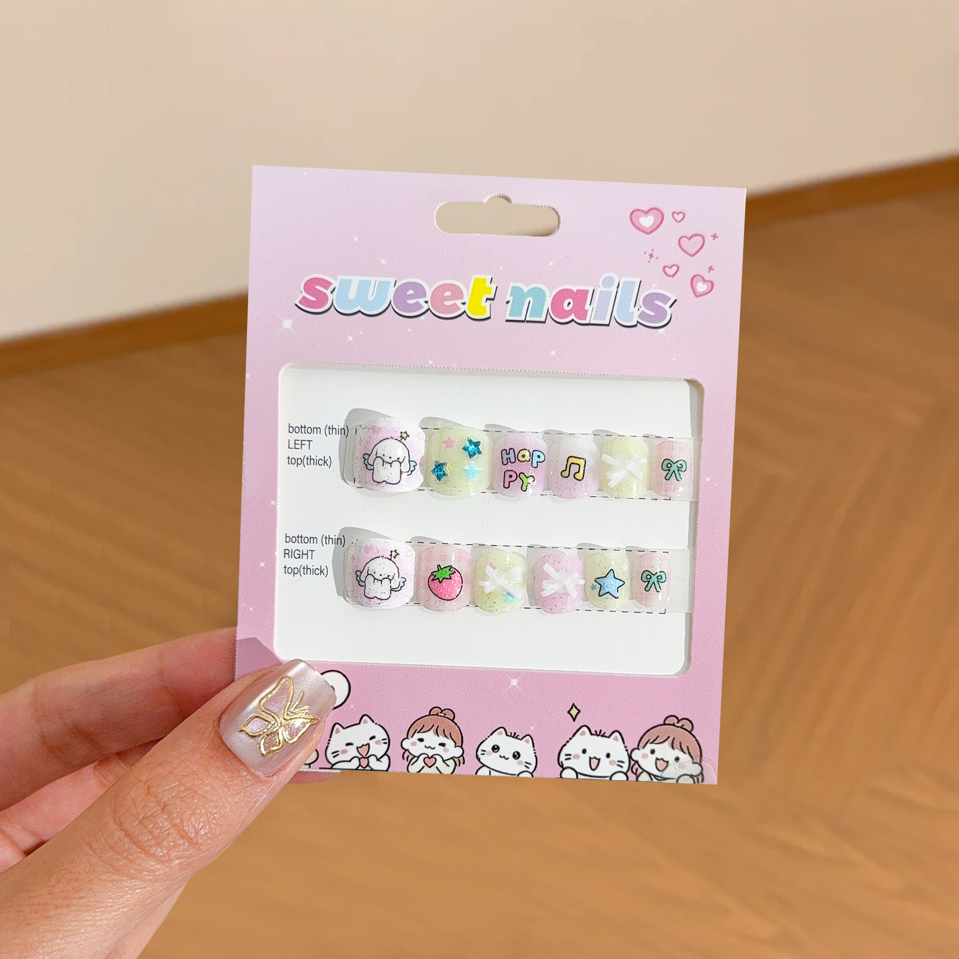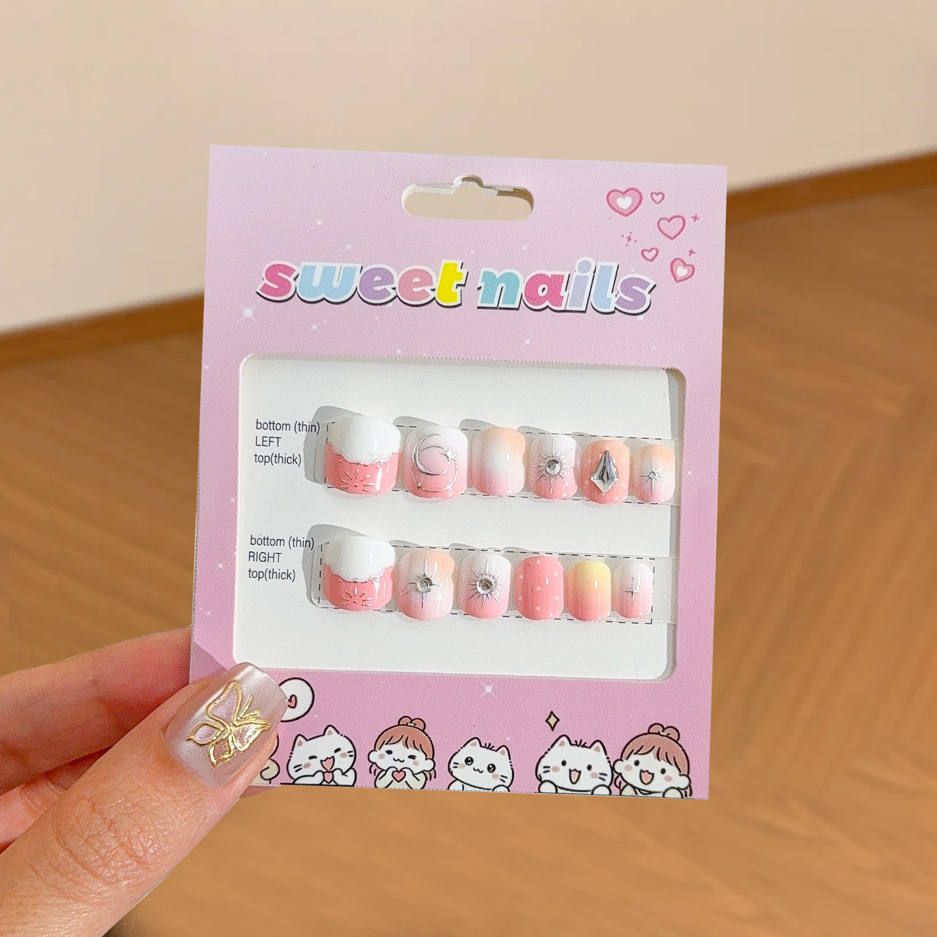 可爱卡通美甲贴片儿童美甲鎏金葱粉穿戴甲贴片卡通手工点钻甲