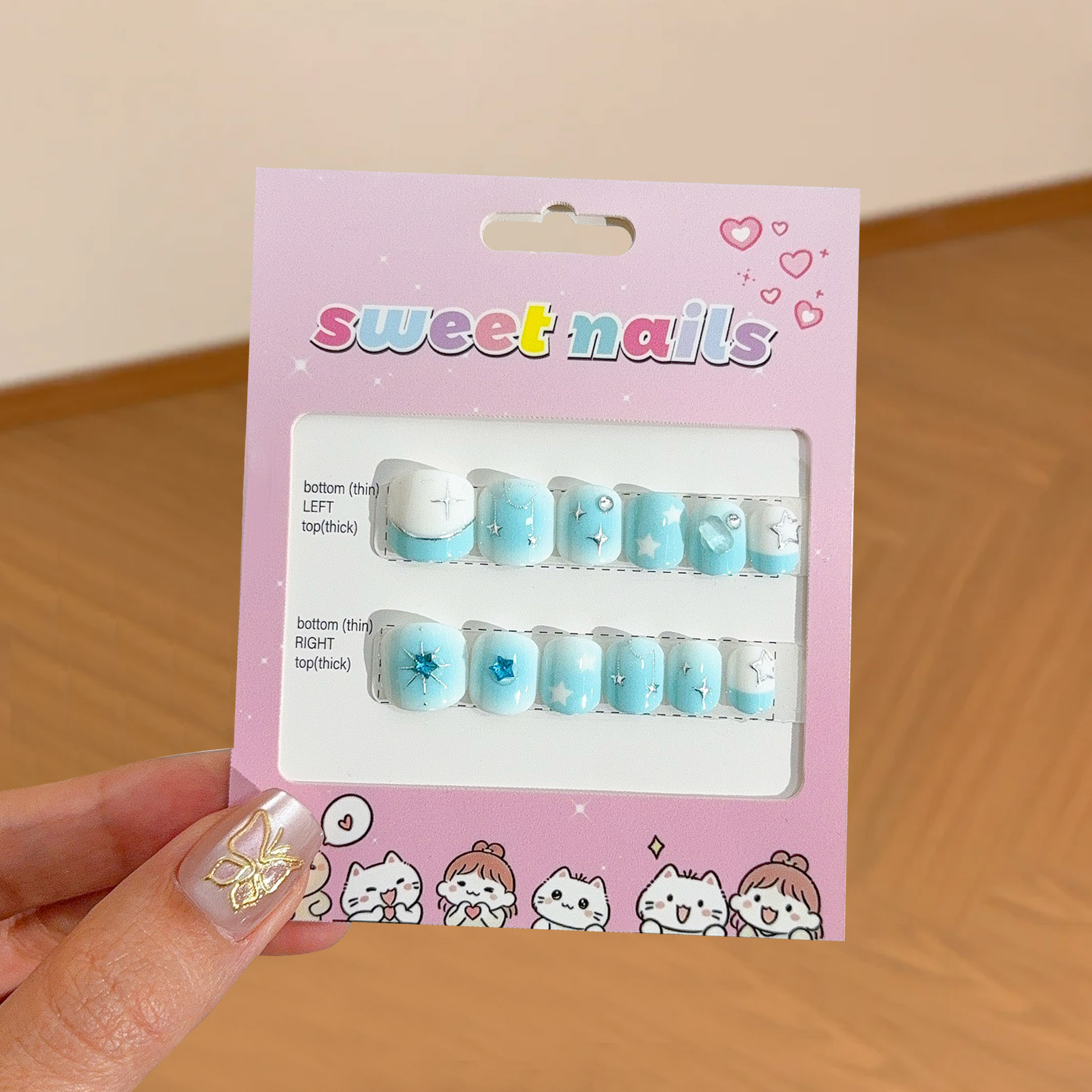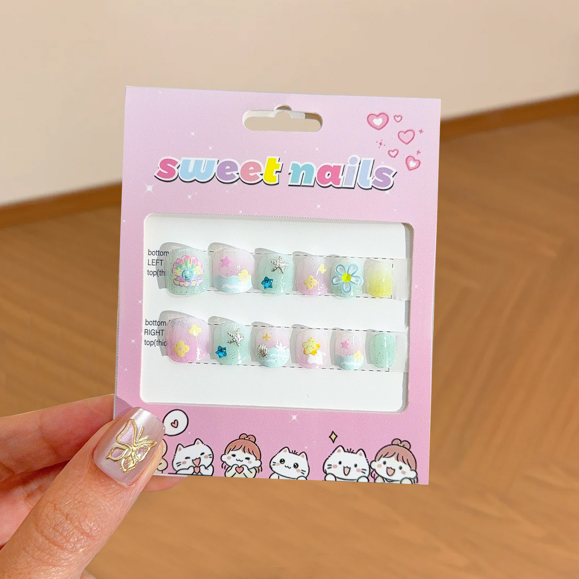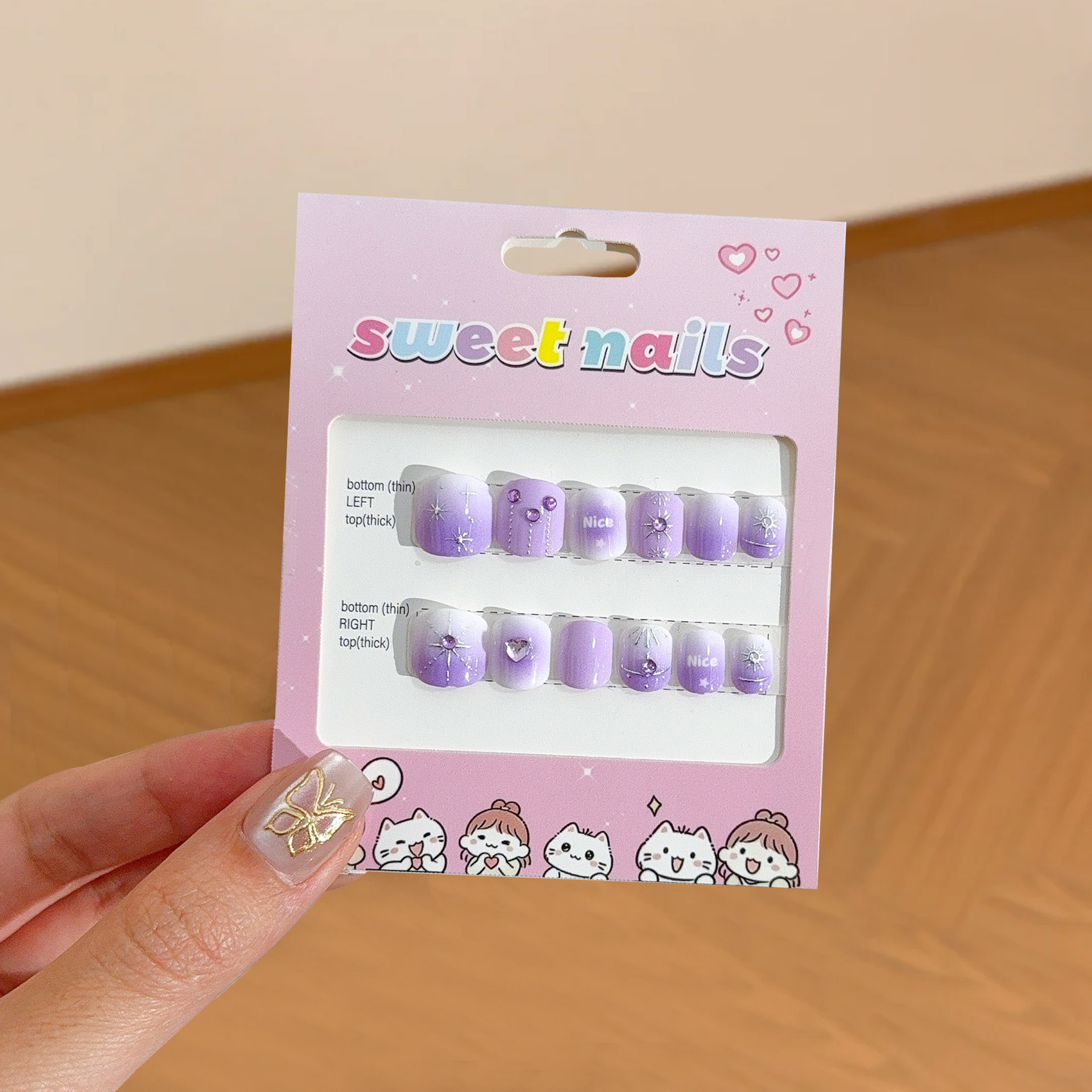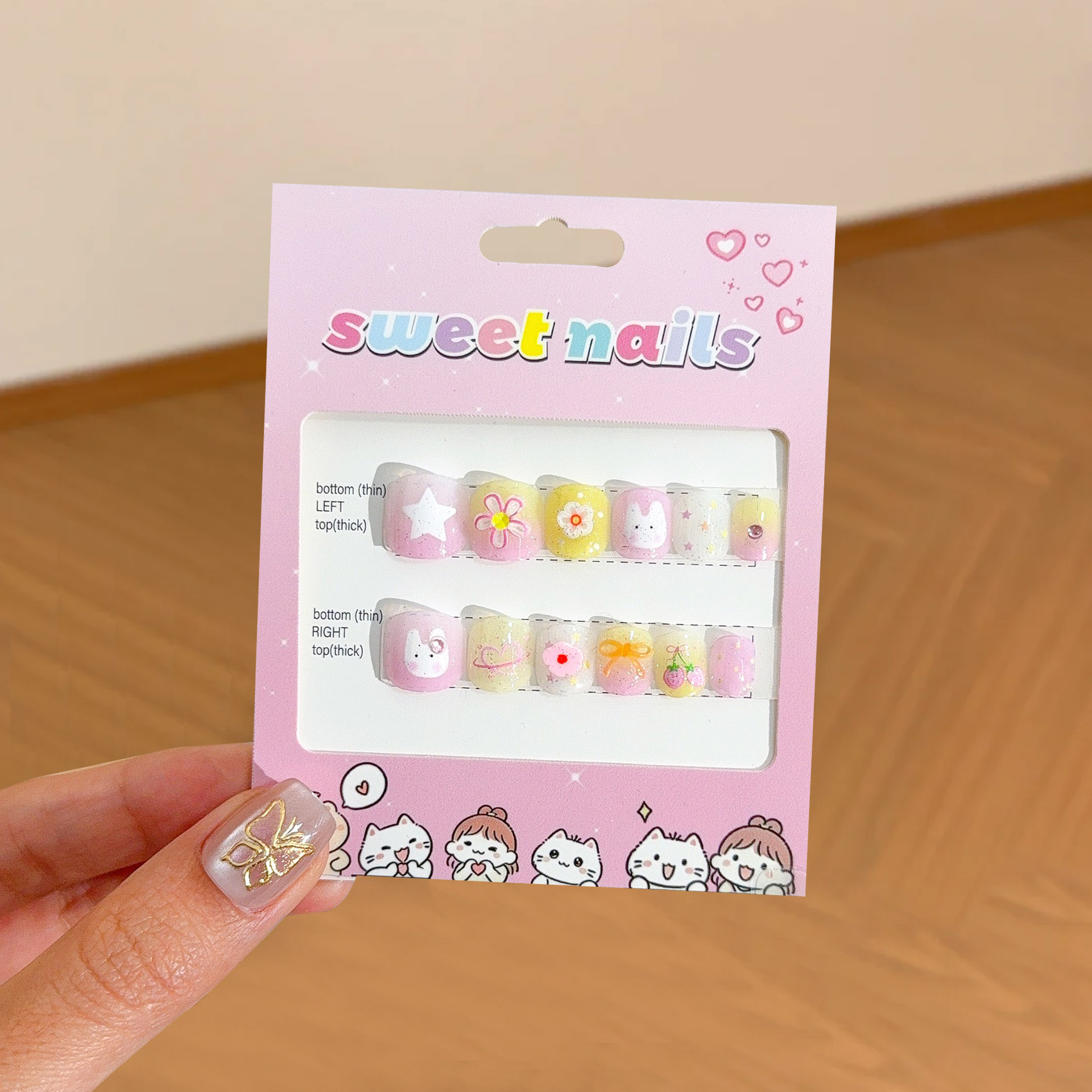 可爱卡通美甲贴片儿童美甲鎏金葱粉穿戴甲贴片卡通手工点钻甲