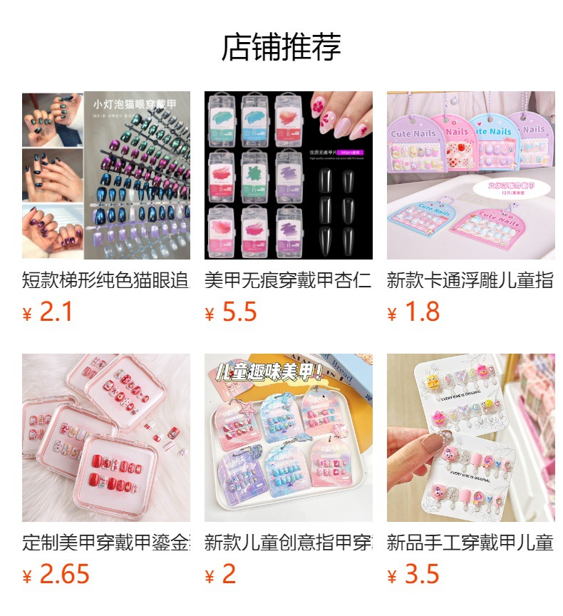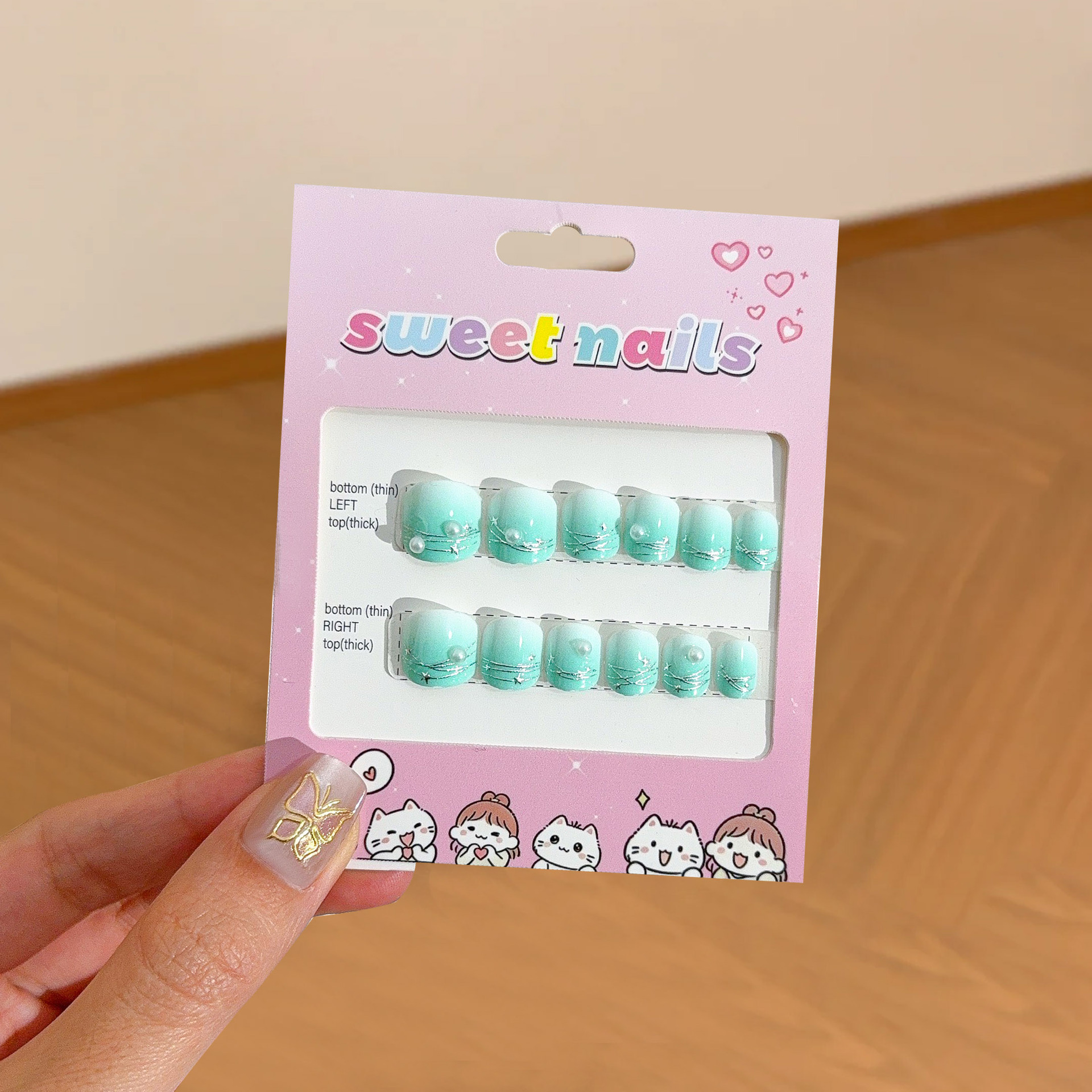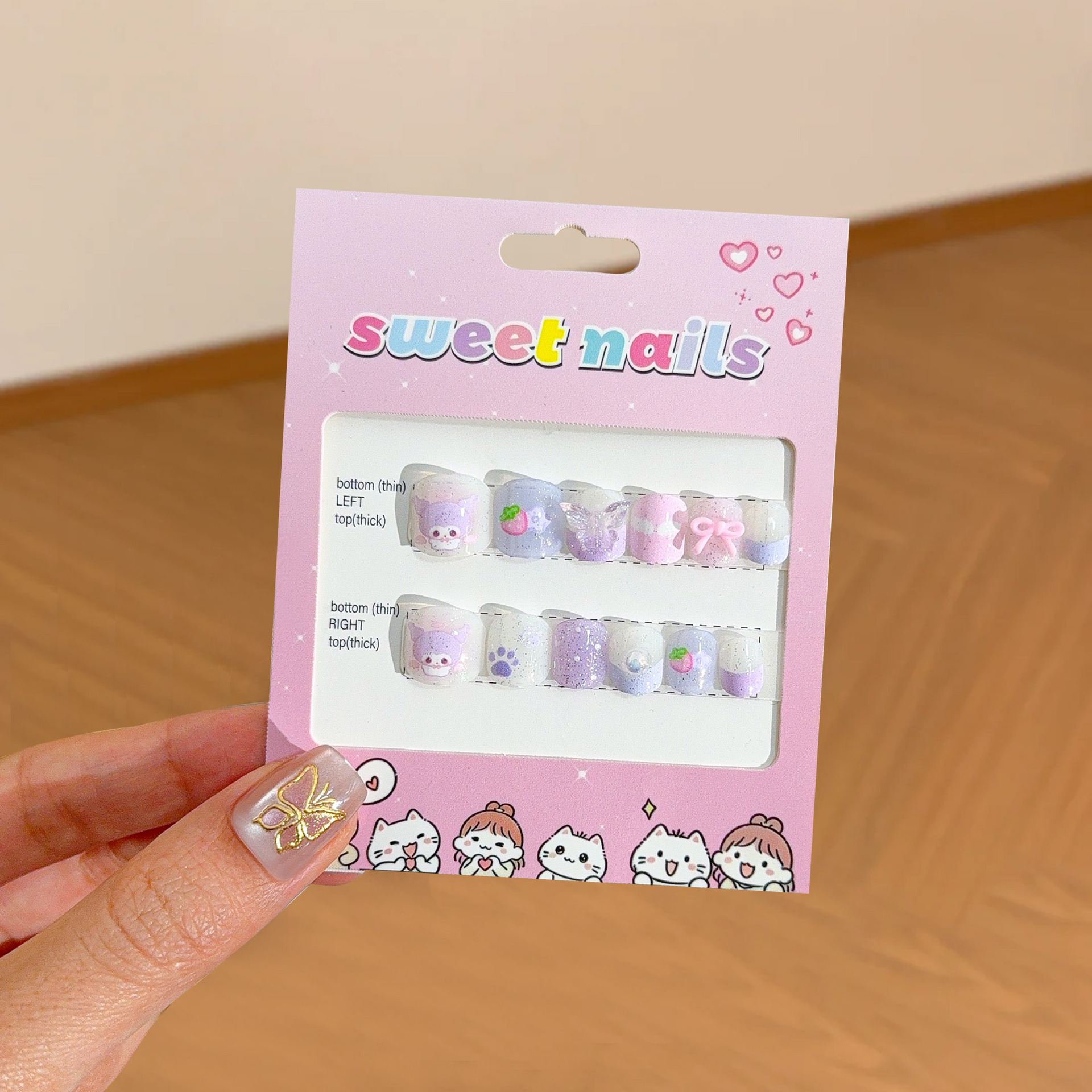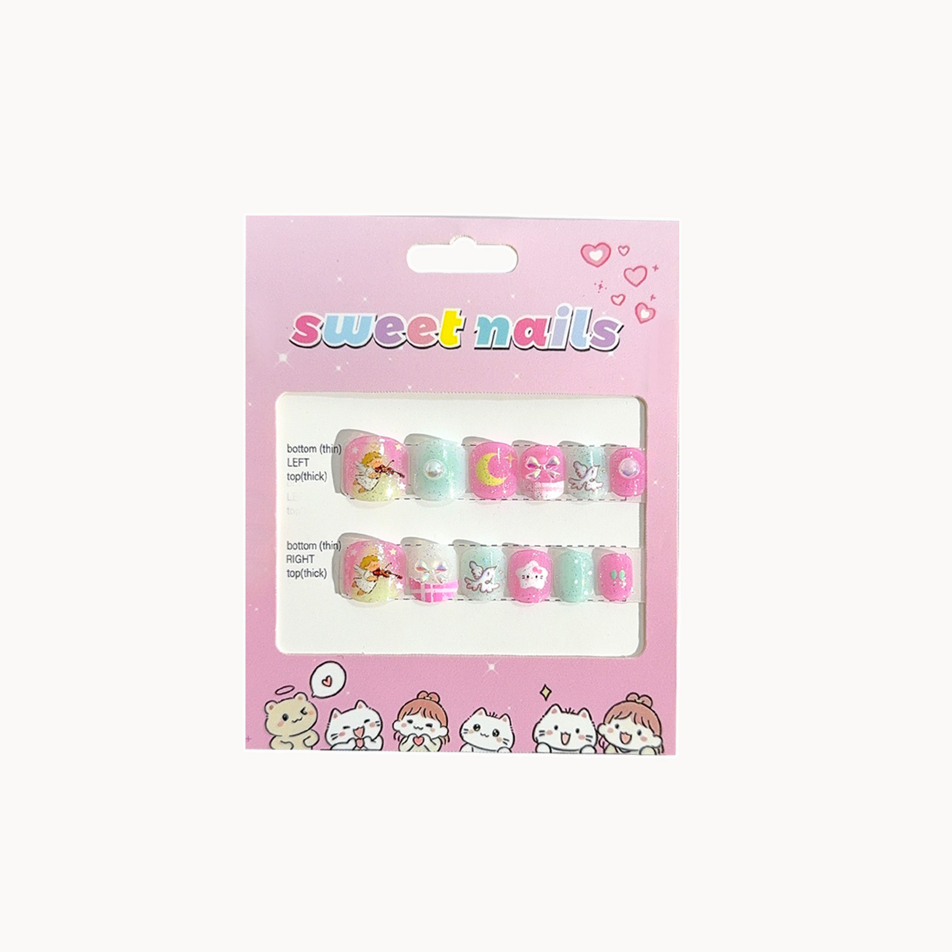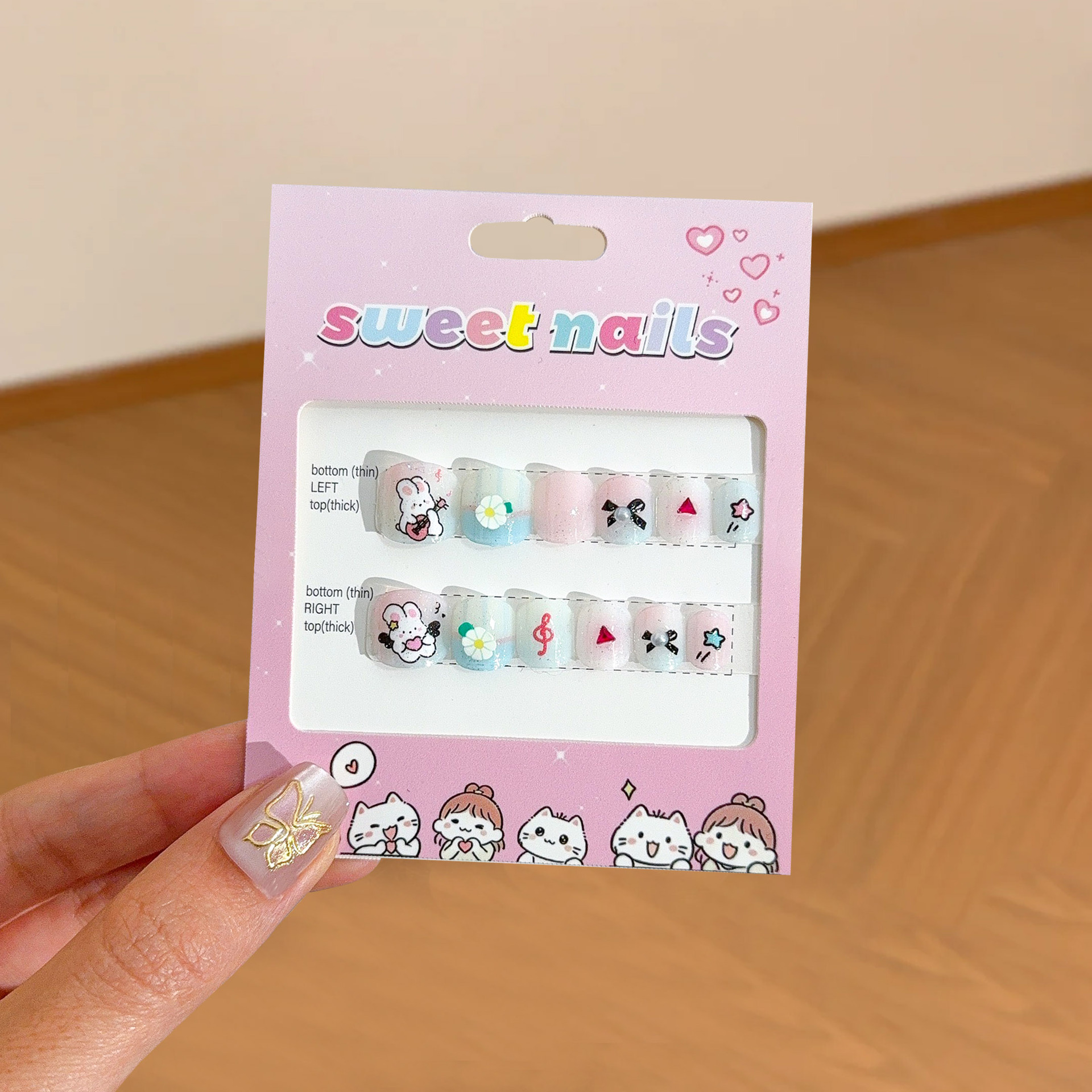 可爱卡通美甲贴片儿童美甲鎏金葱粉穿戴甲贴片卡通手工点钻甲