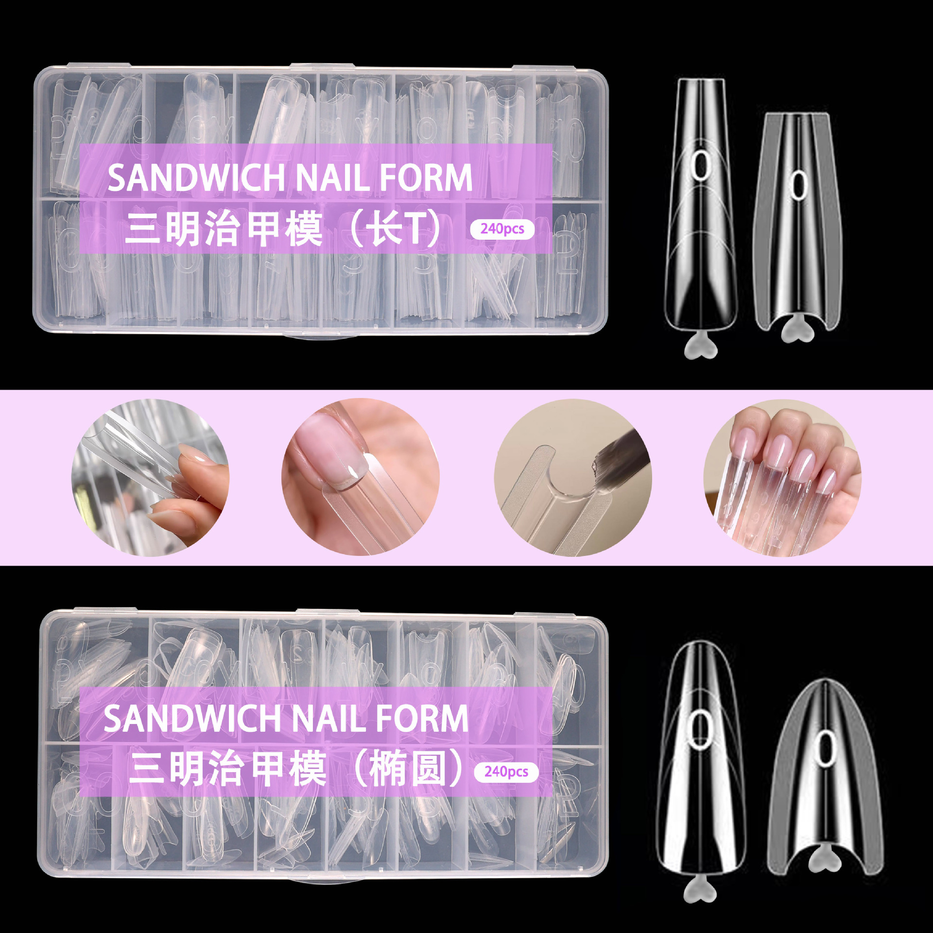 美甲三明治甲片假指甲展示沙龙艺术甲透明全贴穿戴甲贴片尖形
