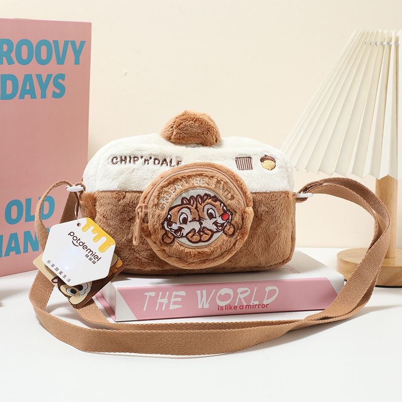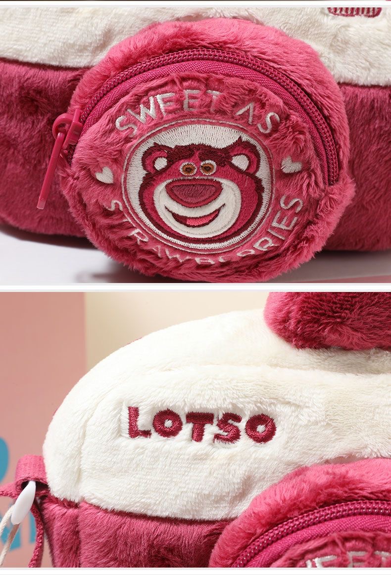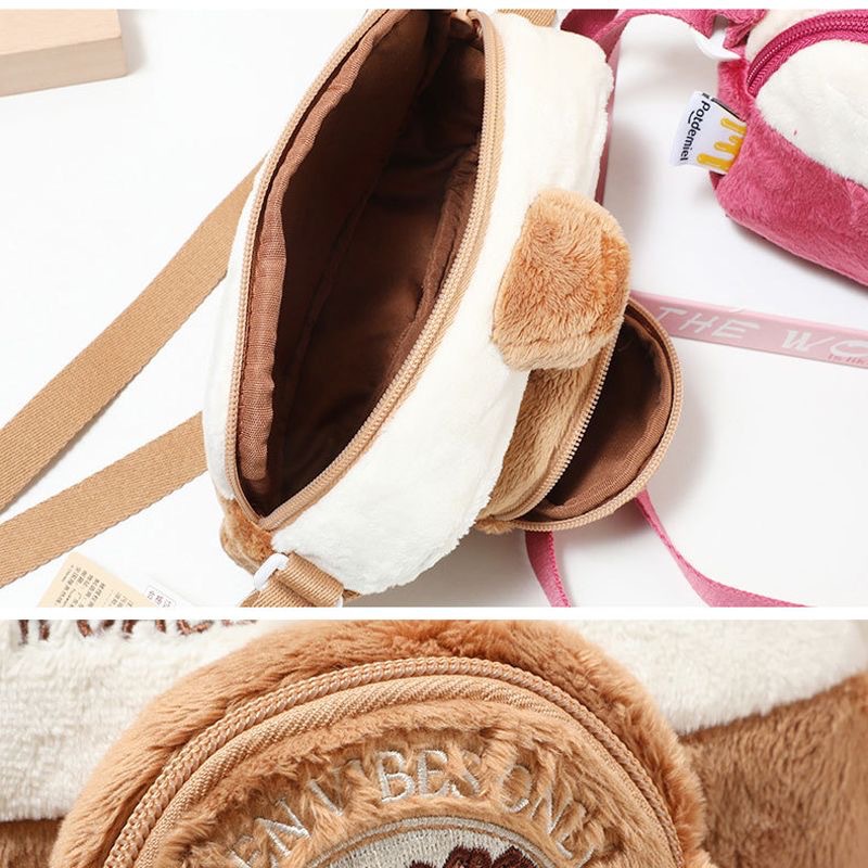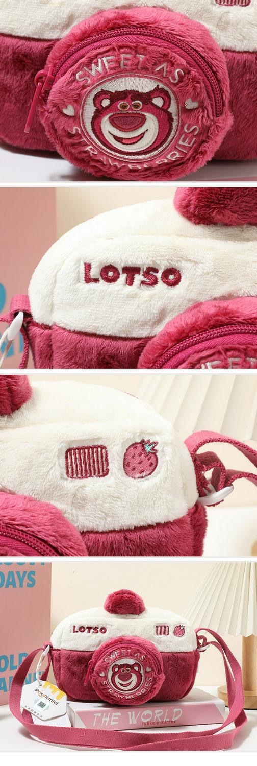 跨境相机包毛绒包包复古草莓熊毛绒斜挎包毛绒公仔单肩包女卡通包
