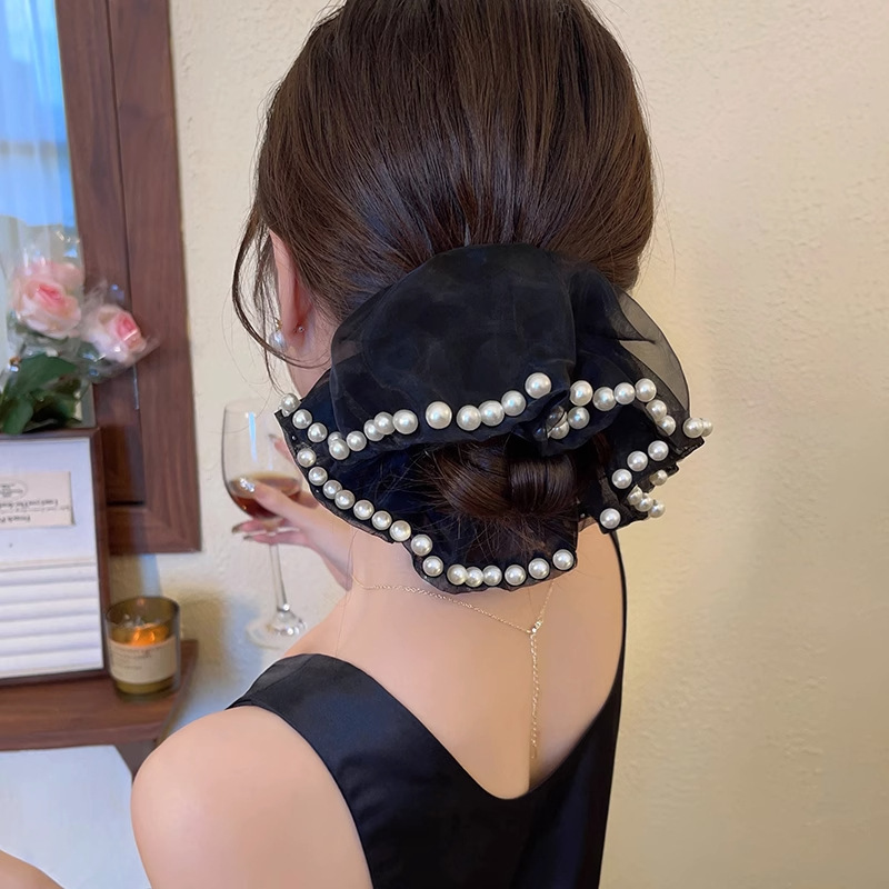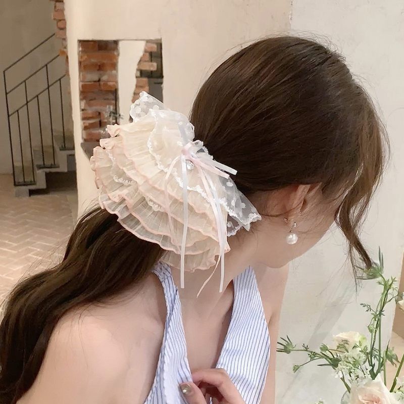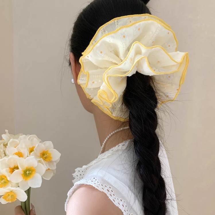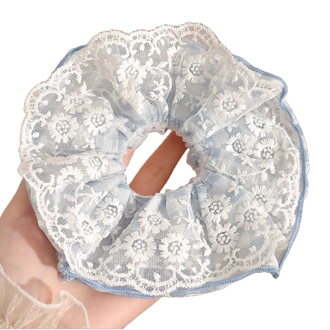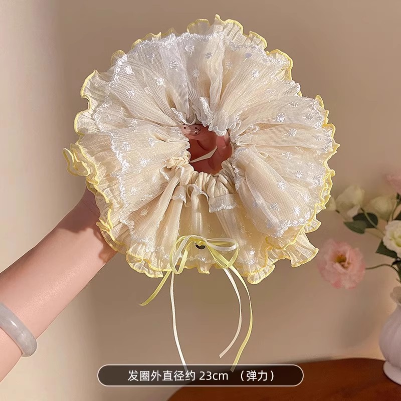 大号蕾丝花边发圈女高级感韩系大肠慵懒风头饰甜美扎马尾发饰方巾