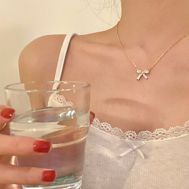 金色高级感锁骨链 百搭轻奢小众镶钻蝴蝶项链配饰女ins风穿搭胸链
