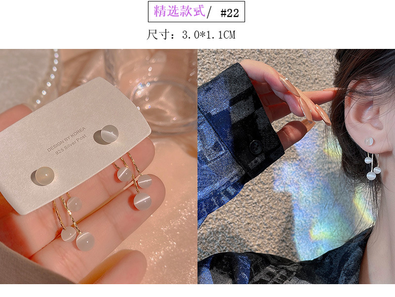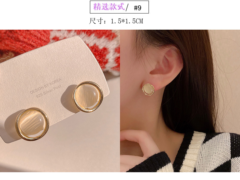 925银针猫眼石耳饰高级感耳钉复古气质网红简约法式耳环批发镶钻