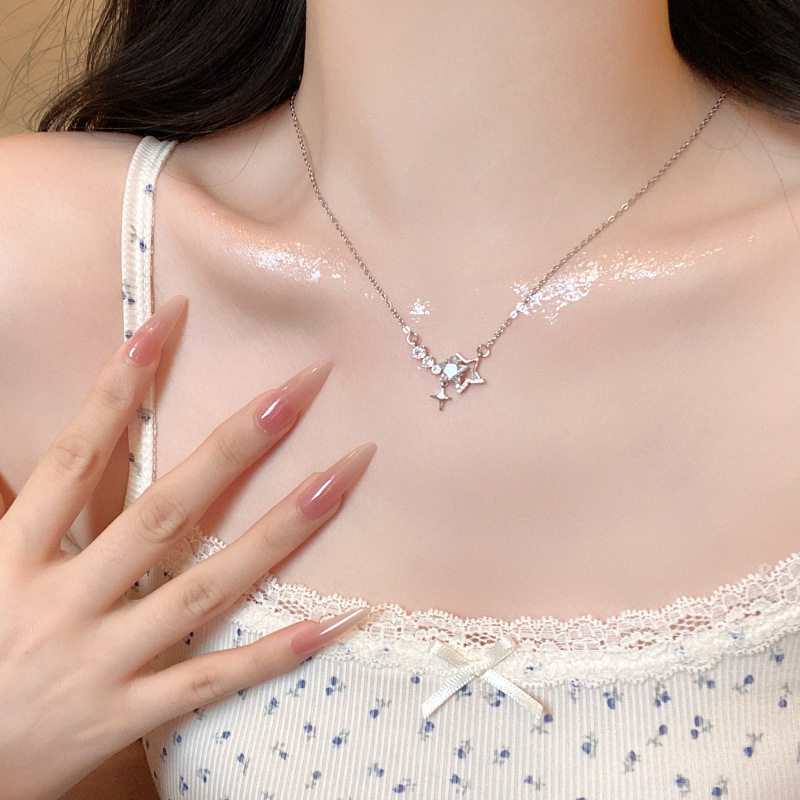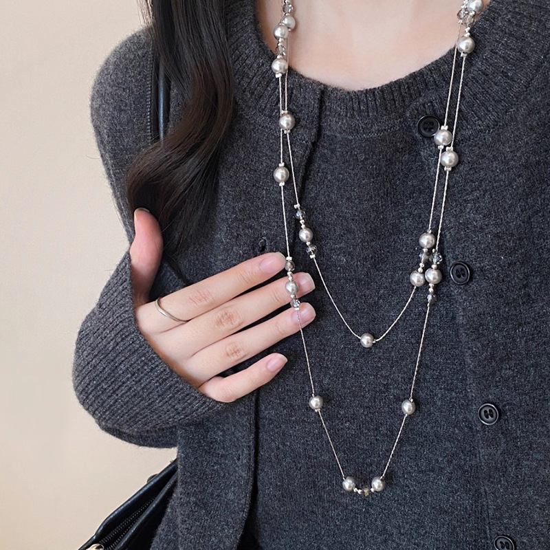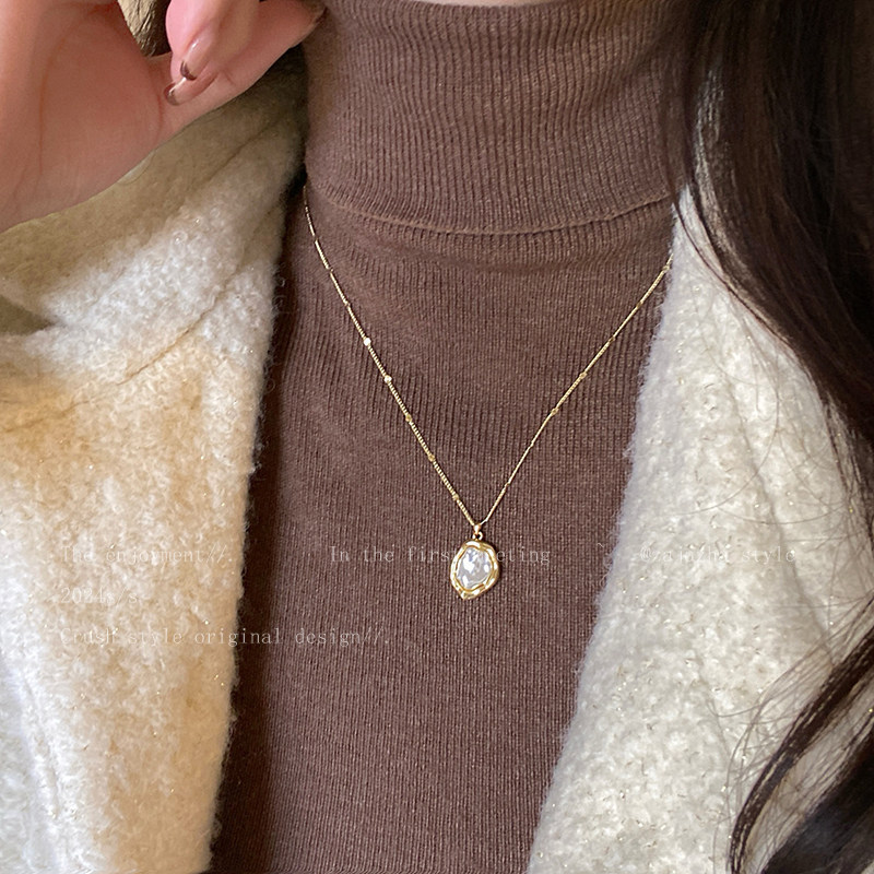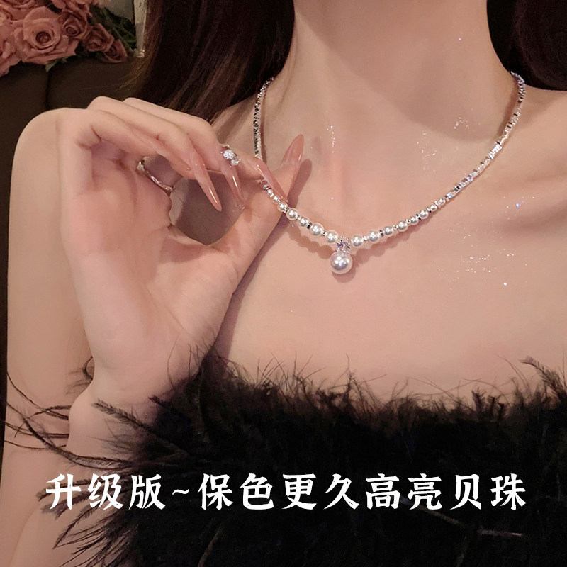 仿珍珠几何百搭高级感锁骨链轻奢小众项链女独特配饰品ins风穿搭