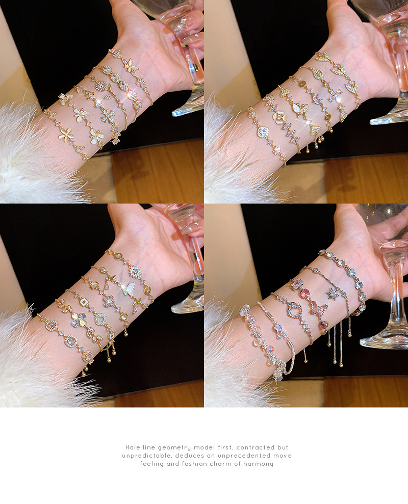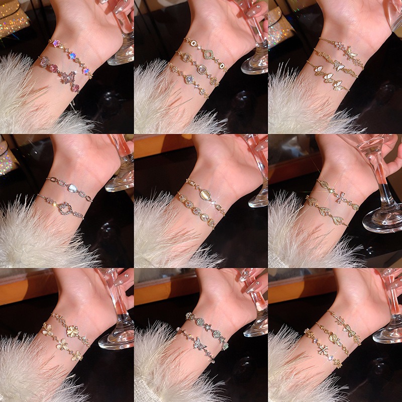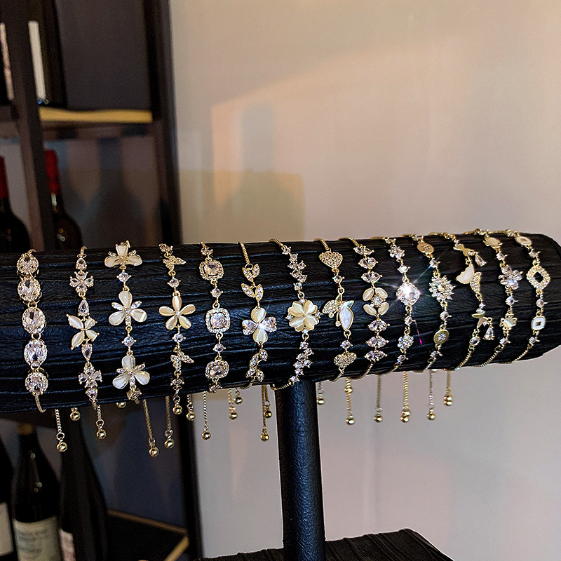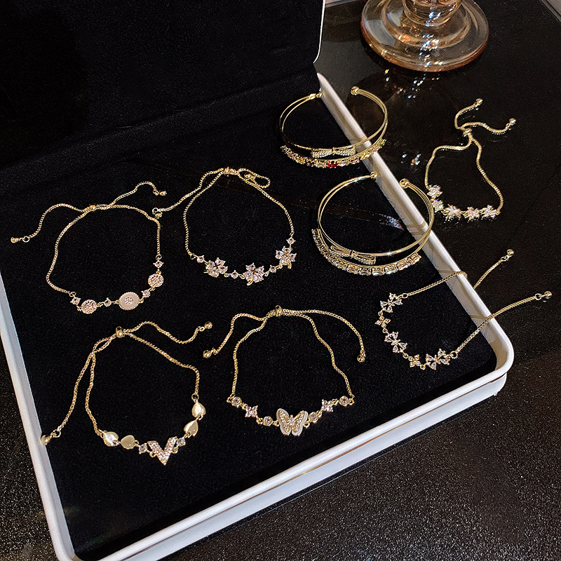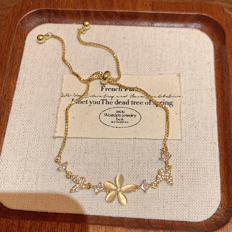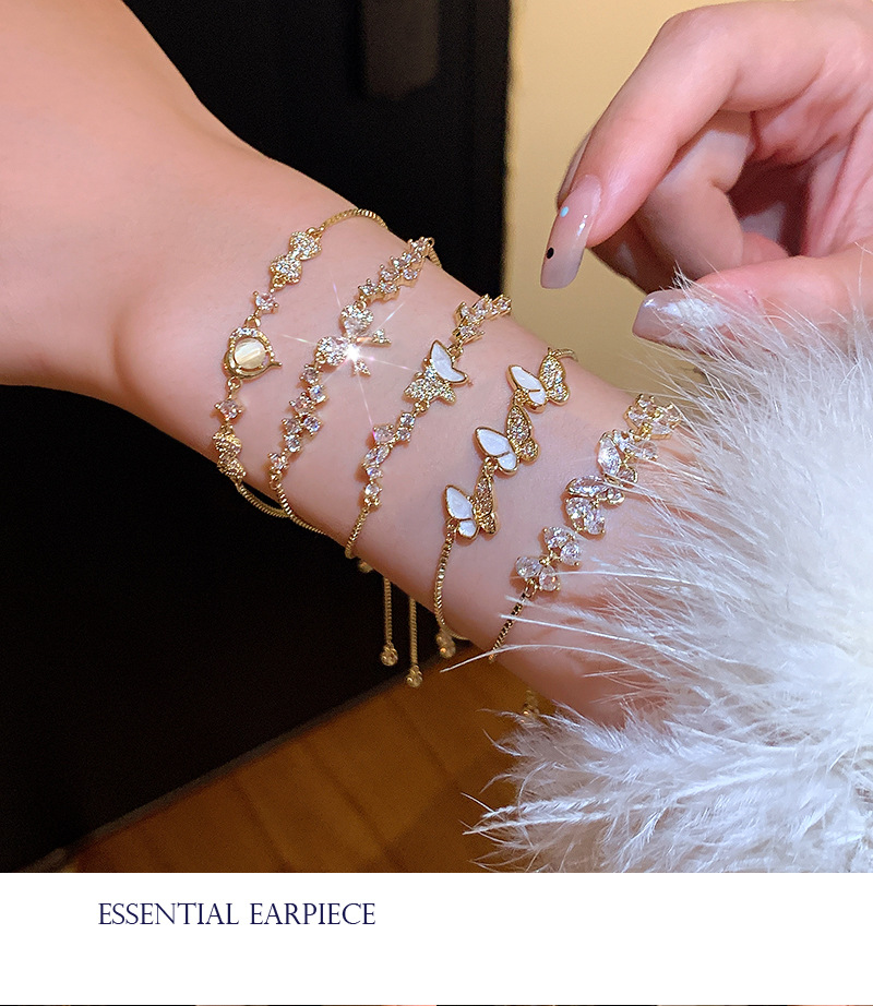 韩系超闪轻奢铜镶锆石手链女高级感蝴蝶百搭猫眼手环气质小众手饰