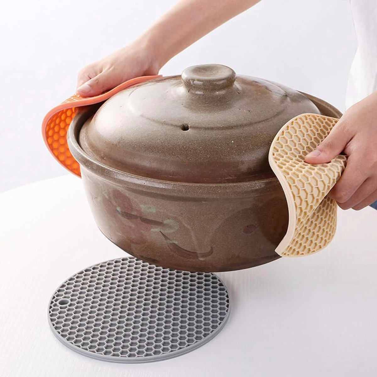 新款耐高温跨境热销硅胶蜂窝隔热垫硅胶餐垫圆形锅垫碗垫餐桌垫