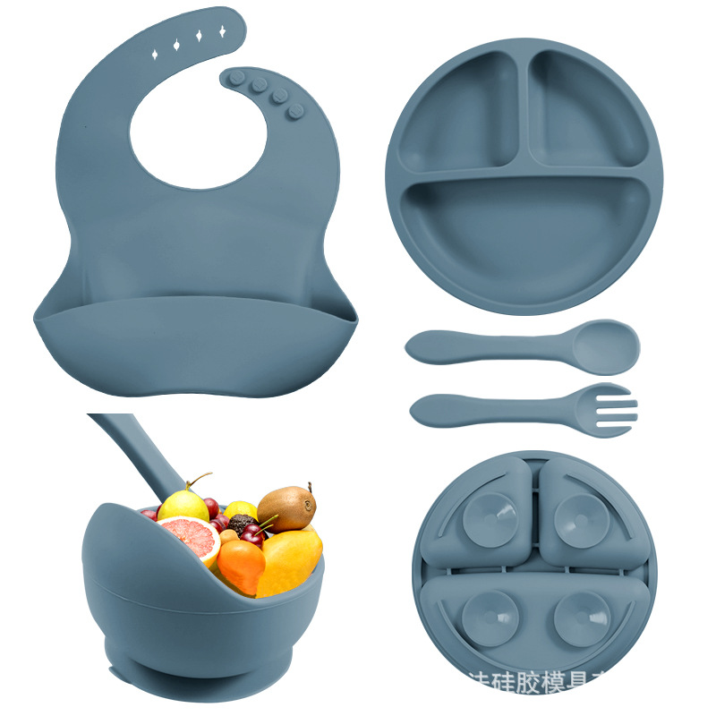 现货儿童硅胶餐具 婴儿食品级硅胶餐具组合套装批发